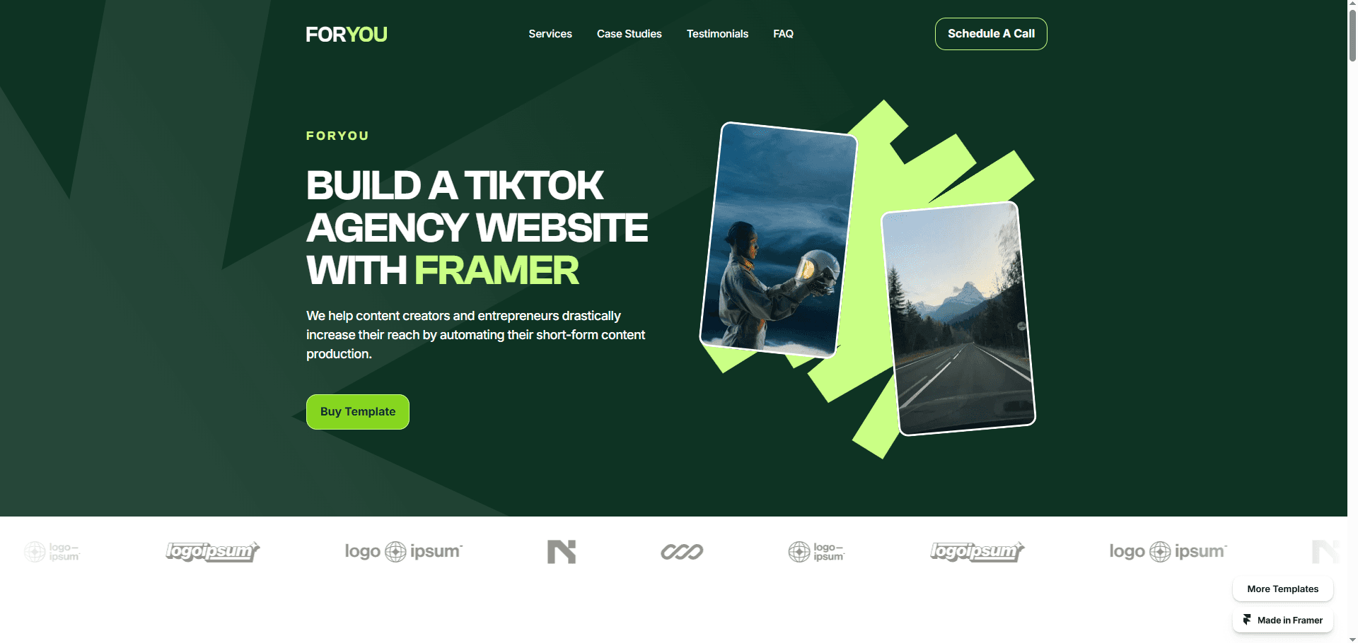 FORYOU is a conversion-focused Framer template made for TikTok or Short Form Content agencies.