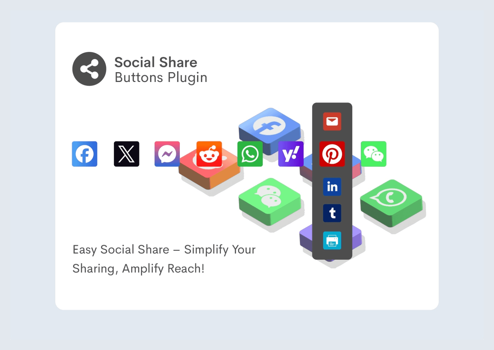 Introducing Easy Social Share, the ultimate Framer plugin that makes sharing effortless! With support for 20 social media platforms, your content can reach a wider audience in just one click.