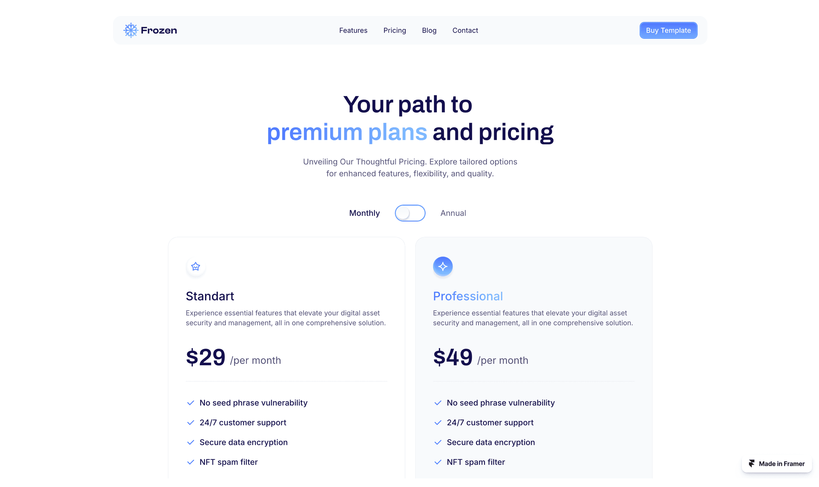 Showcase your digital product with Frozen, a clean and versatile Framer template designed for modern SaaS platforms, digital services, tech startups and Web3 applications.