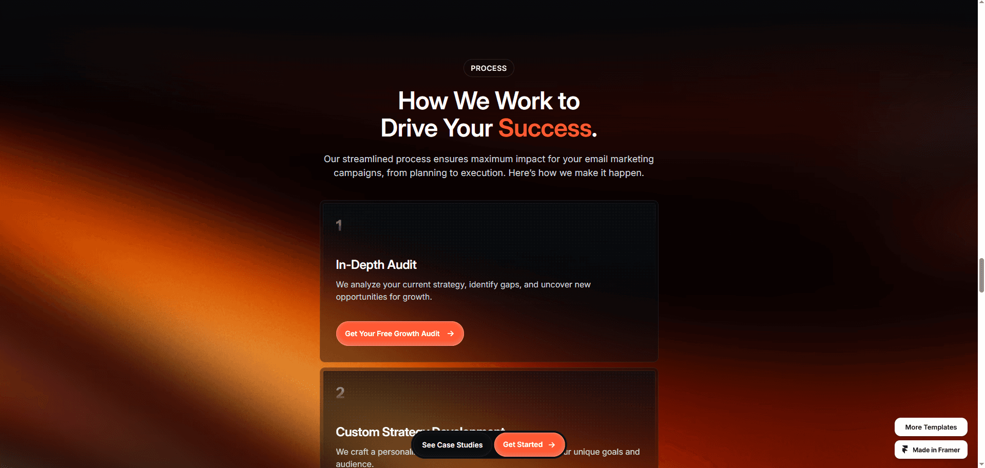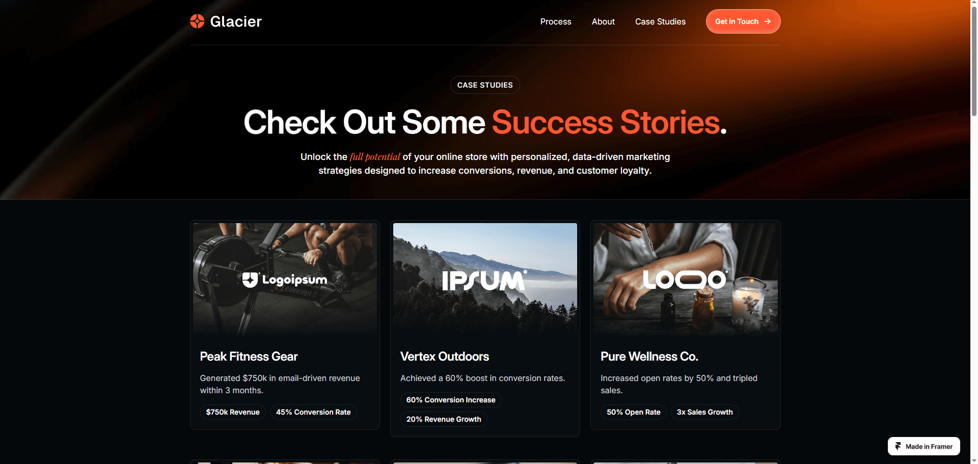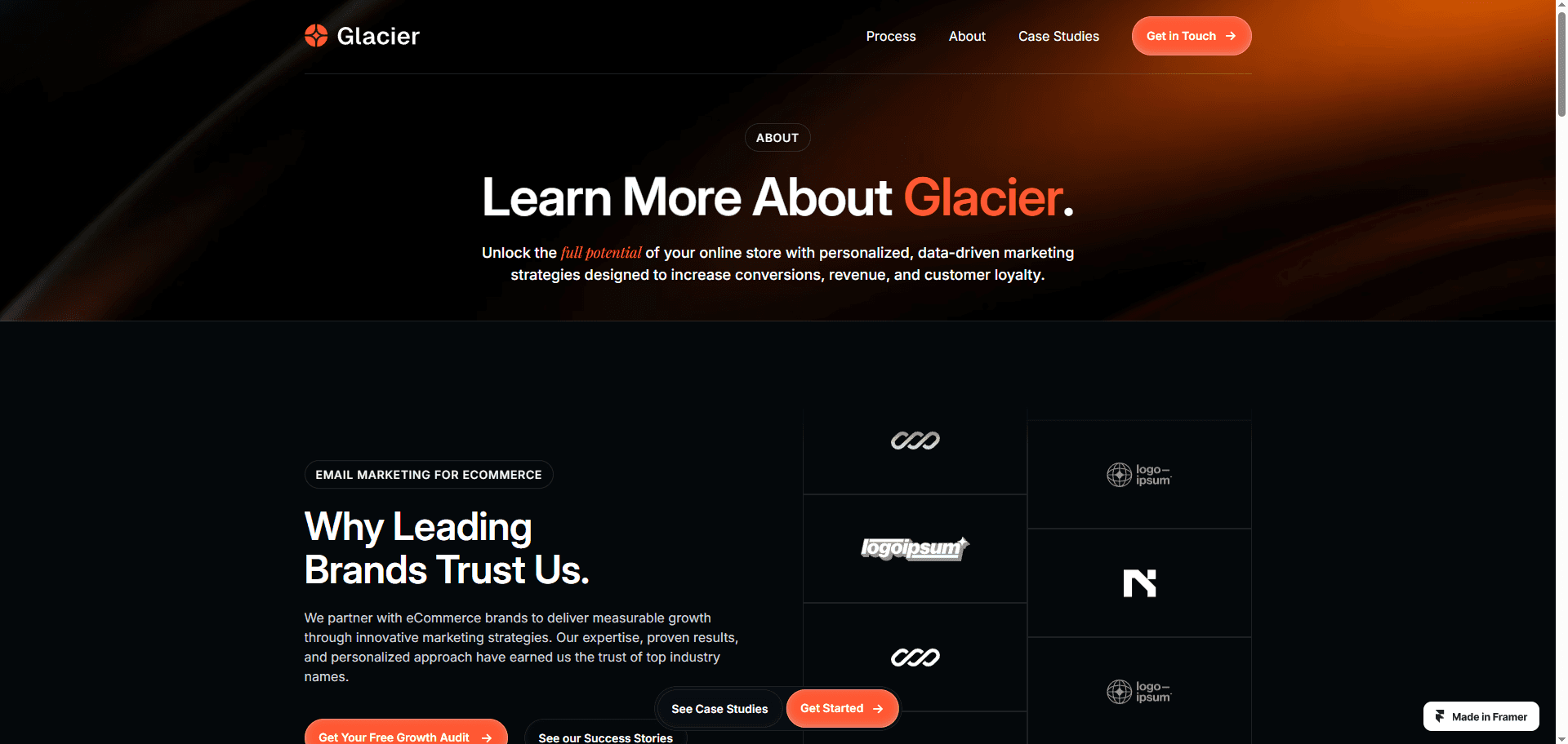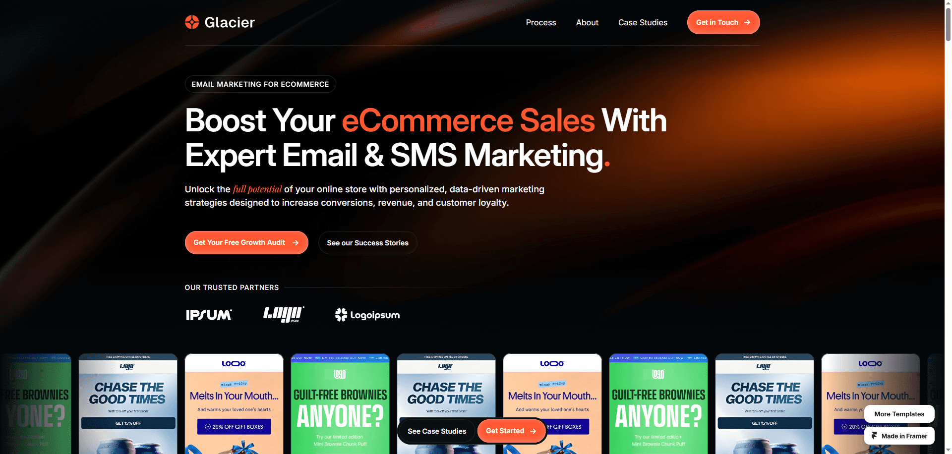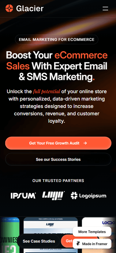 Glacier is a Framer website template for email marketing and SMS agencies.
