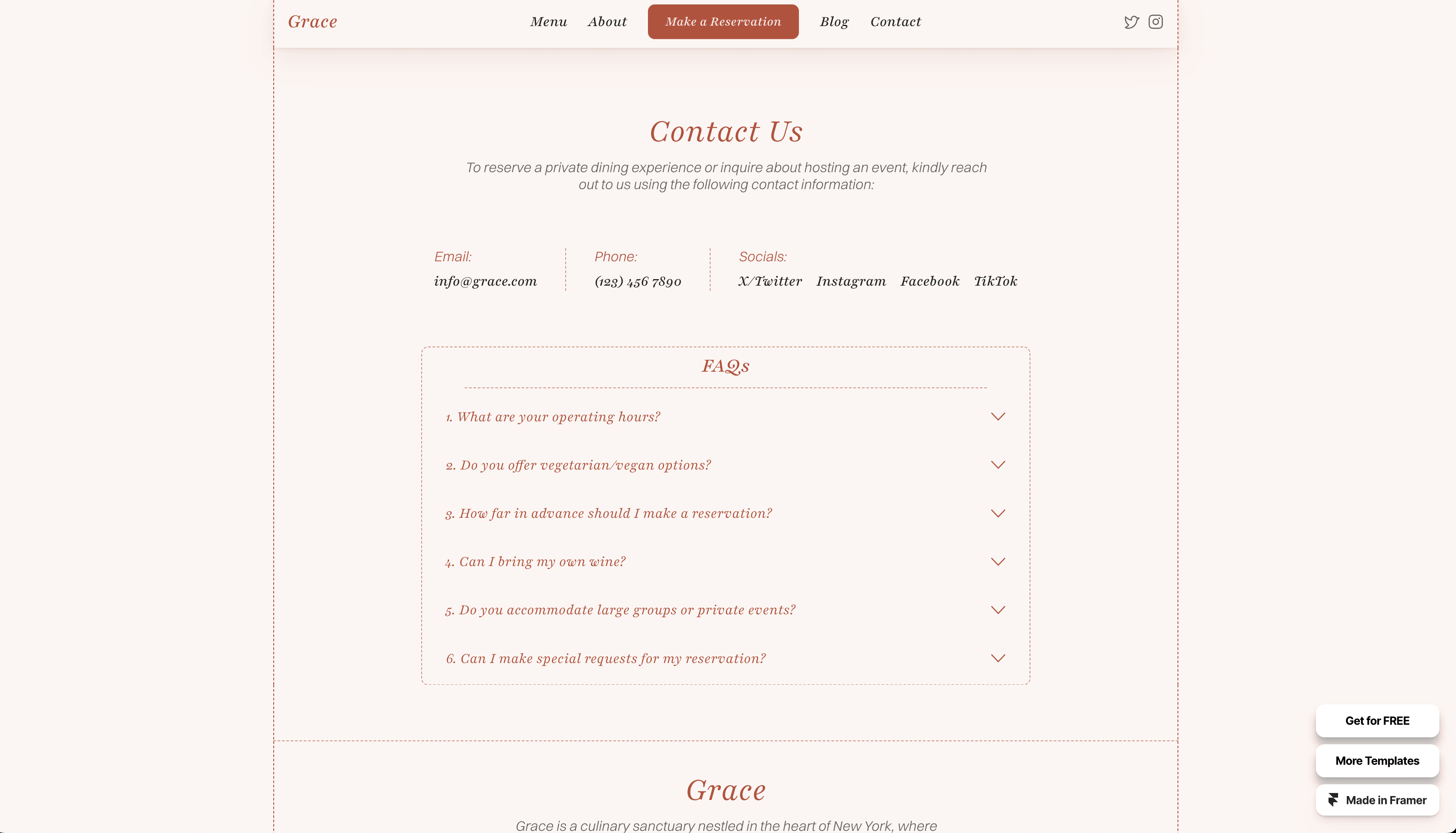 Step into the world of sophistication and culinary refinement with Grace, the ultimate template for restaurants.