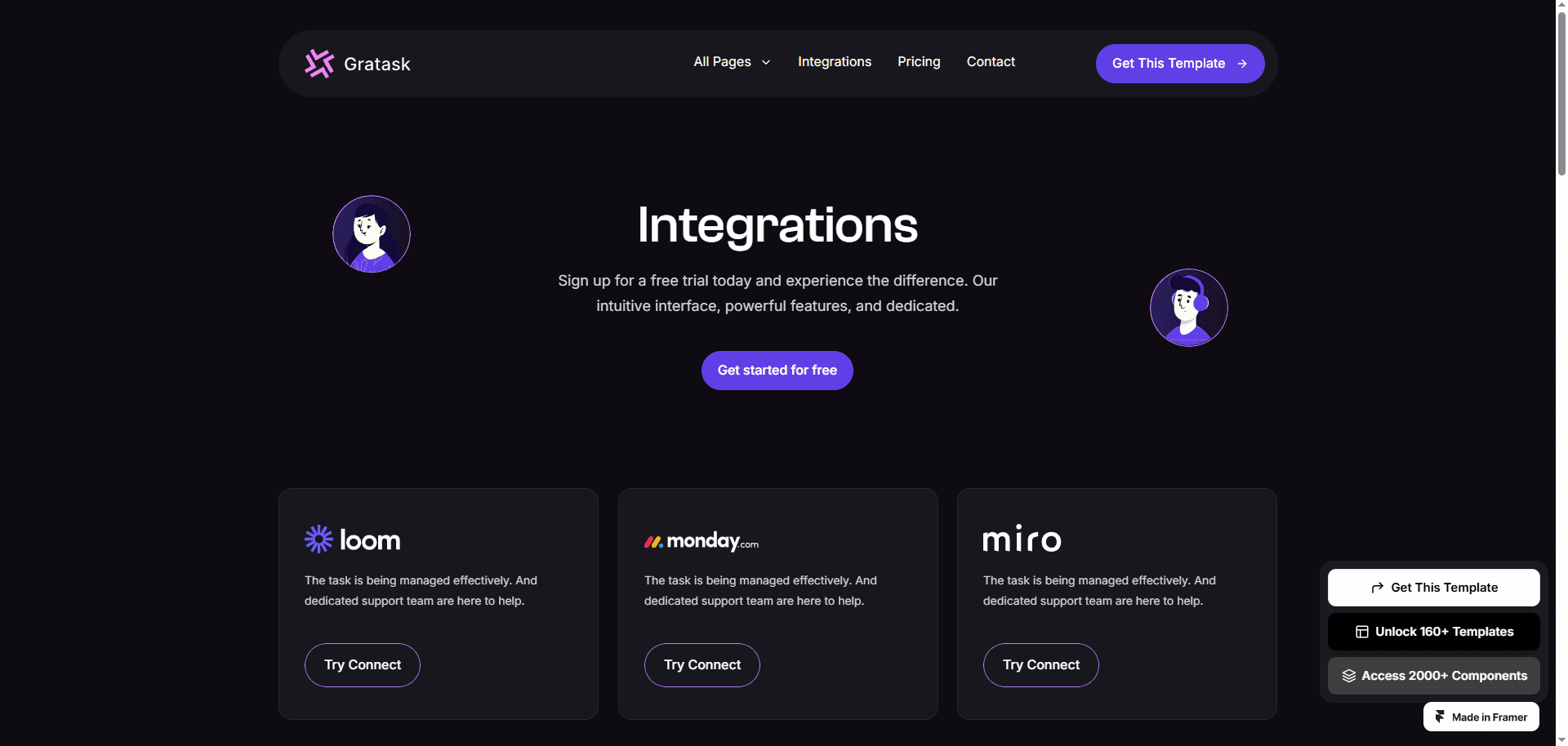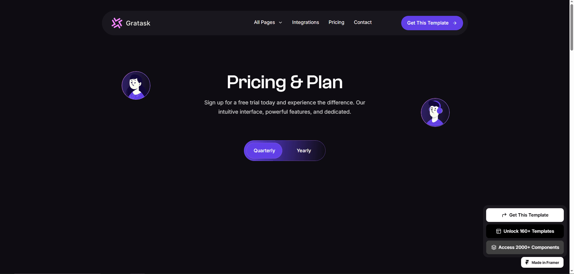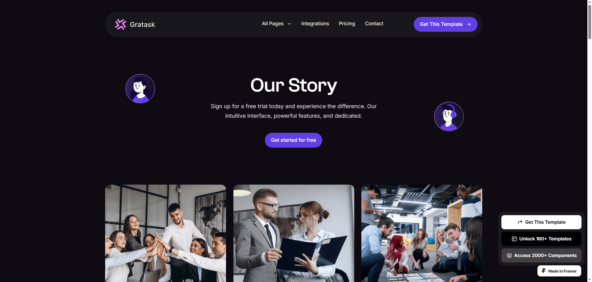 Gratask is a high-quality multi-layout dark Framer template designed for SaaS and startup websites.