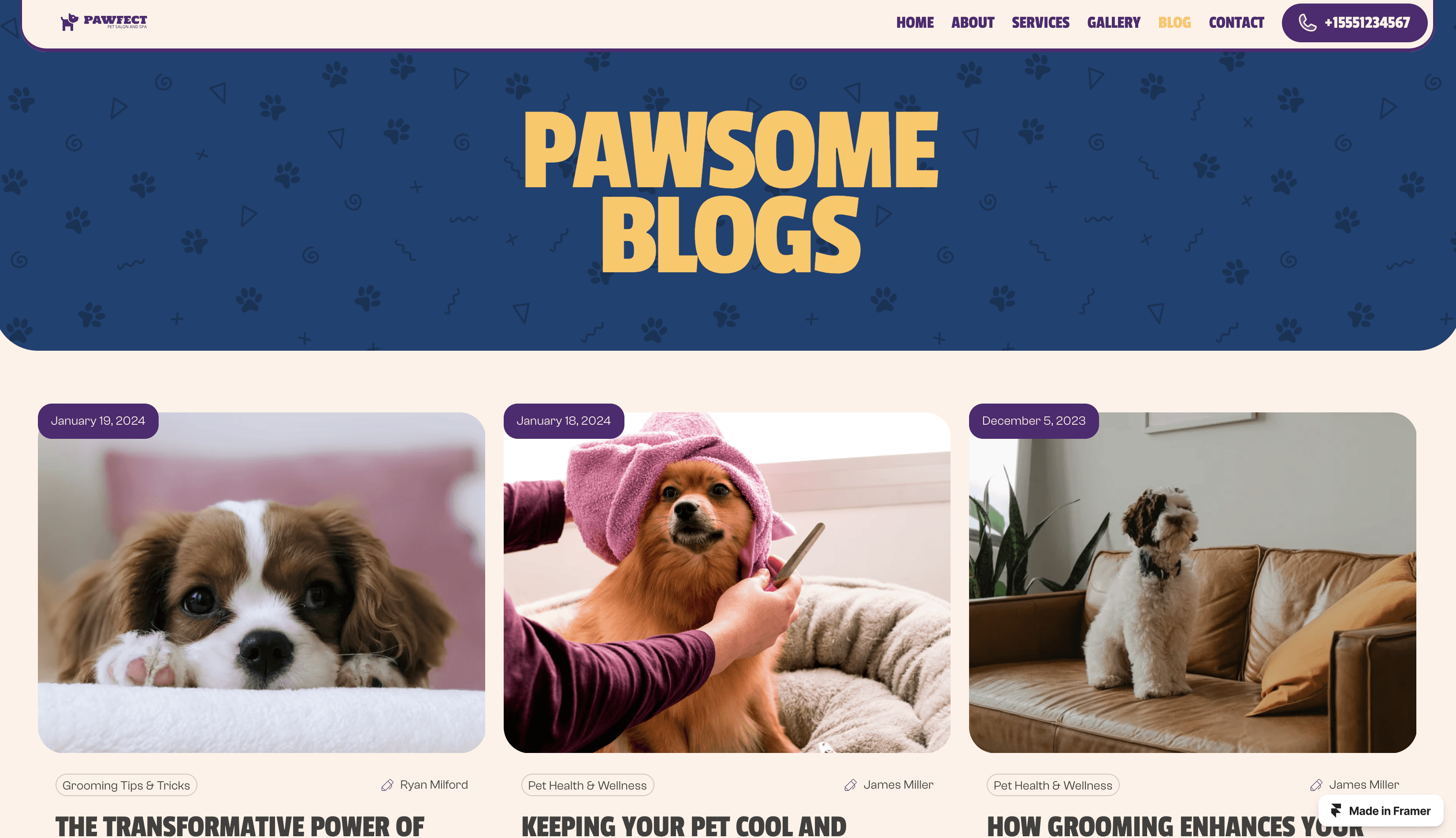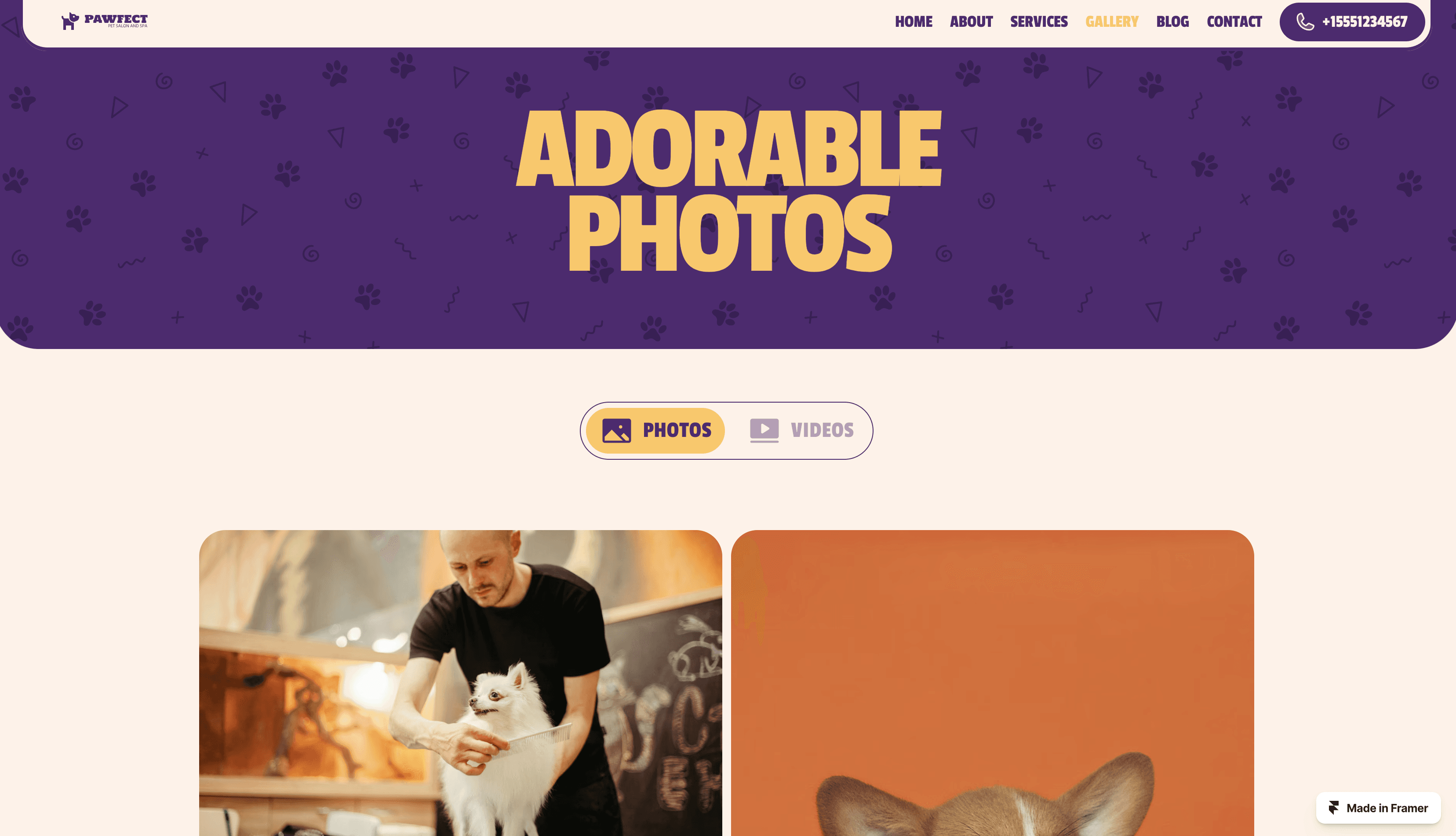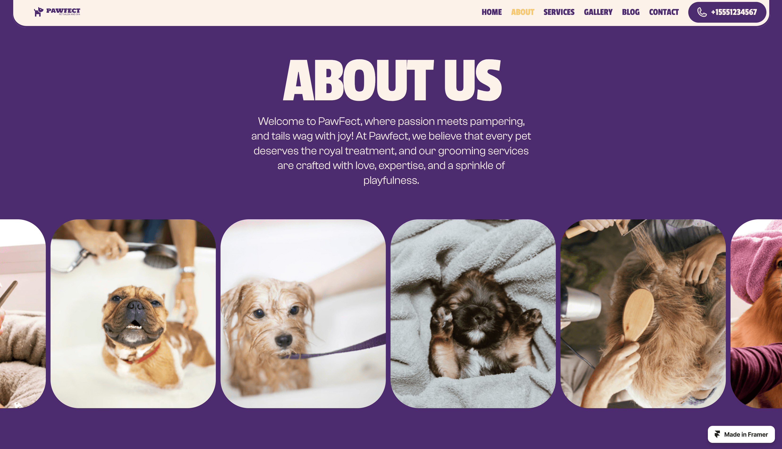 Groomer is the best Framer template for the Cat and Dog Groomers who owns a pet grooming salon, cat or dog spa center, pet parlor, pet care & massage business.