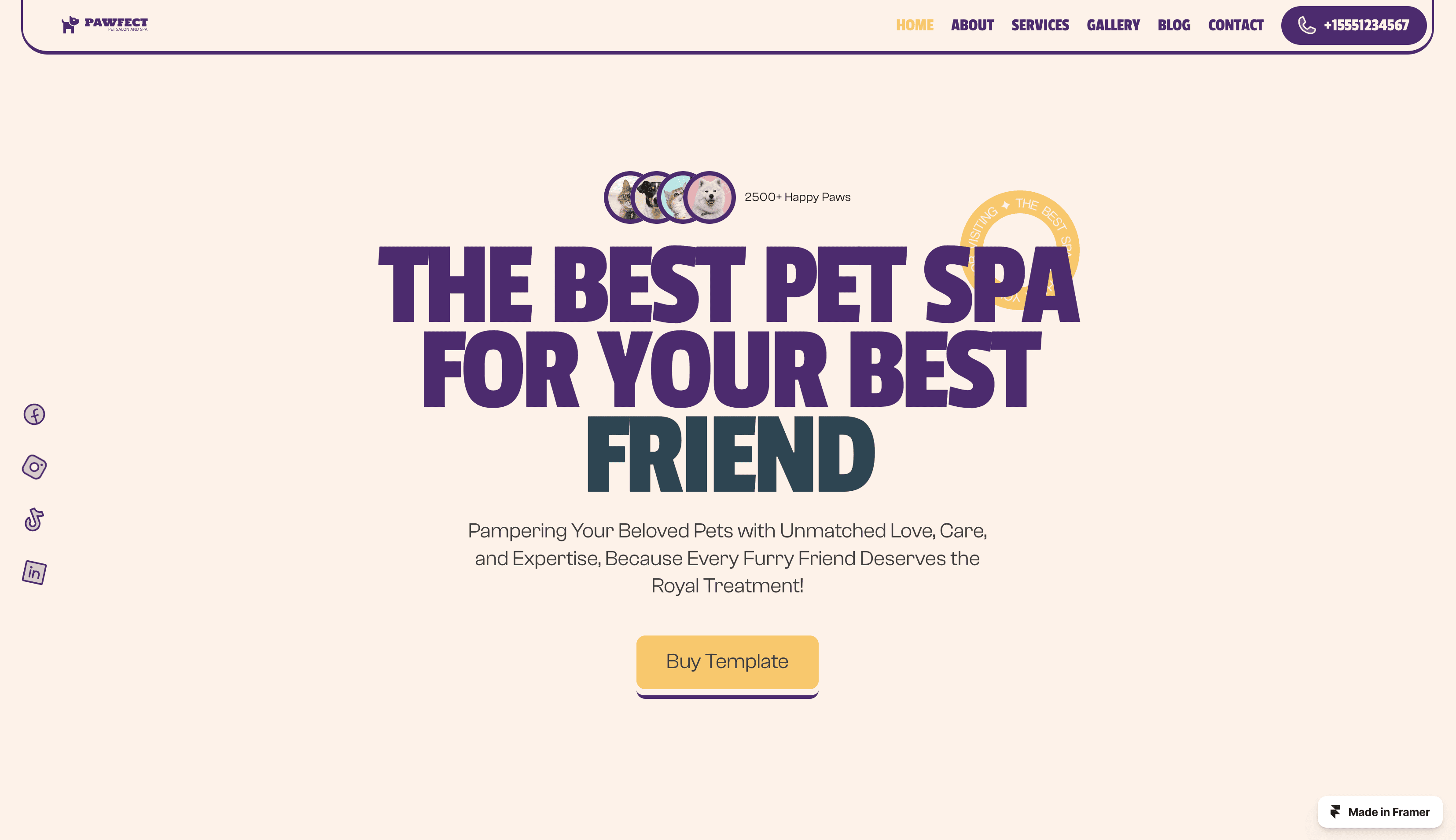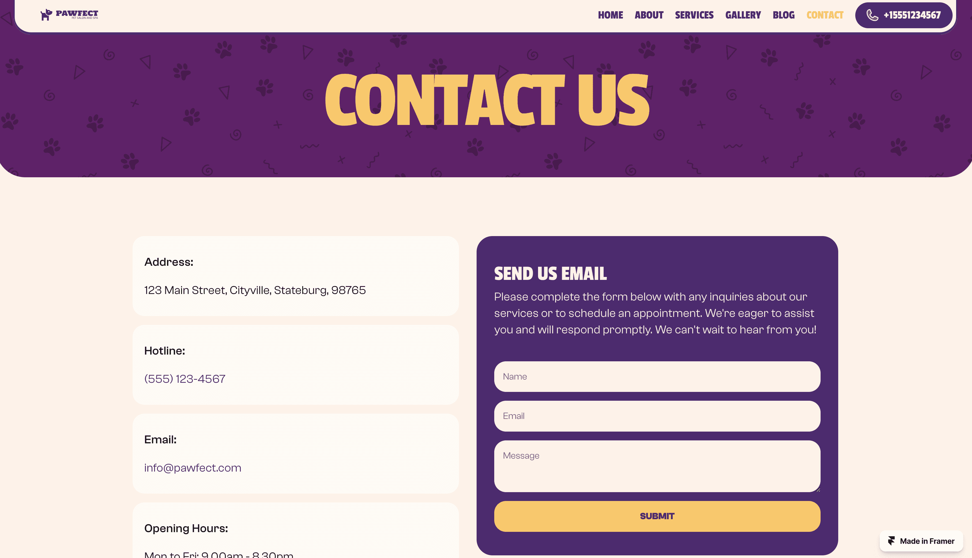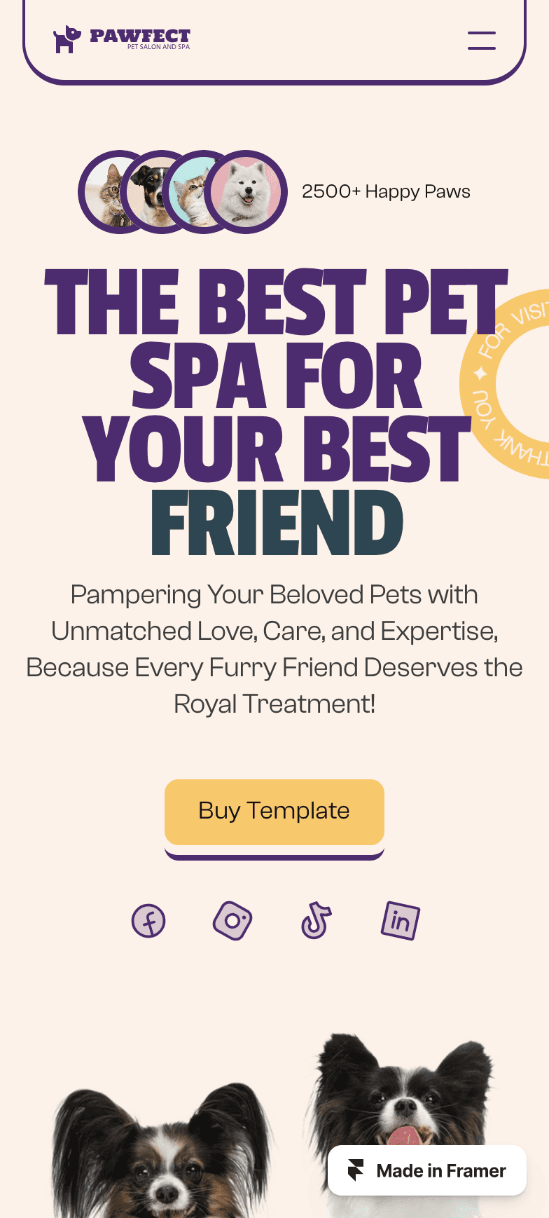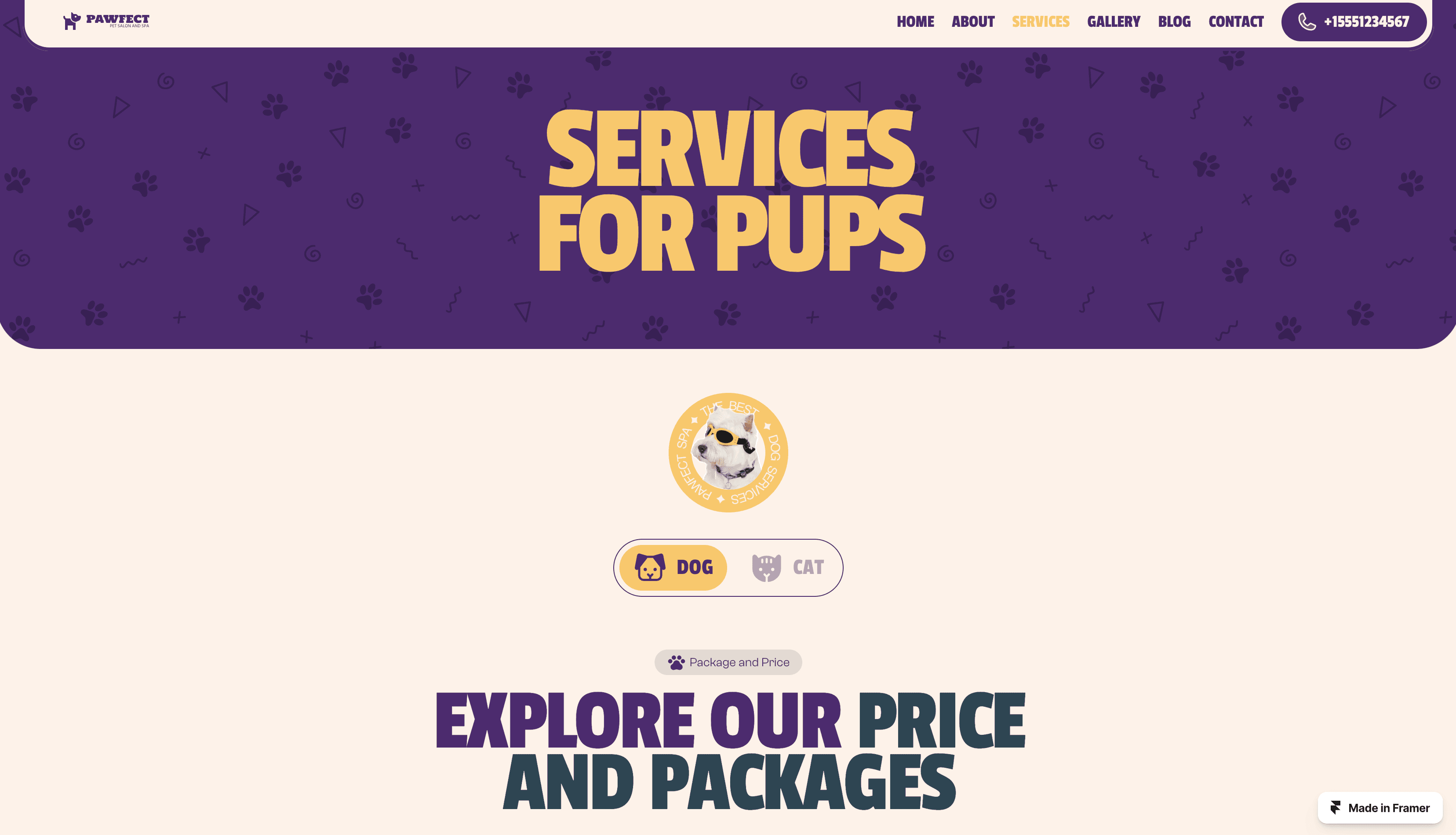 Groomer is the best Framer template for the Cat and Dog Groomers who owns a pet grooming salon, cat or dog spa center, pet parlor, pet care & massage business.