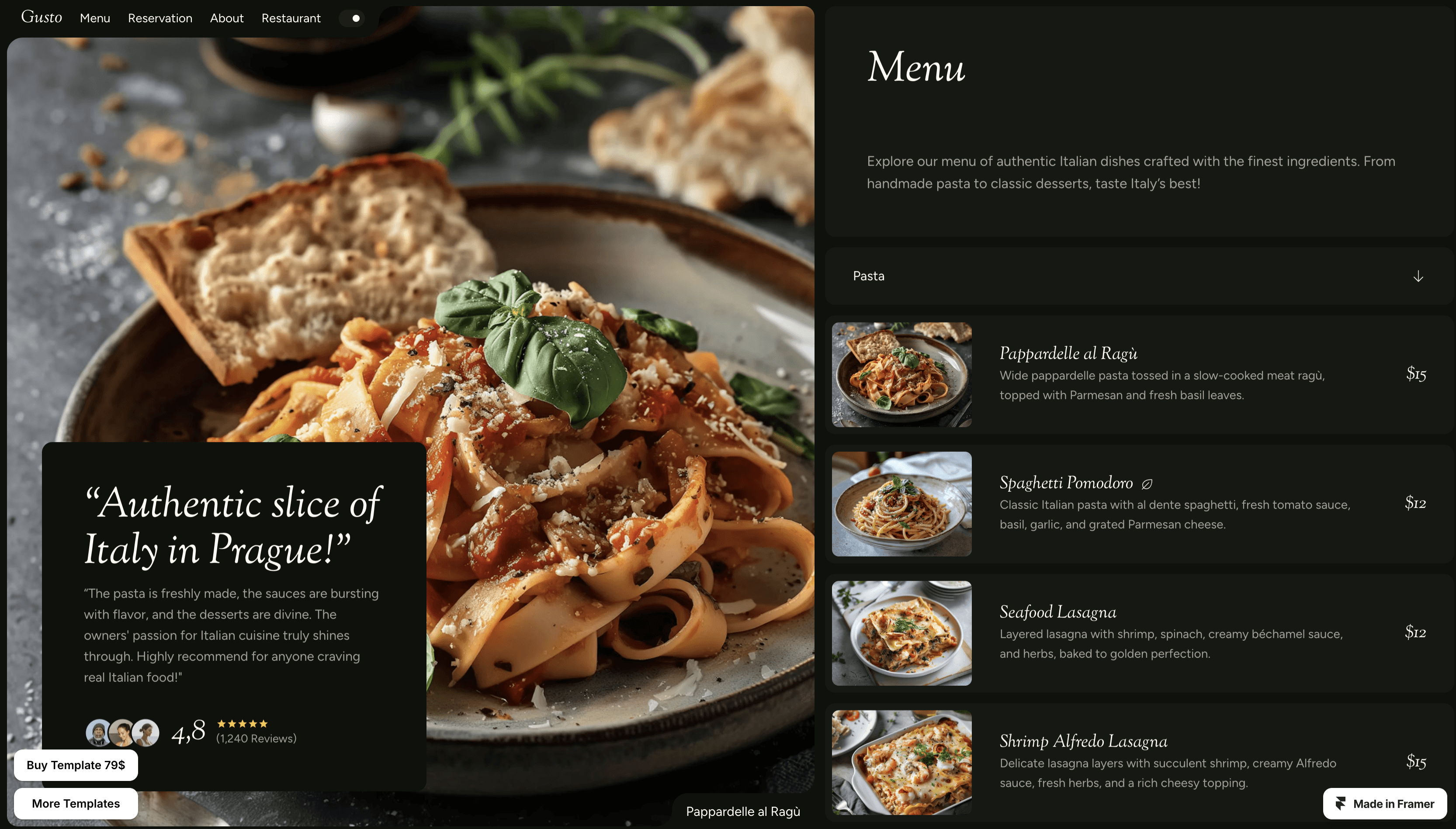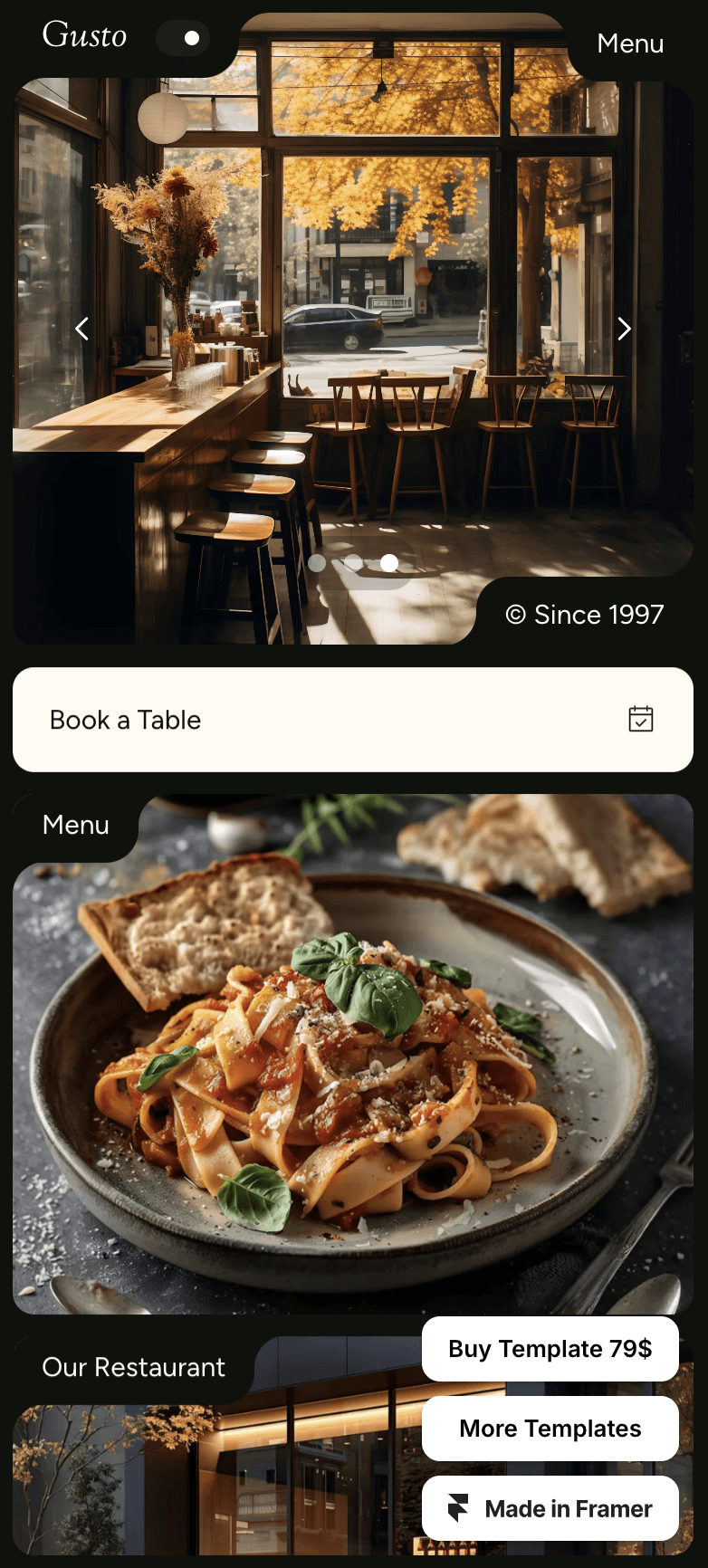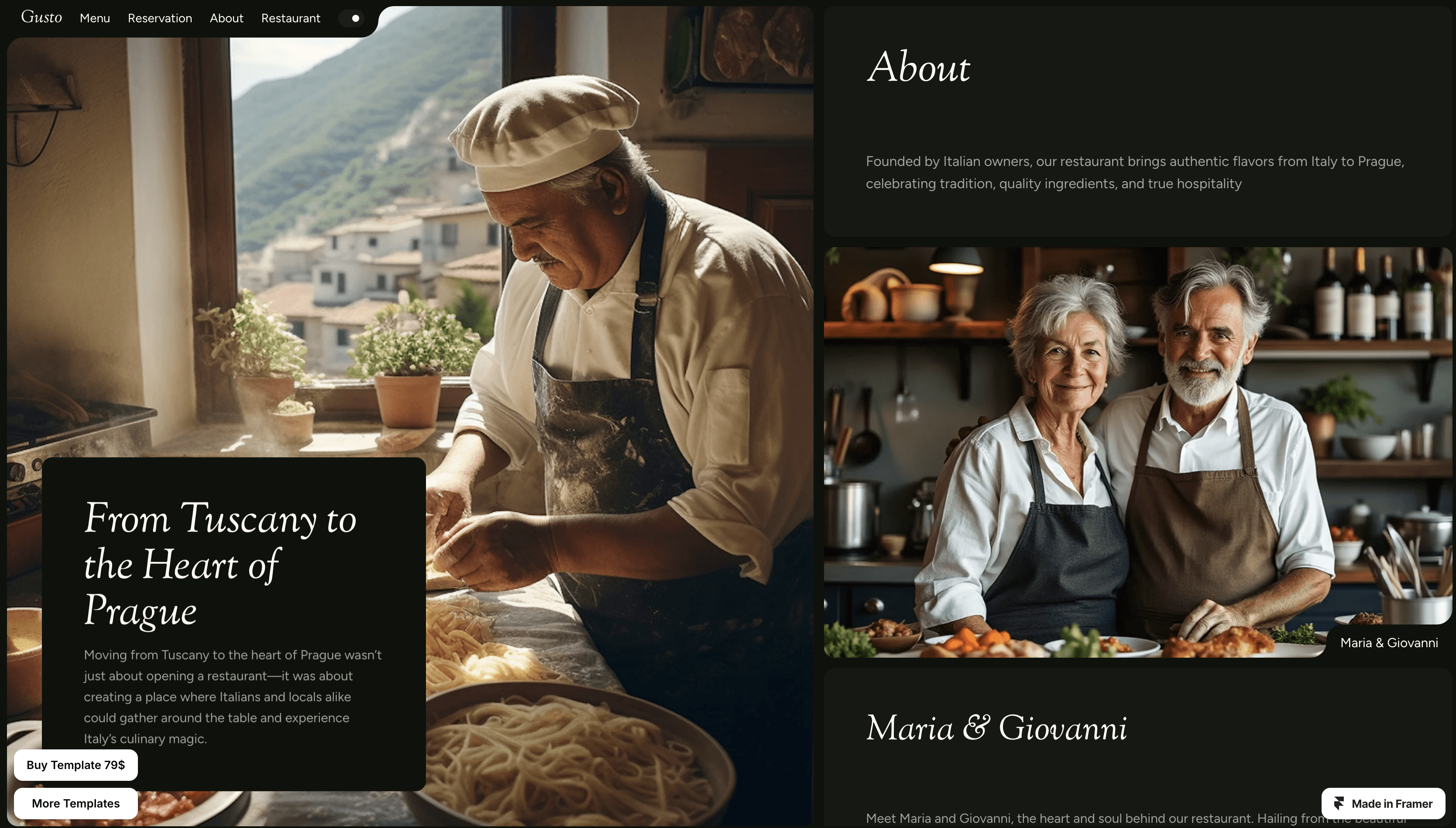 Bring your Italian restaurant to life with Gusto, a beautifully designed Framer template.