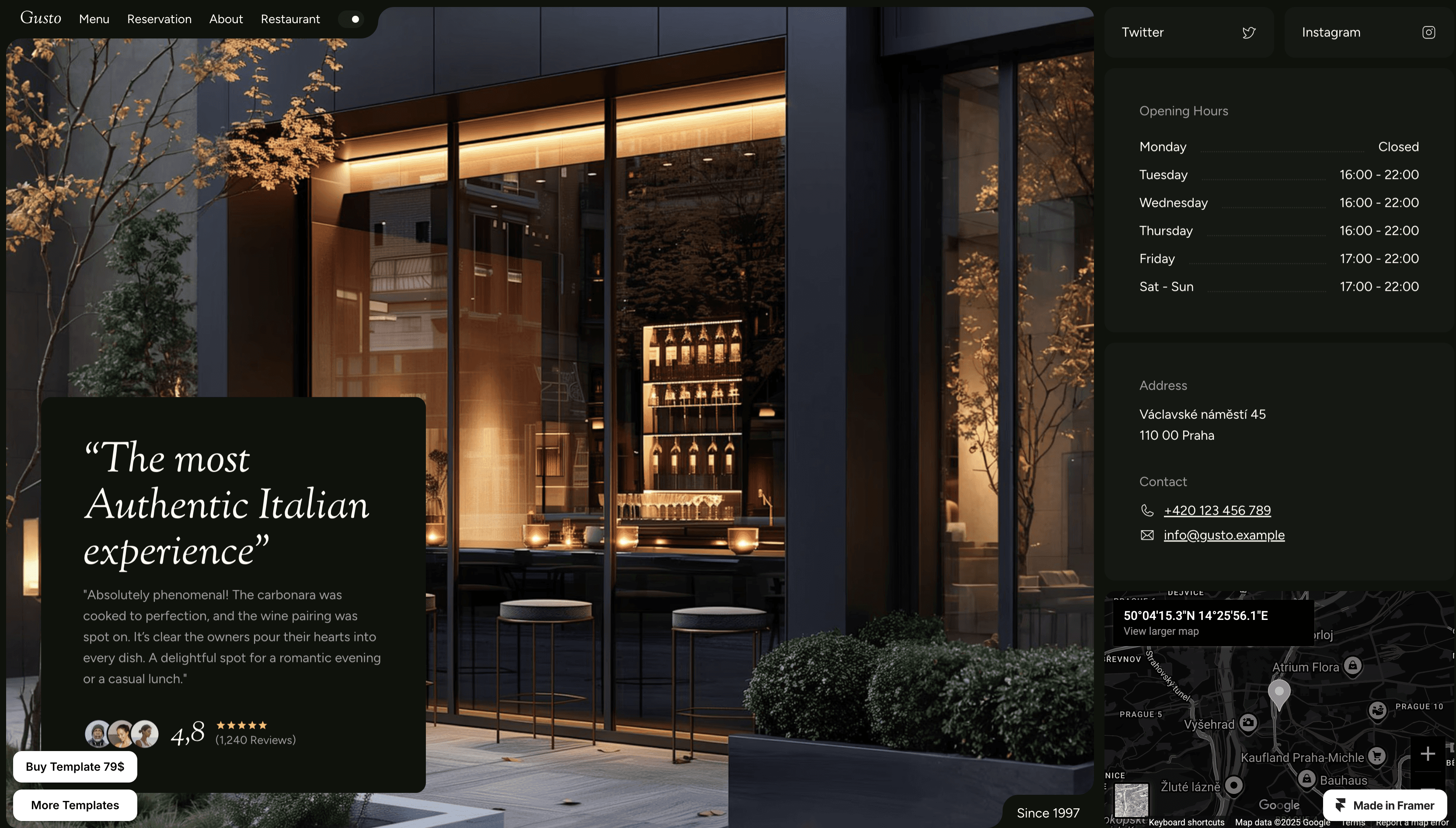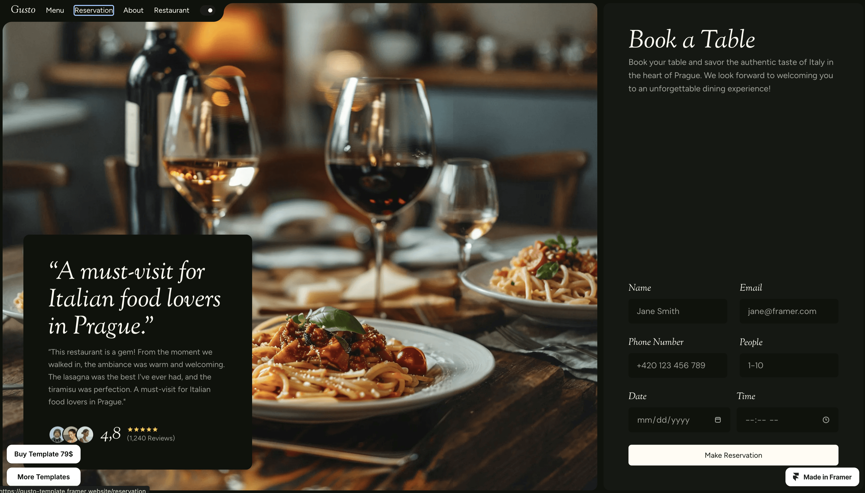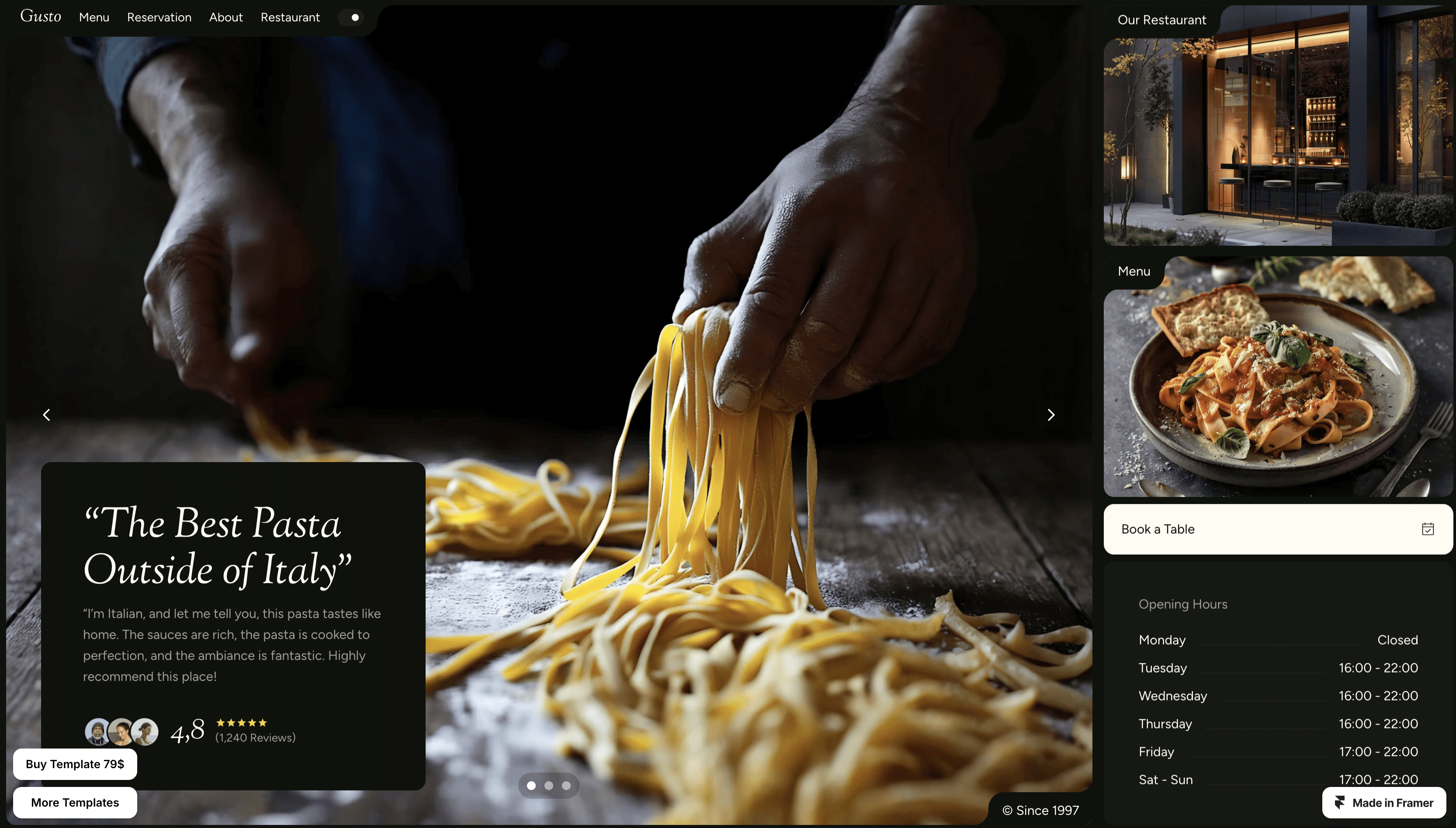 Bring your Italian restaurant to life with Gusto, a beautifully designed Framer template.