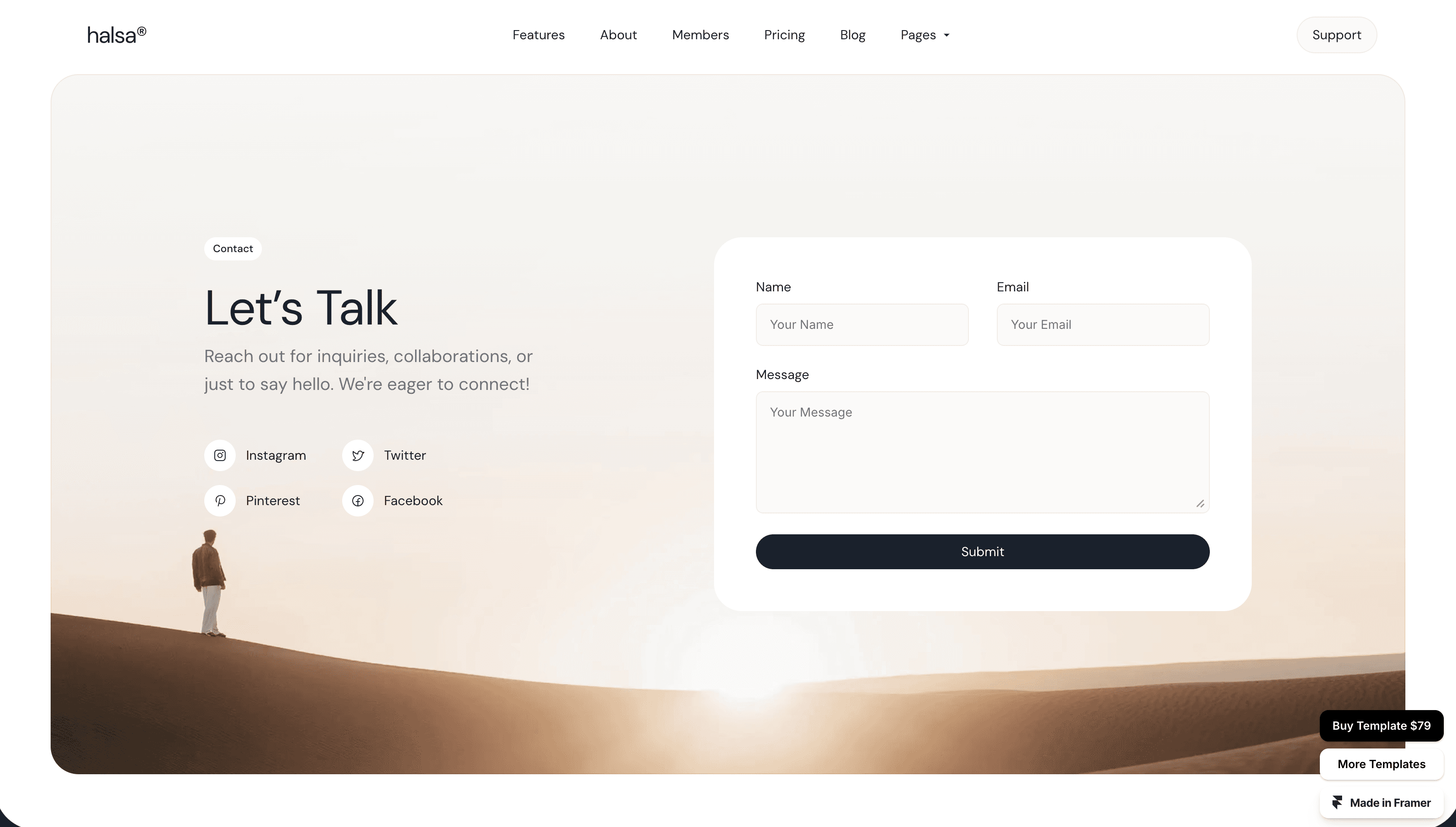Halsa is a clean and minimal SaaS & Startup Framer Template tailored for a diverse range of enterprises, including SaaS, startups, small businesses, technology firms, creative ventures, agencies, and beyond.