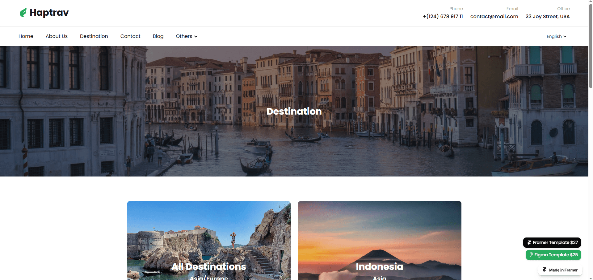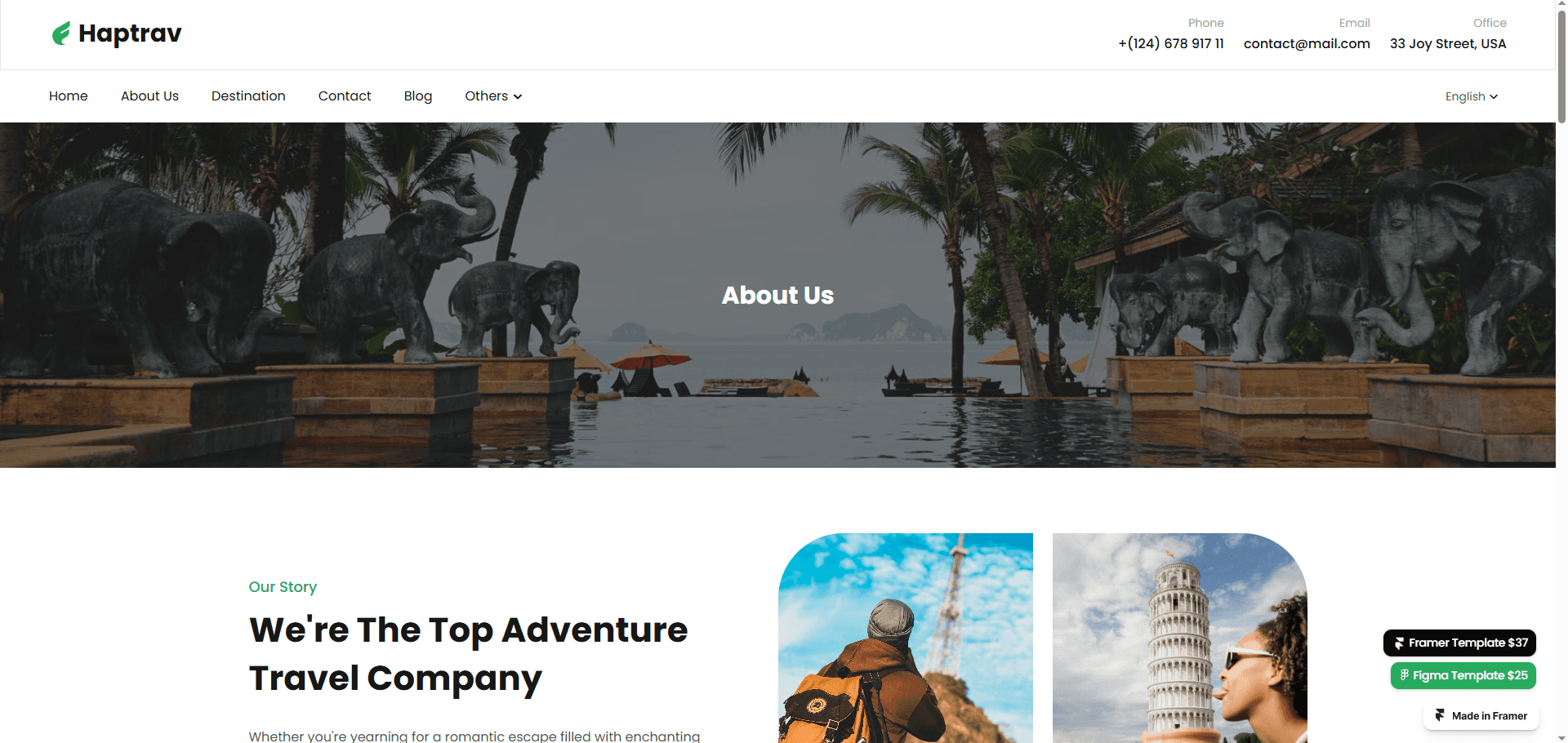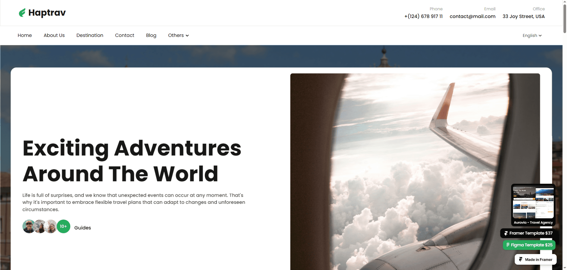 Template Framer Haptrav is the perfect solution for a modern and captivating travel agency website.