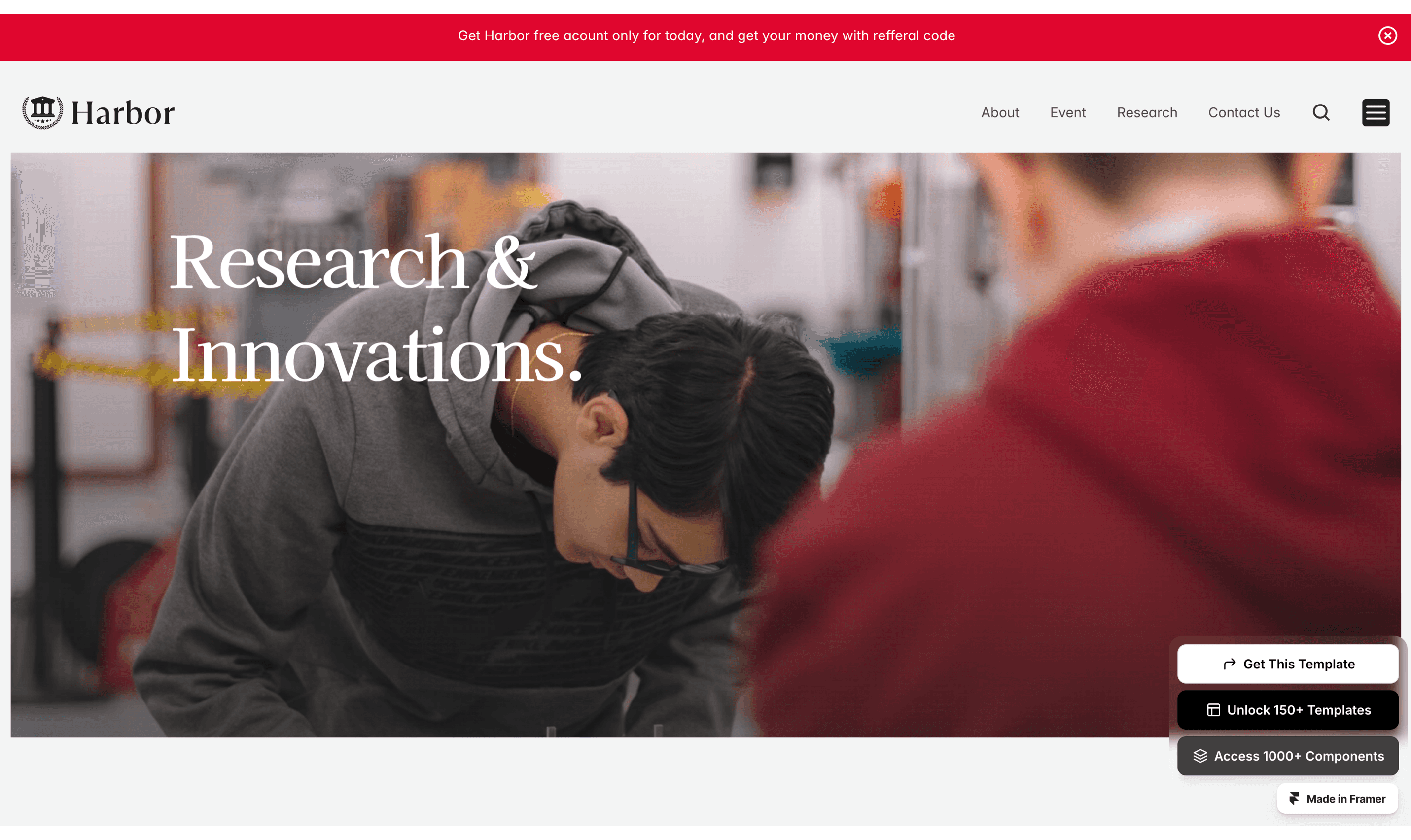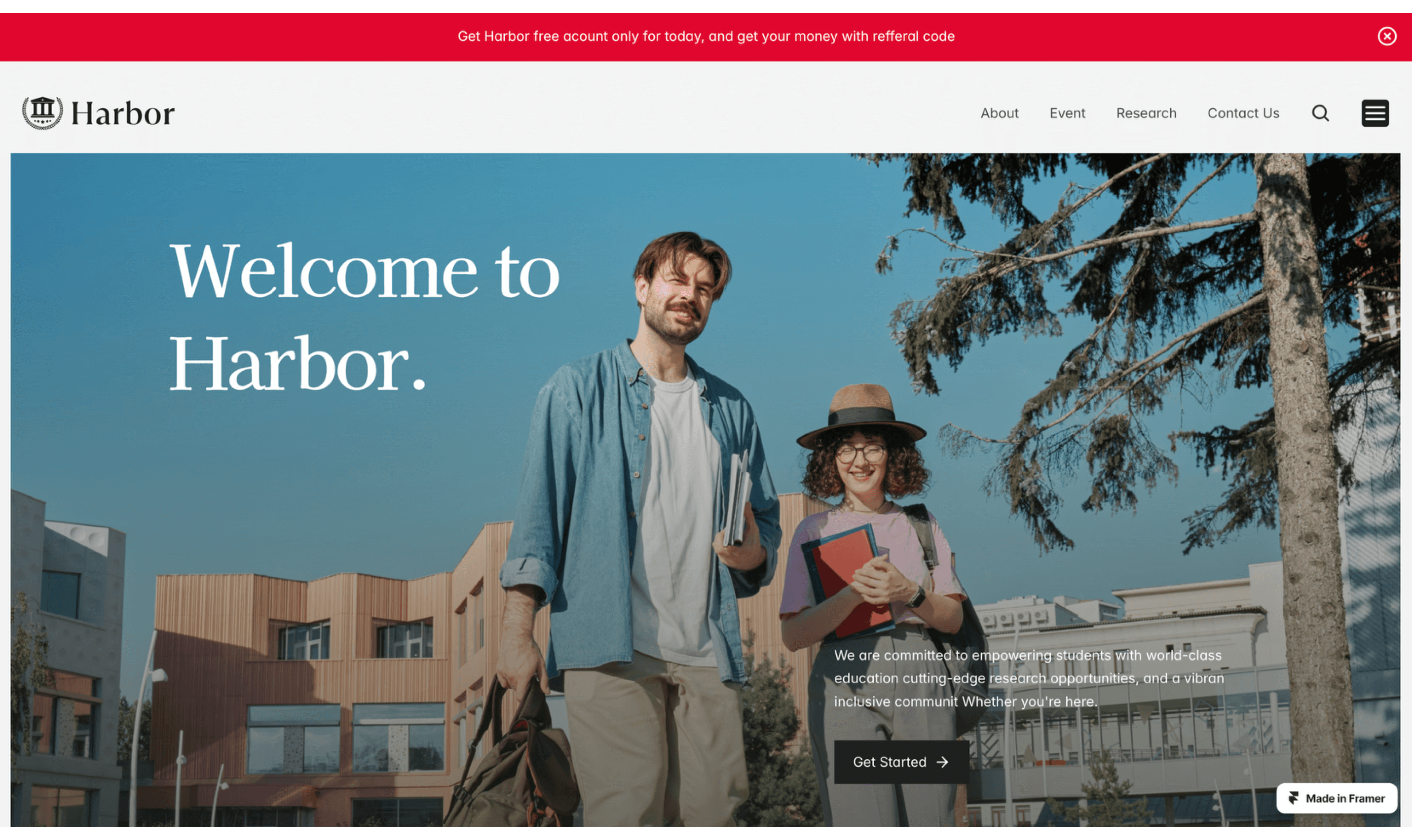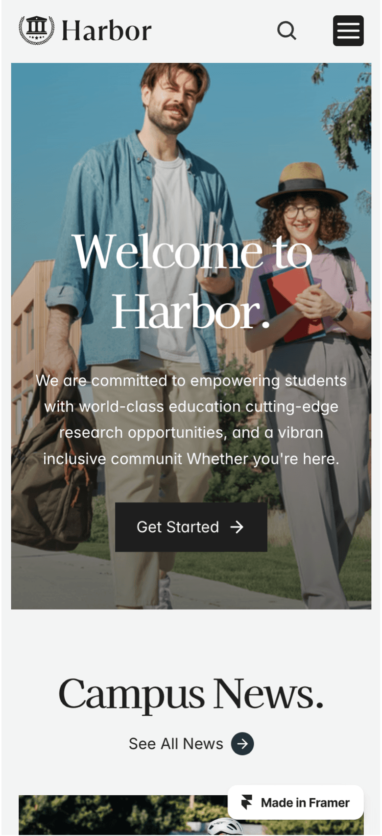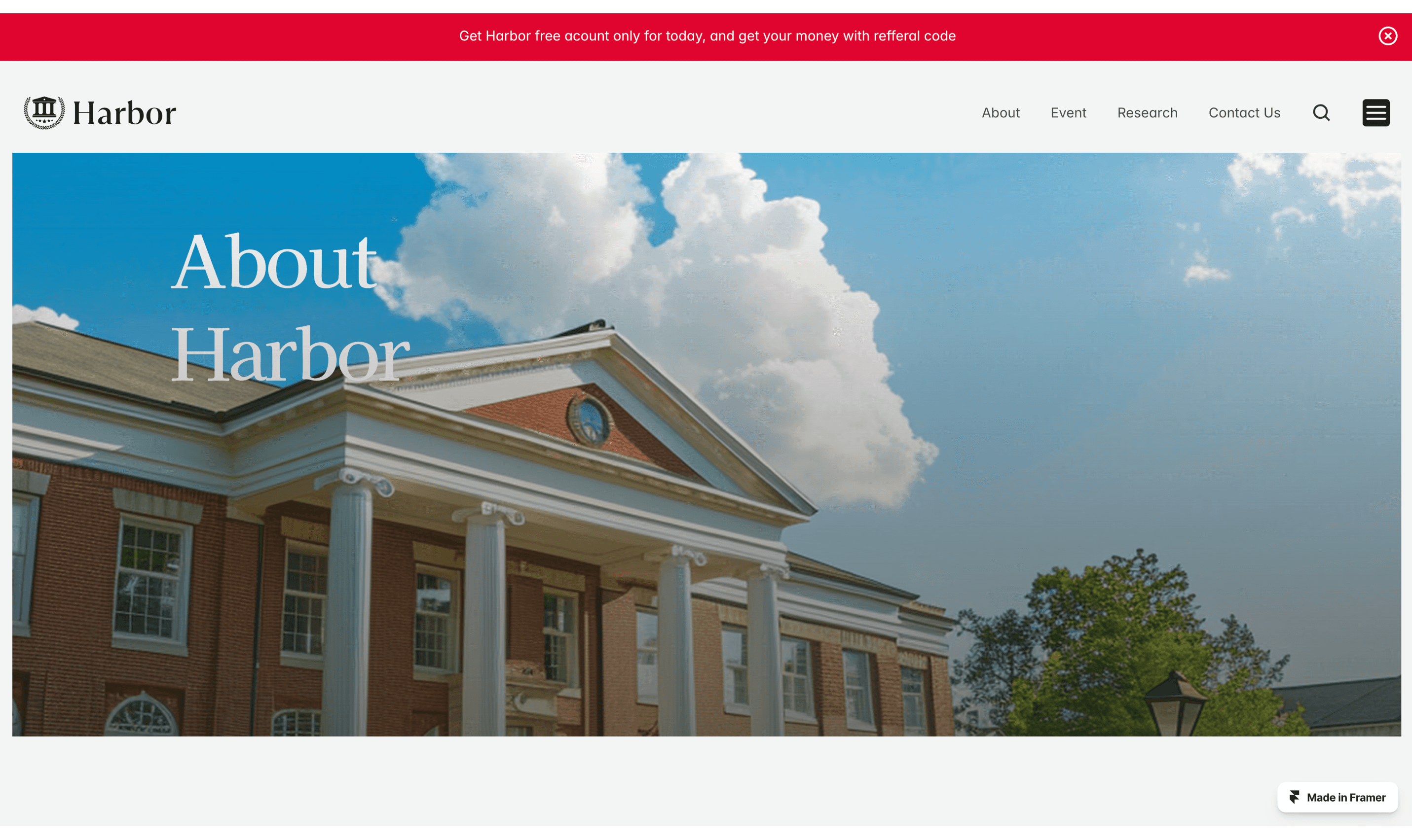 Harbor is the ultimate education Framer template designed to make your university, college, educational institute website stand out.