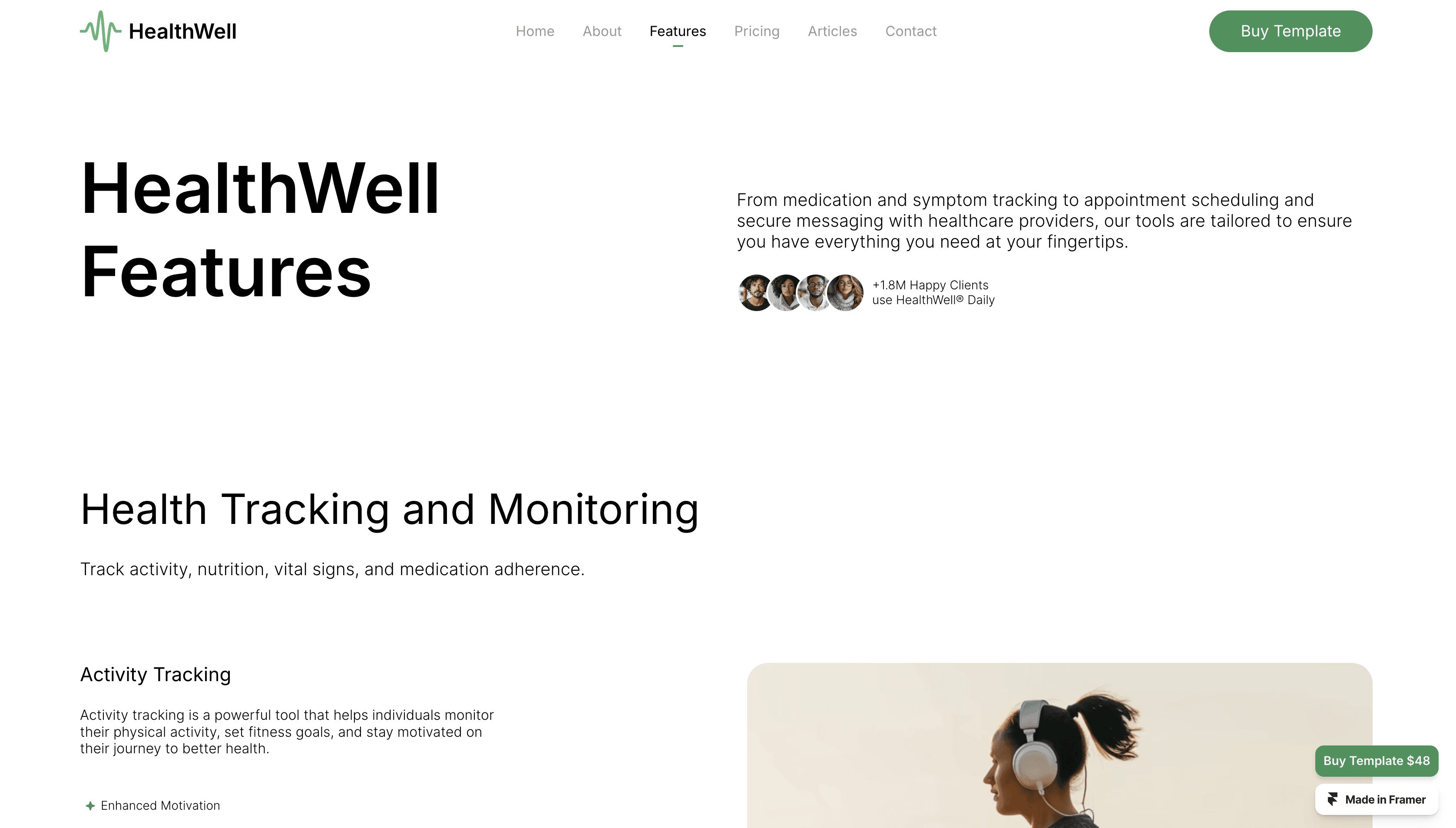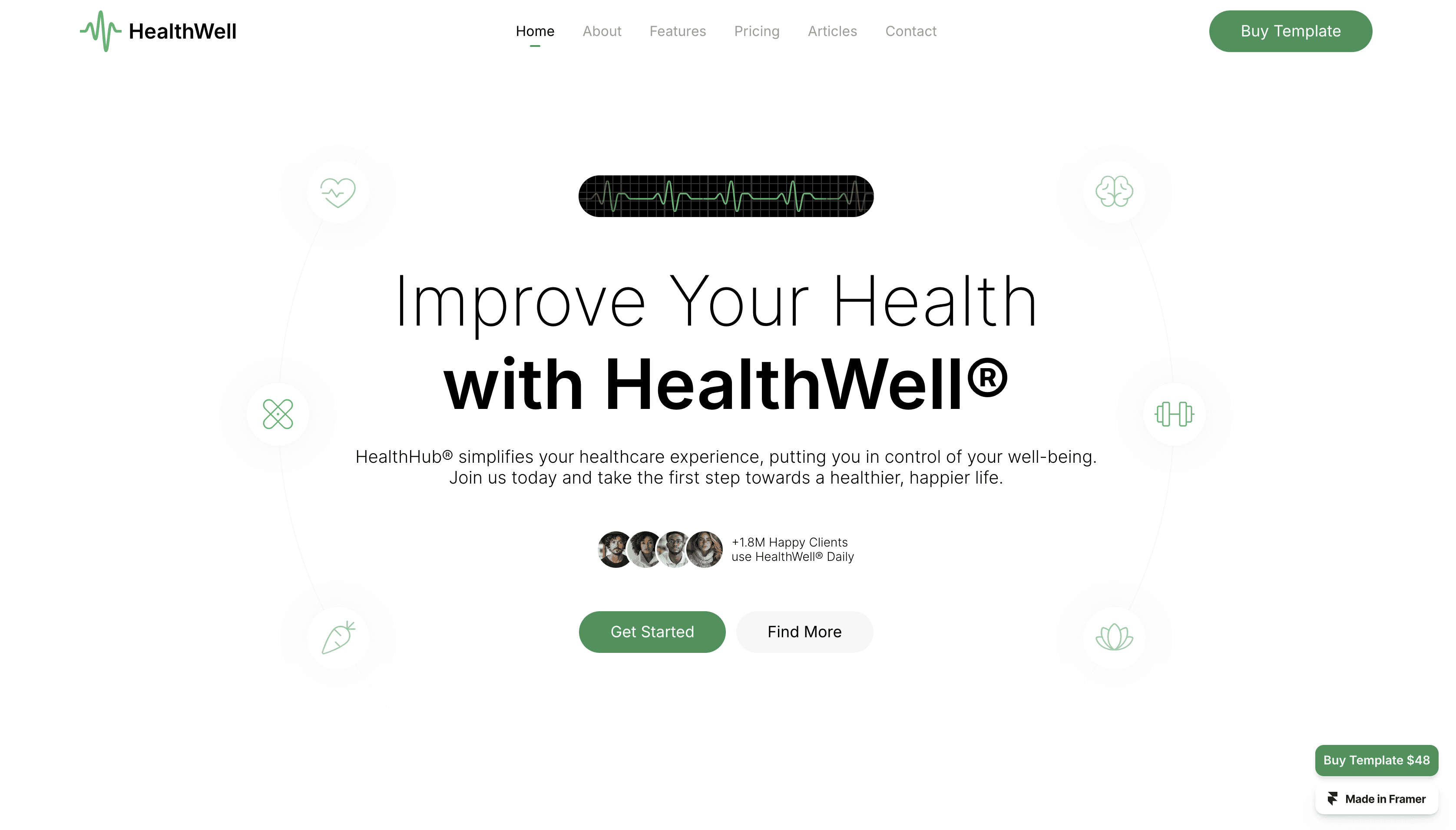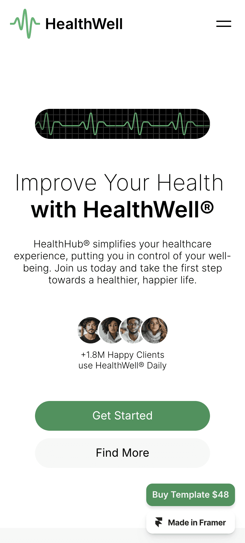 HealthWell is a sleek template for healthcare landing pages. It features customizable components and sections, perfect for creating engaging, user-friendly websites.