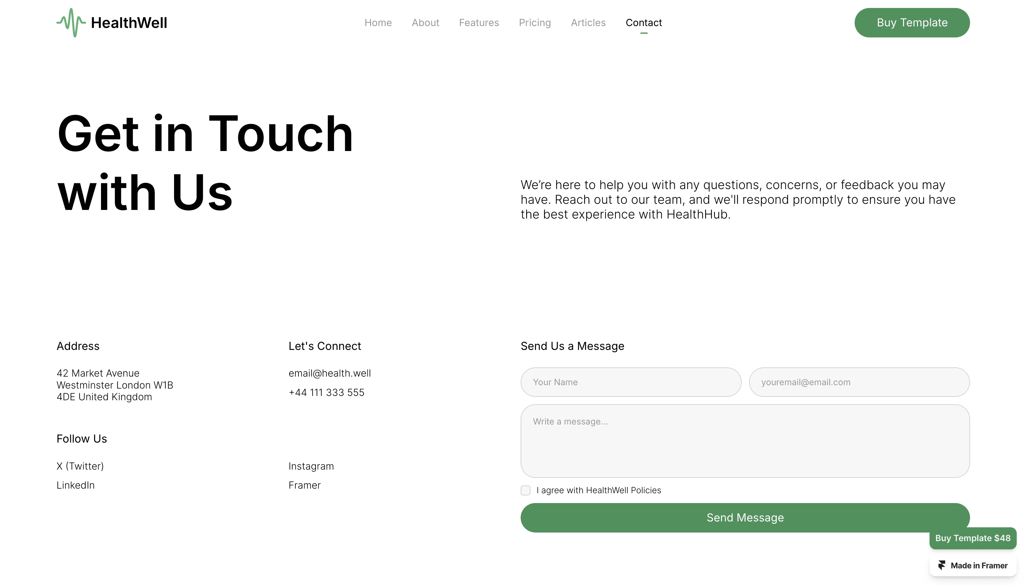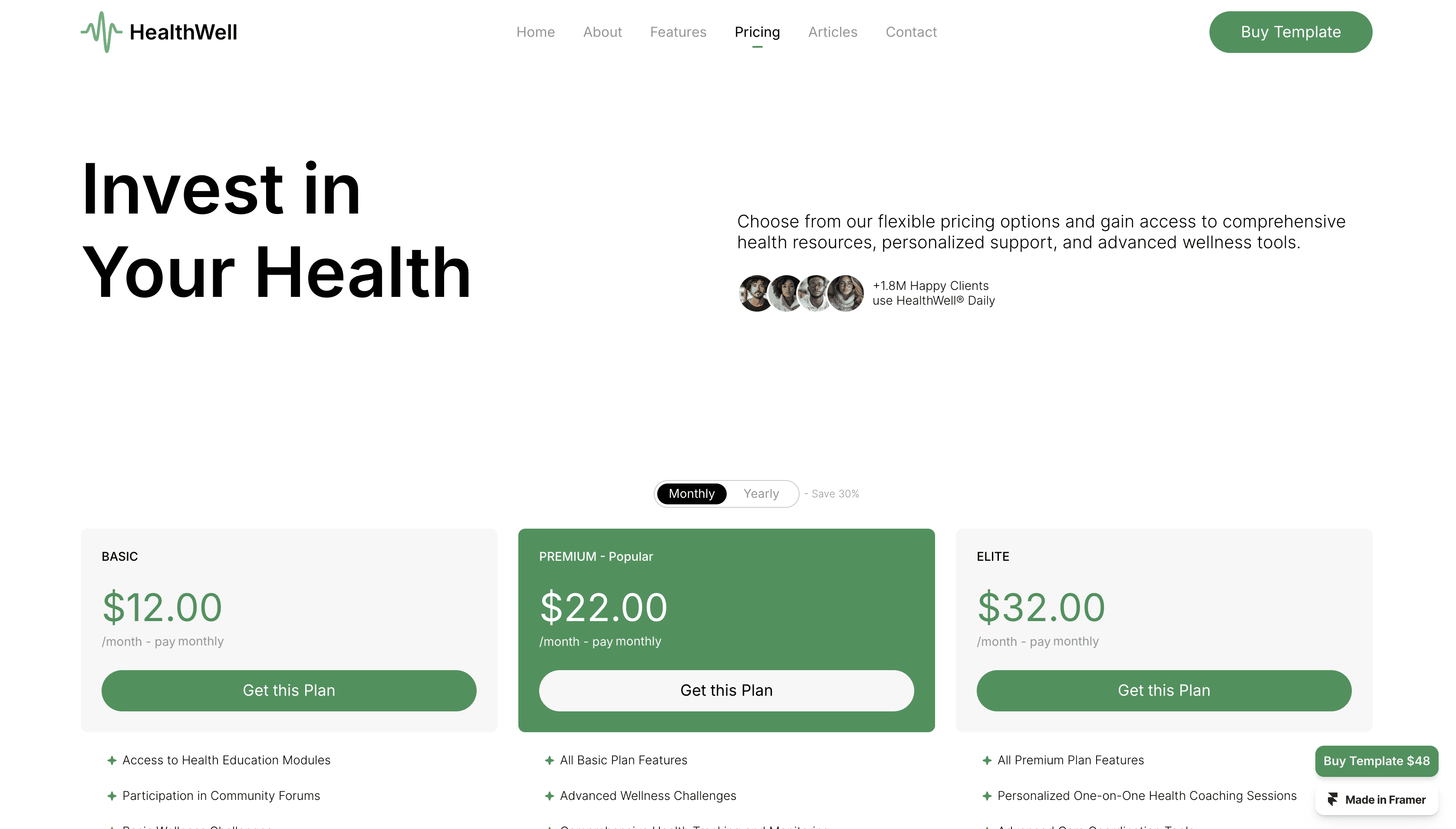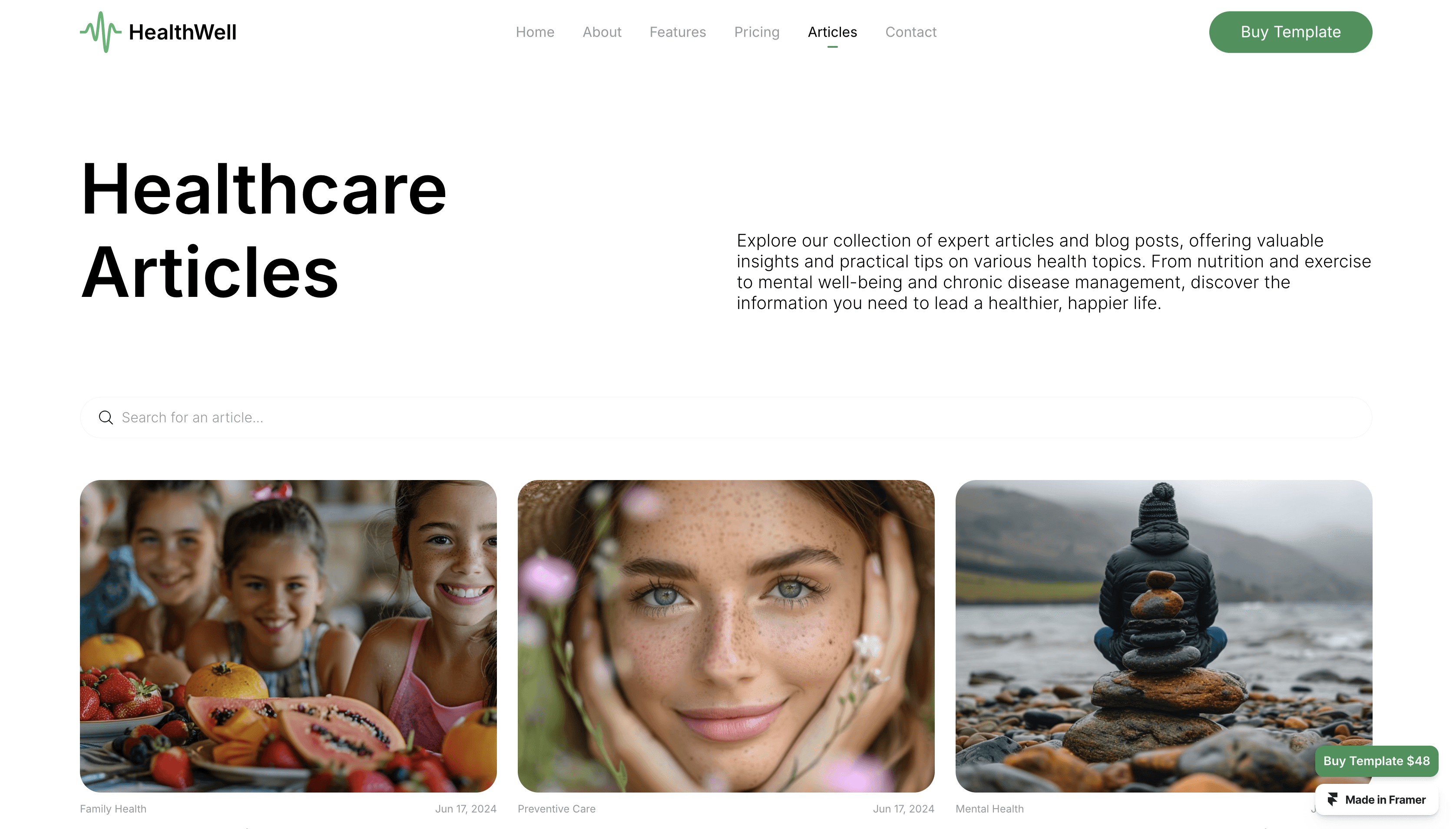 HealthWell is a sleek template for healthcare landing pages. It features customizable components and sections, perfect for creating engaging, user-friendly websites.