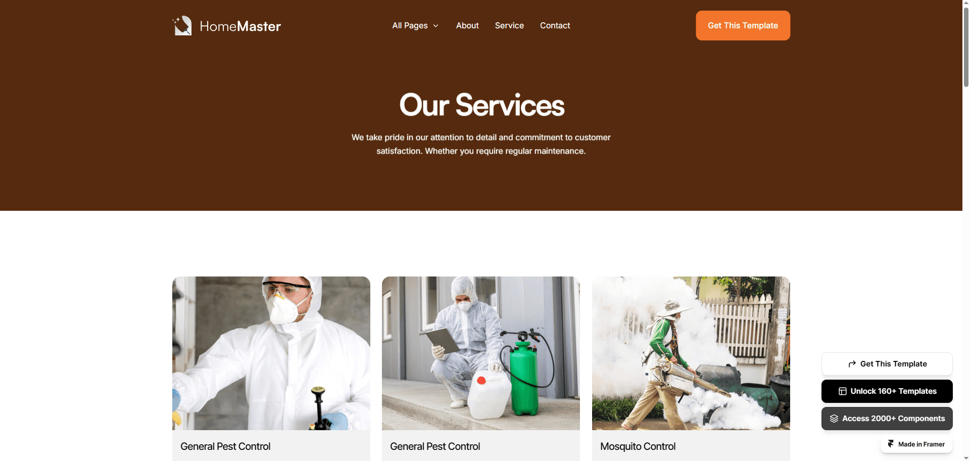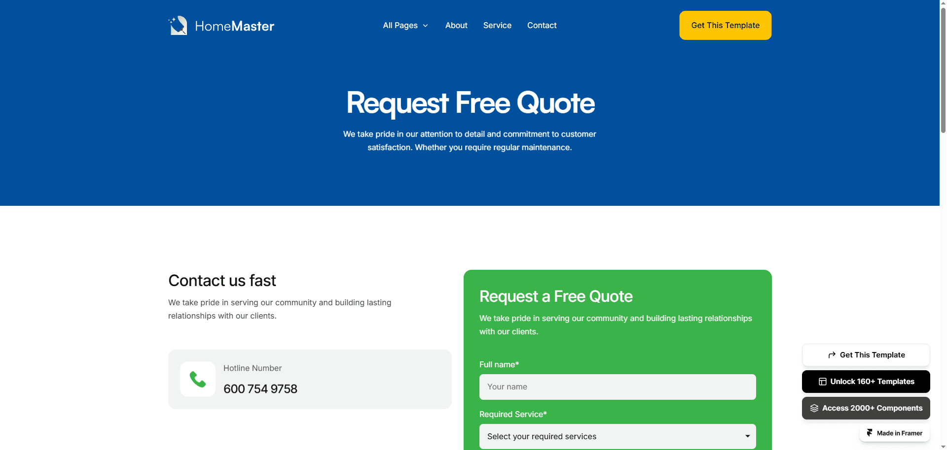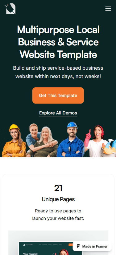 HomeMaster is a multi-layout Framer template made for local service businesses.