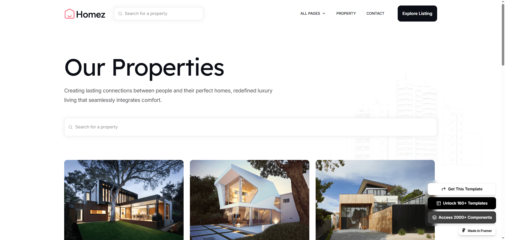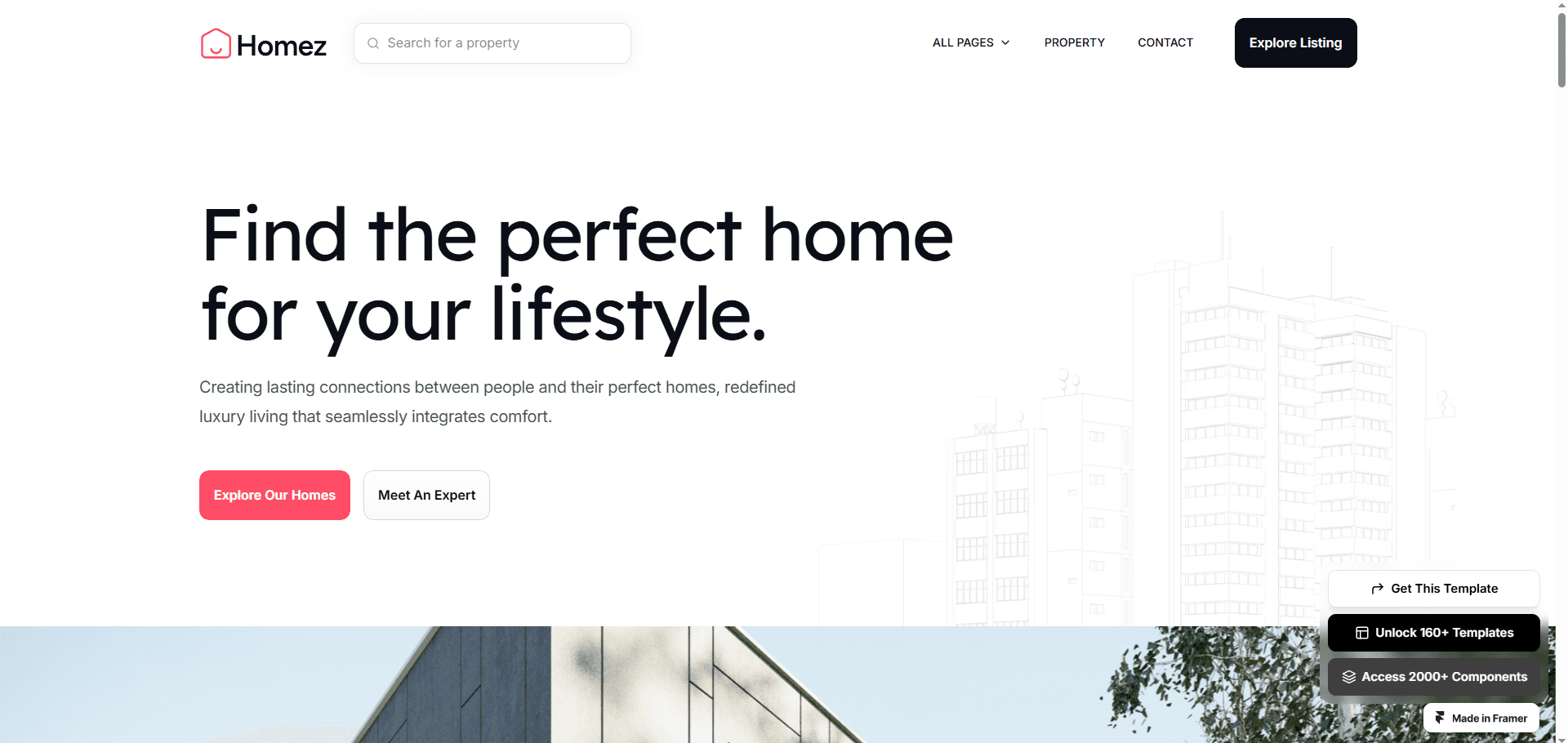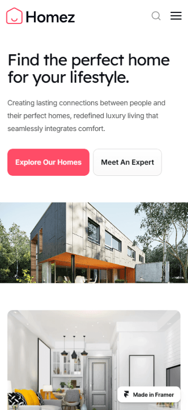 Homez is a premium real estate Framer template made for real estate, home directory, listing business.