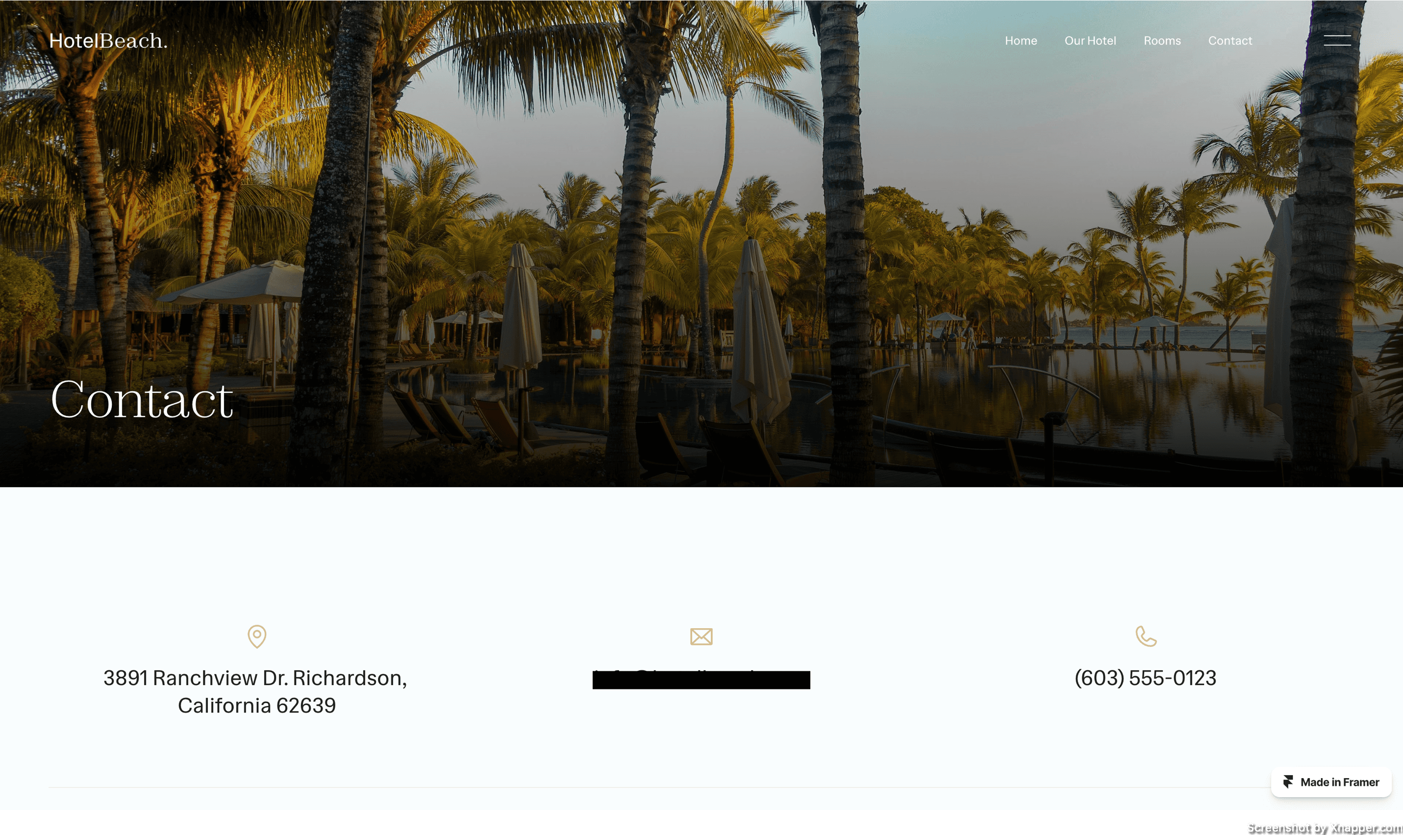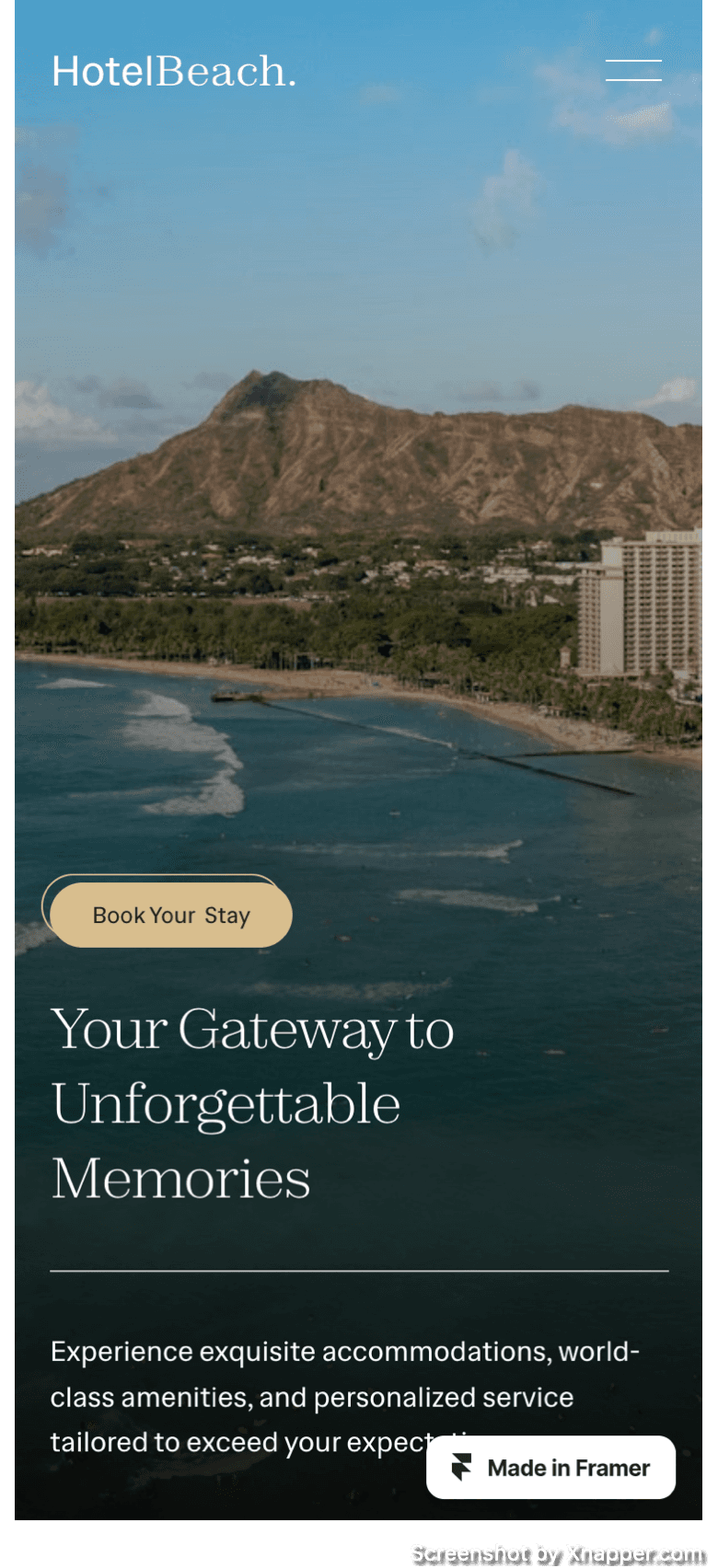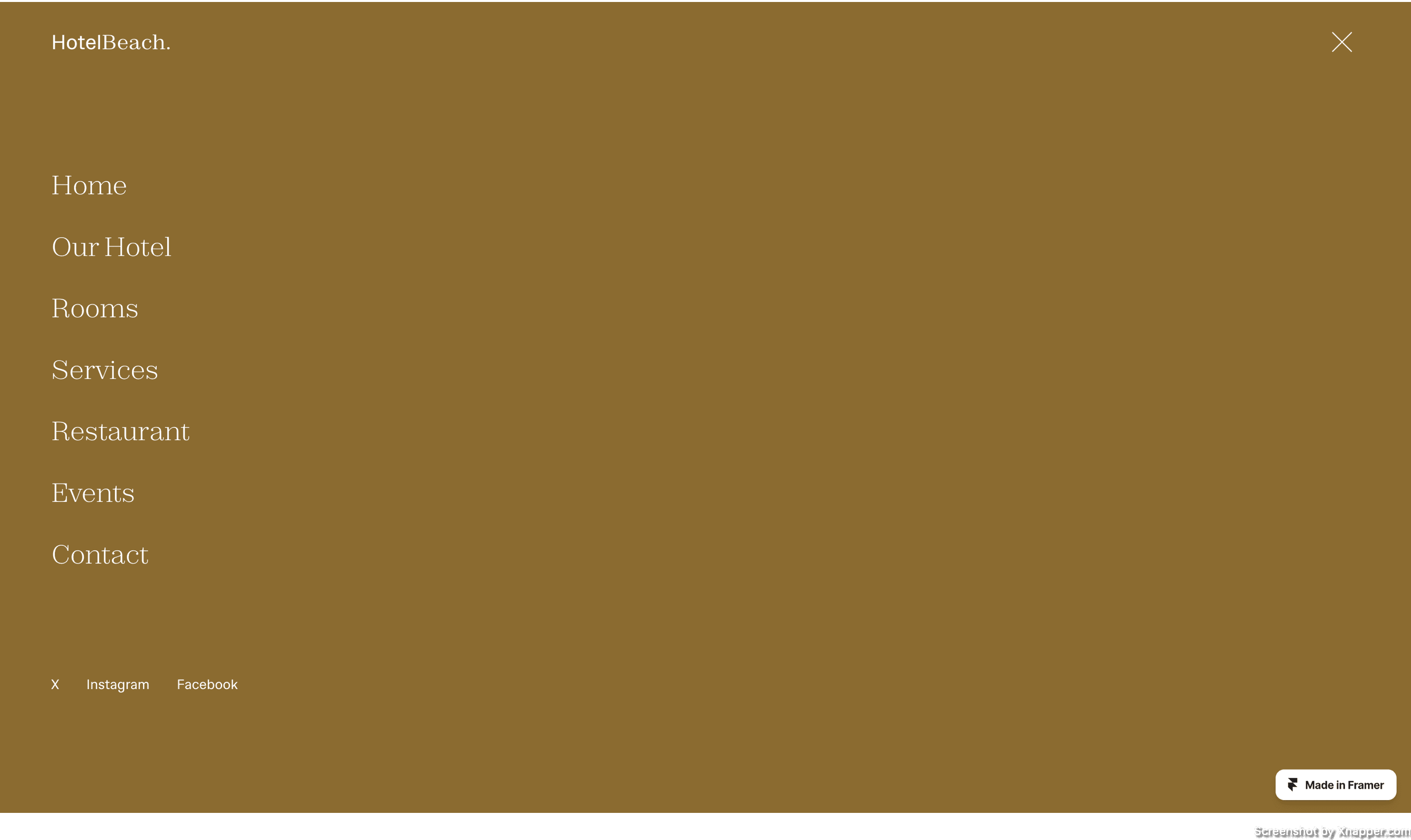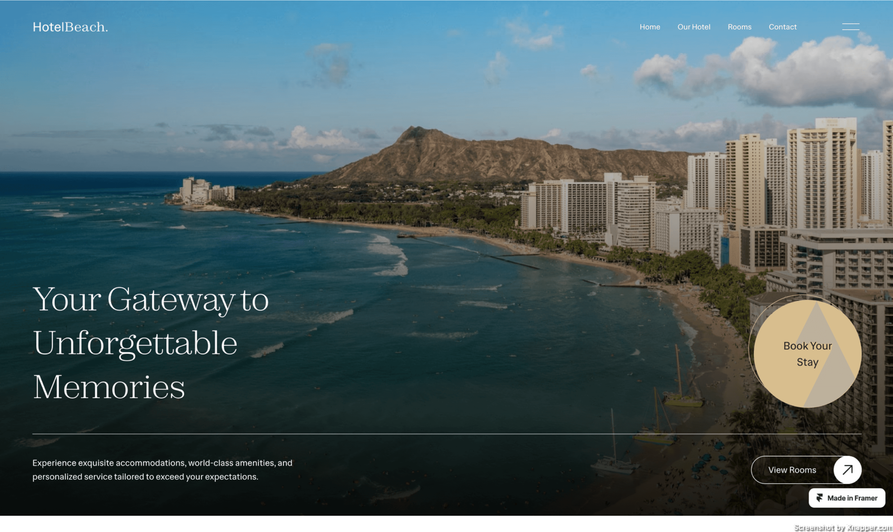 HotelBeach is a sophisticated and elegant luxury hotel template built with Framer.