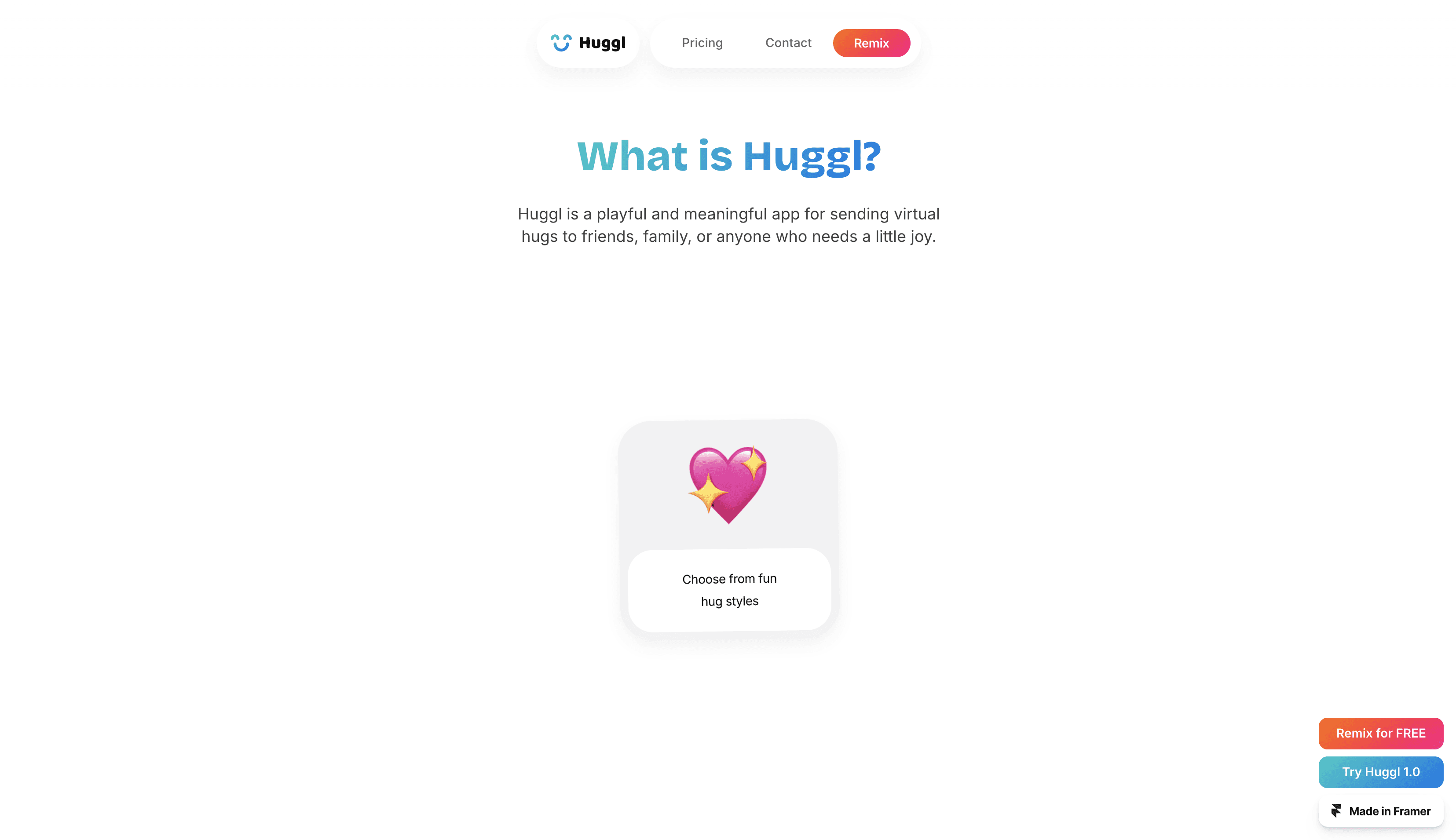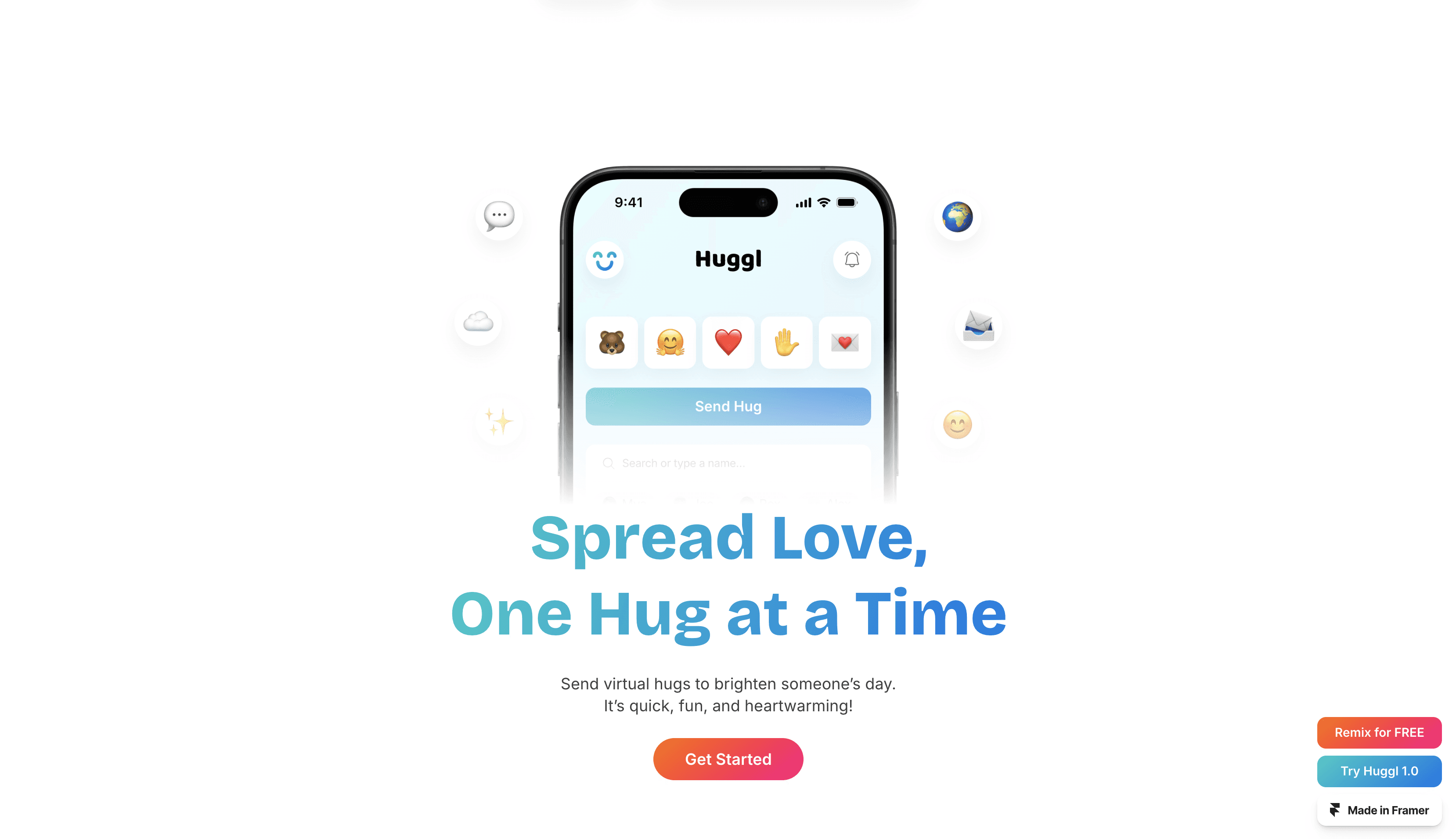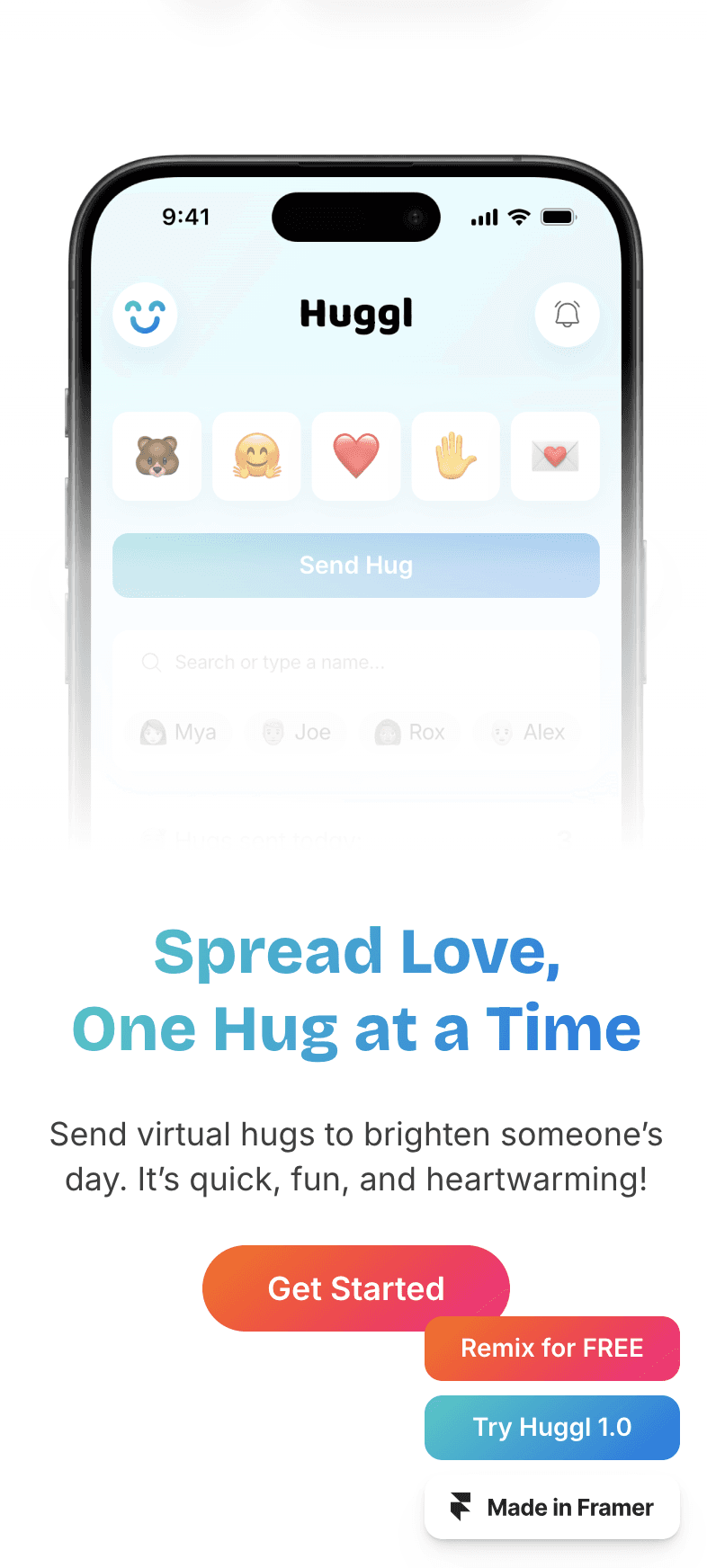Huggl makes showcasing your app's features joyful and professional, with a modern, adaptable foundation. Effortlessly build your unique vision and delight users.