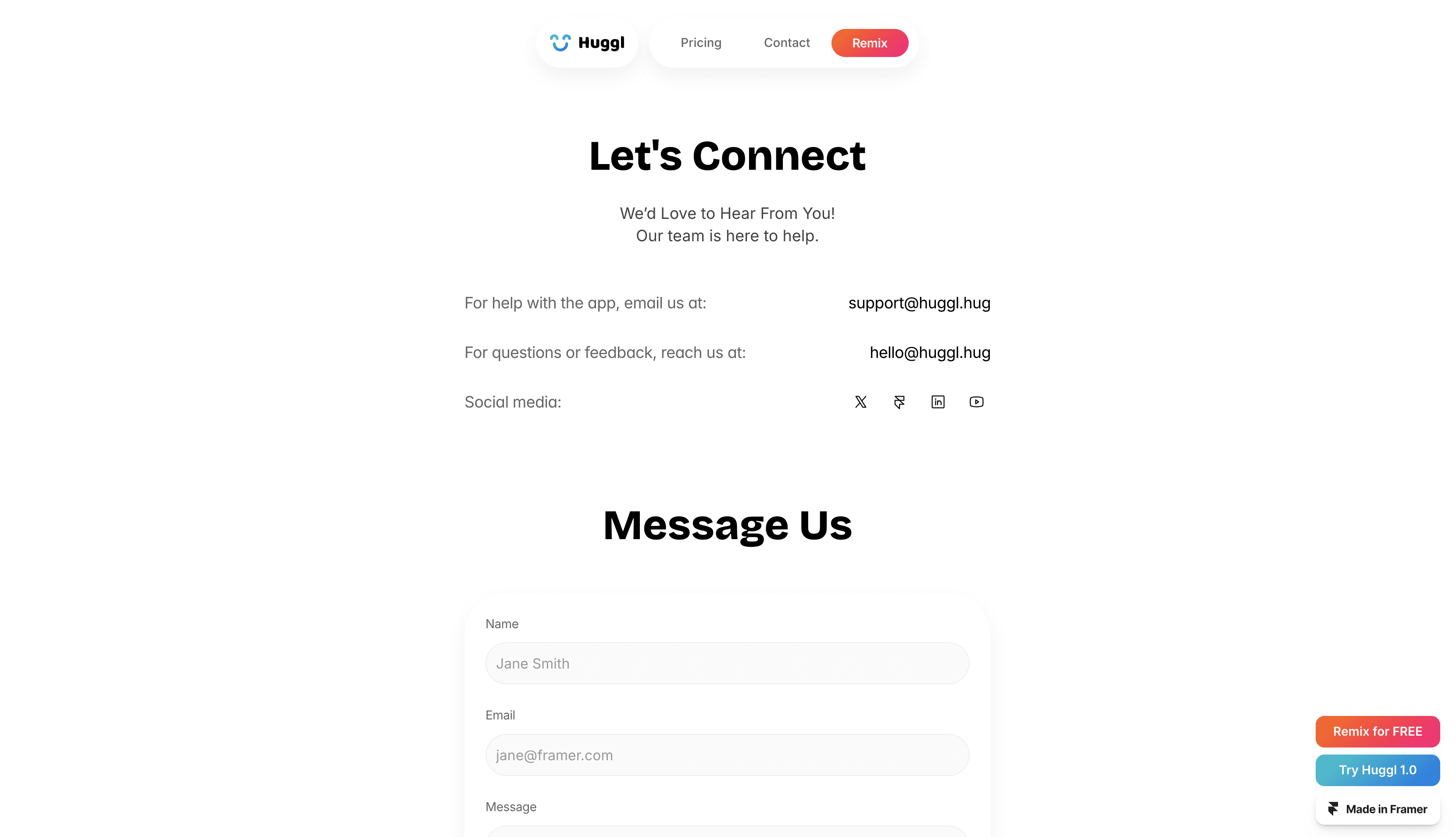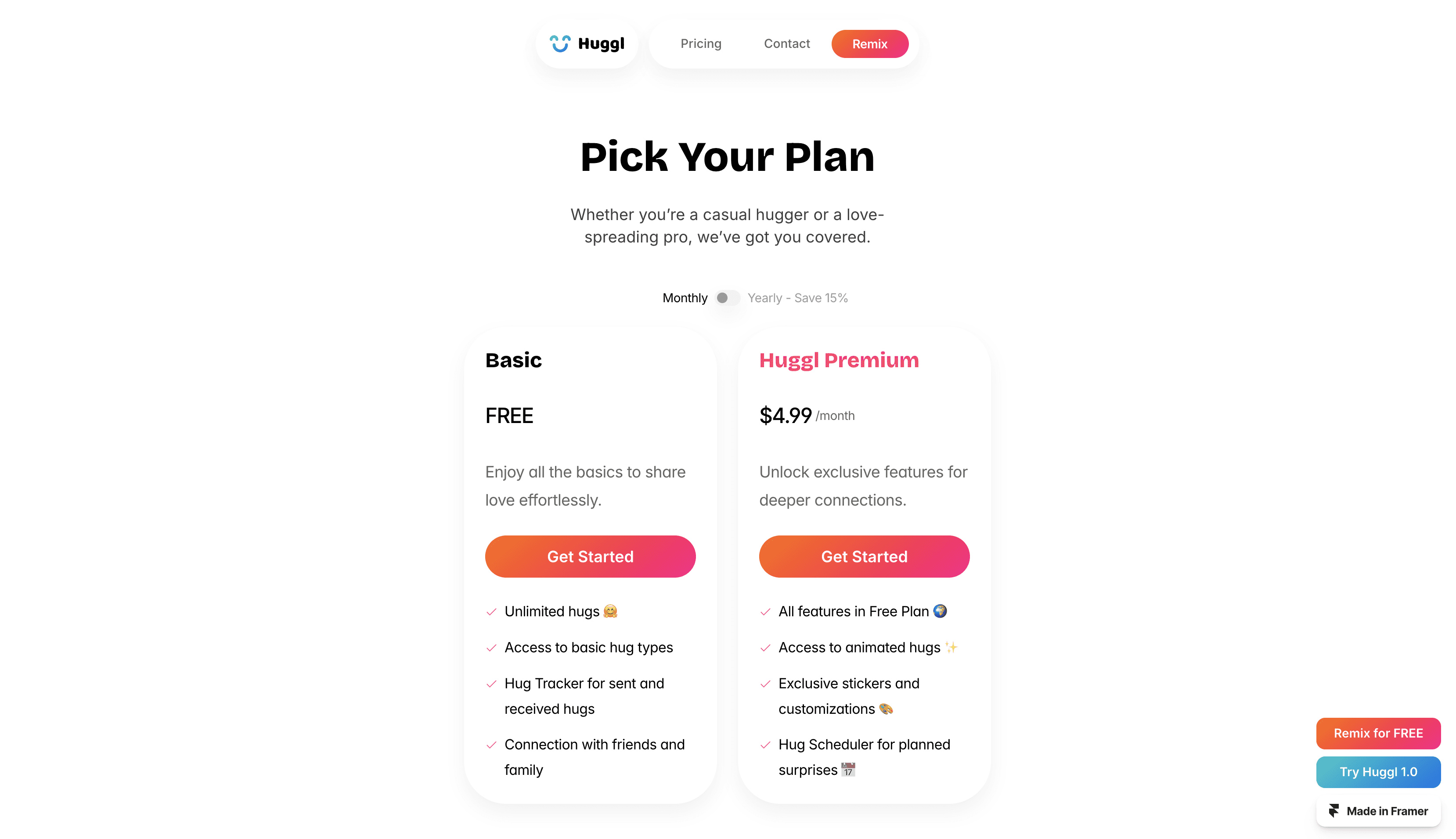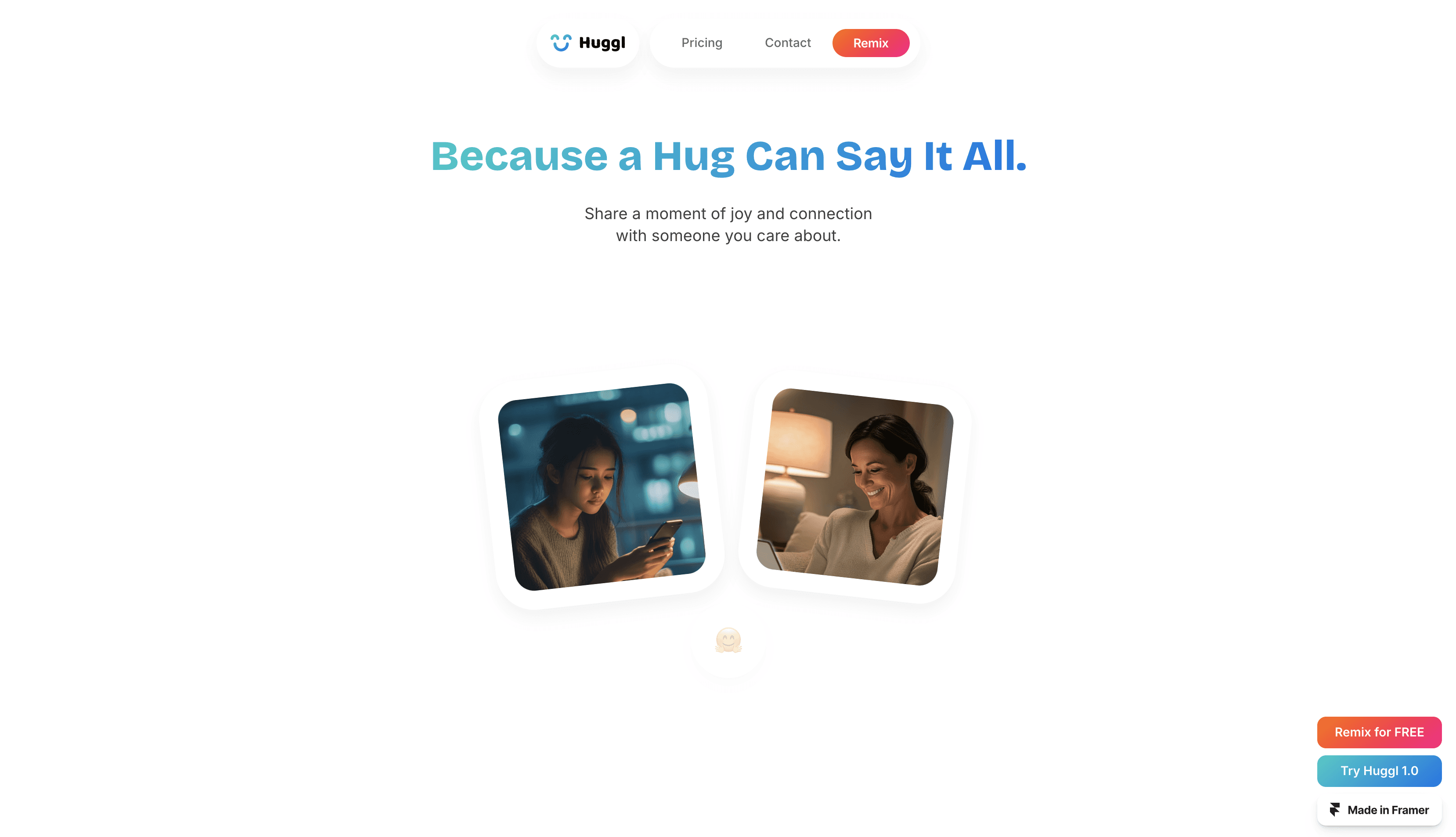 Huggl makes showcasing your app's features joyful and professional, with a modern, adaptable foundation. Effortlessly build your unique vision and delight users.