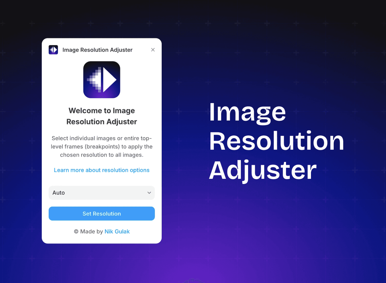 Select individual images or entire frames containing nested elements, and apply your preferred resolution with a few clicks.