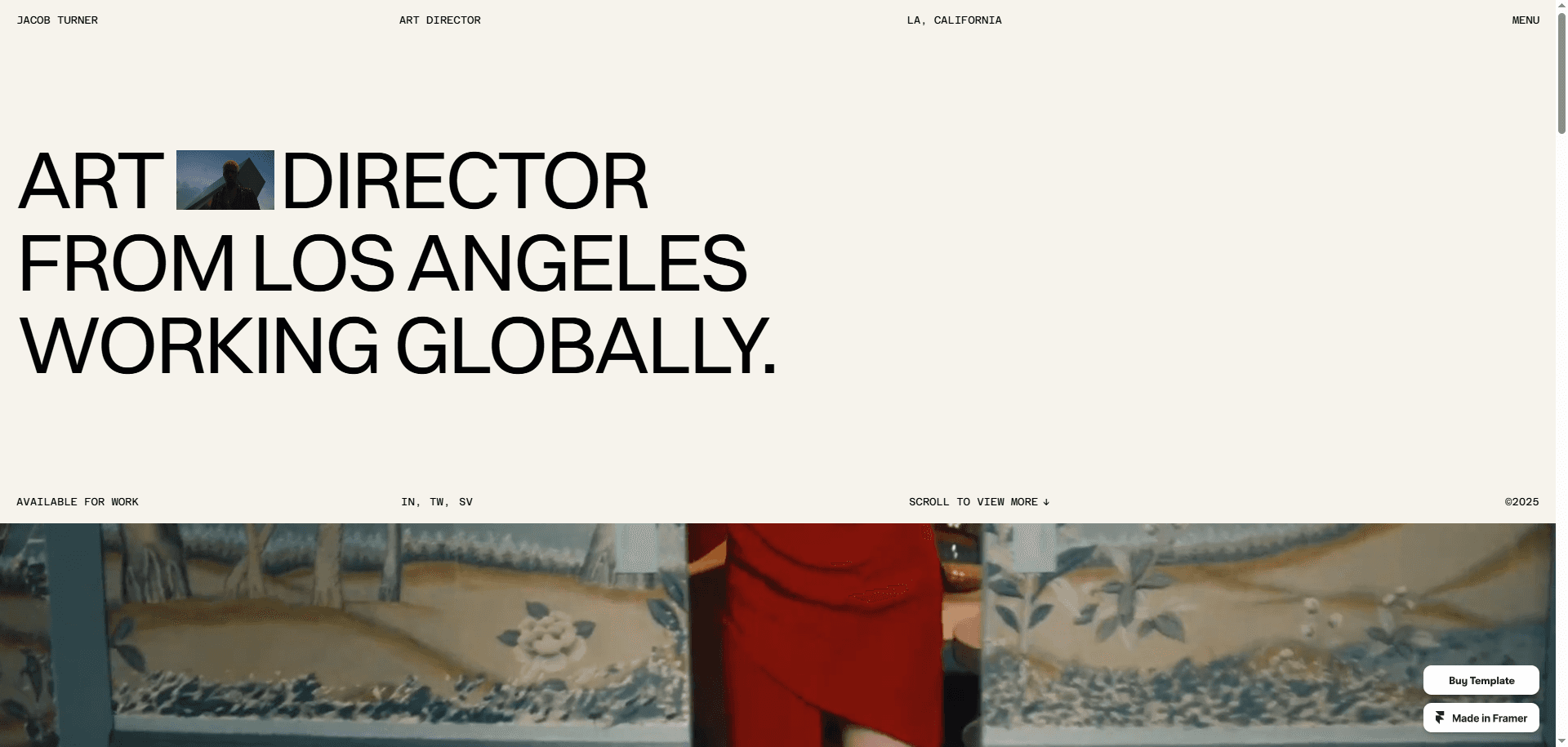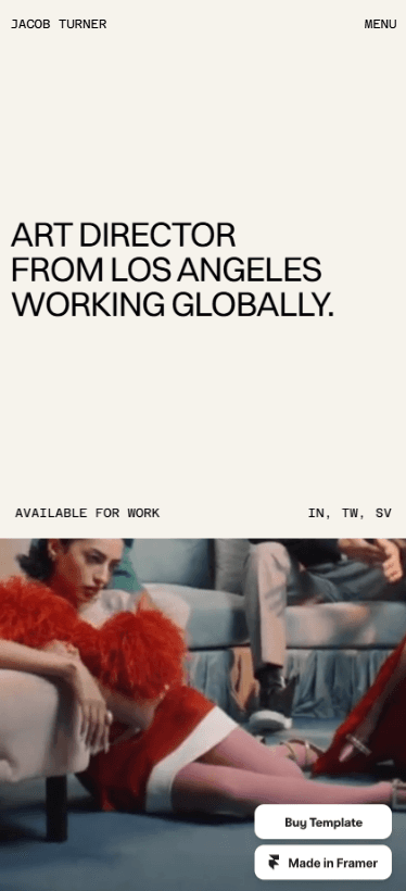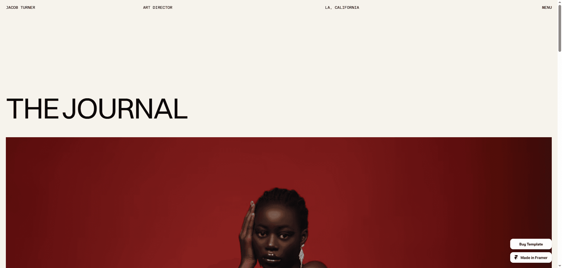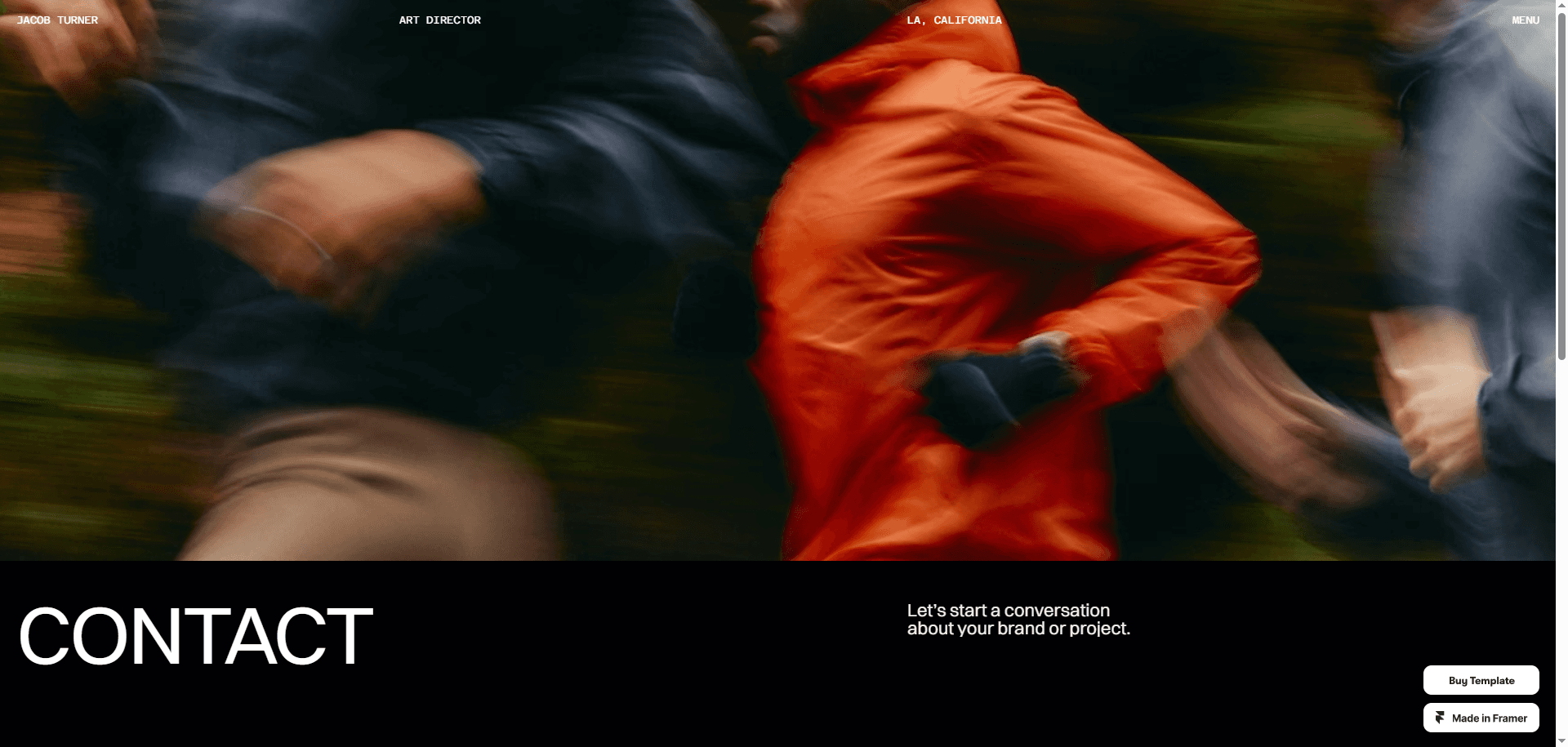 Explore Jacob Turner's Art Director Portfolio, a carefully designed Framer Website template ideal for presenting your creative projects with unique character and class.