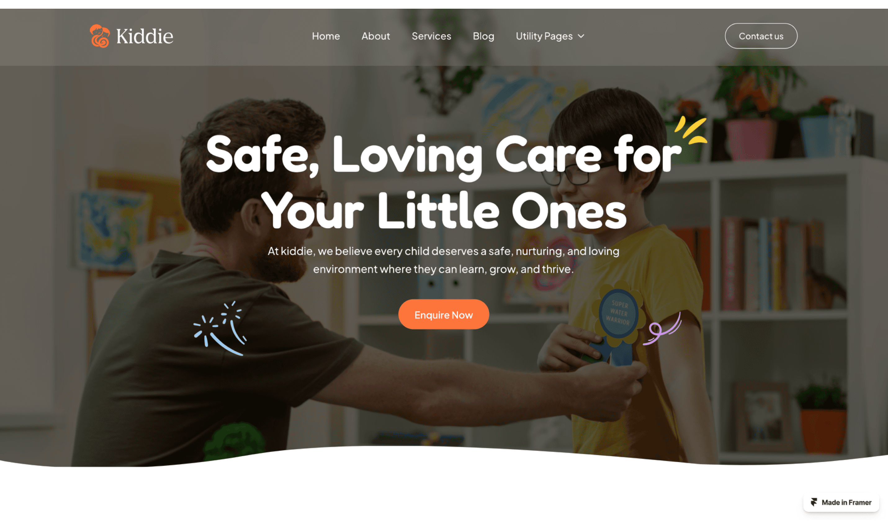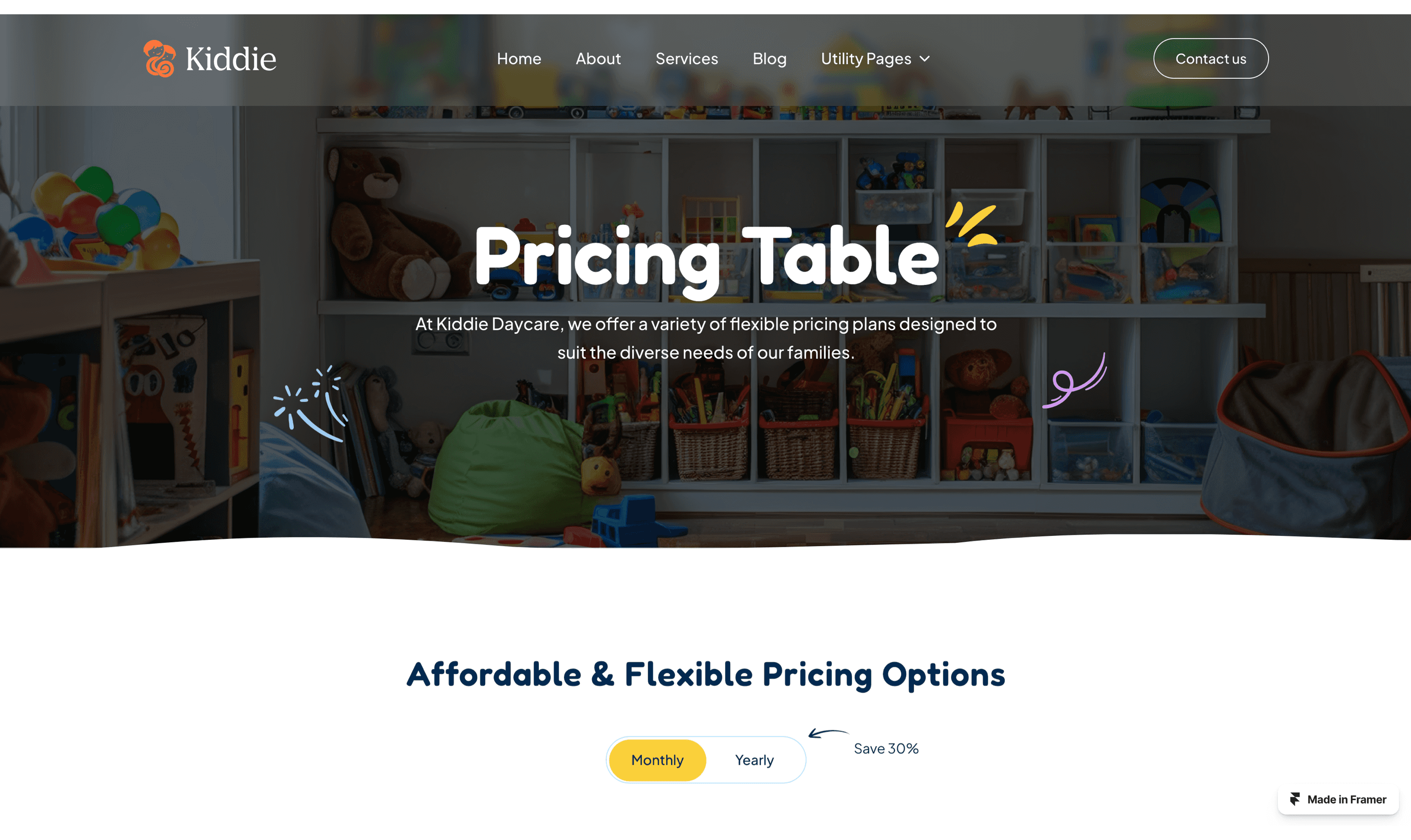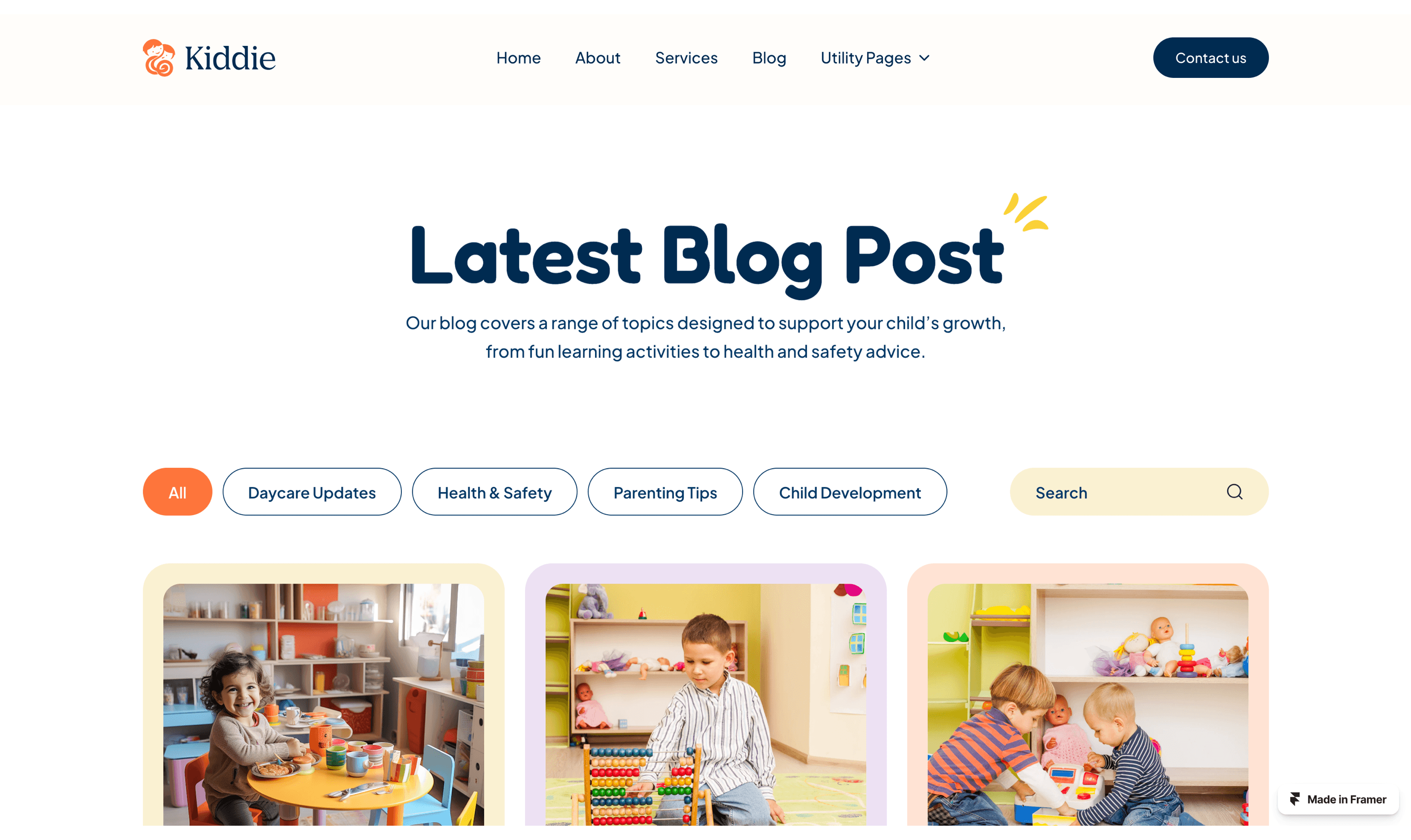 Kiddie is a lively and engaging Framer template designed for kindergartens, preschools, and child-focused organizations.