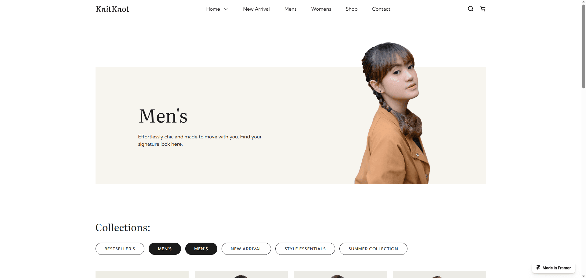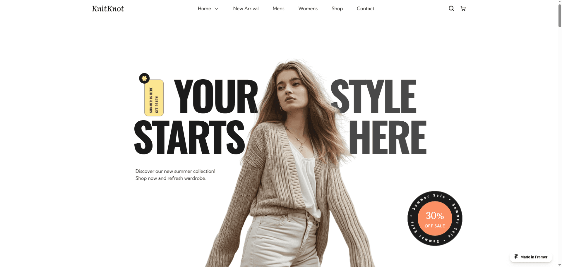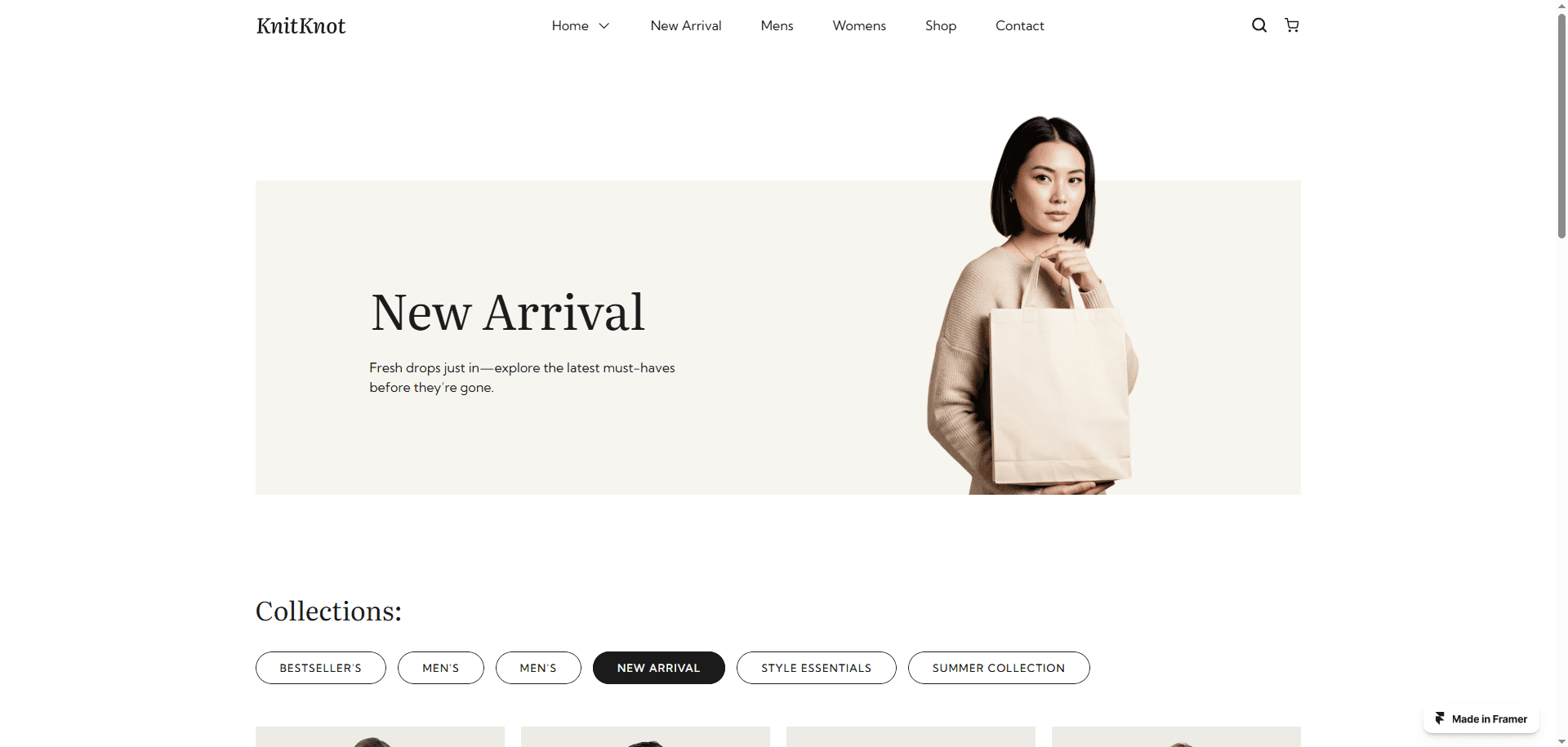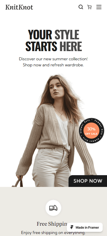 KnitKnot is a sleek eCommerce template built on Framer and powered by Shopify.