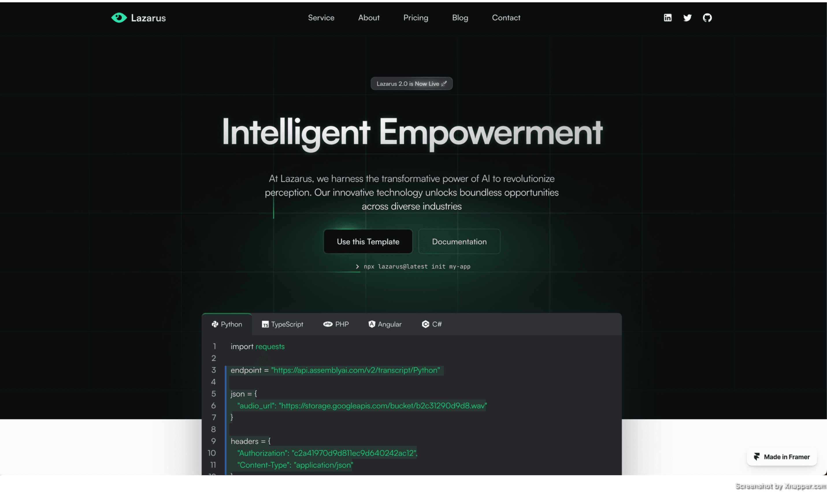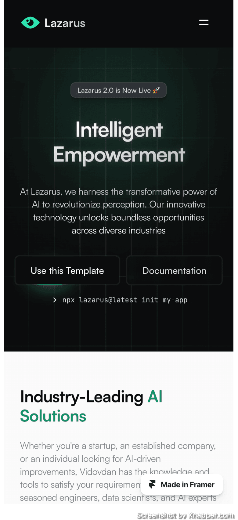 Lazarus is a premium template that's crafted with dedication and passion for startups and businesses at the forefront of AI innovation and Web Frameworks