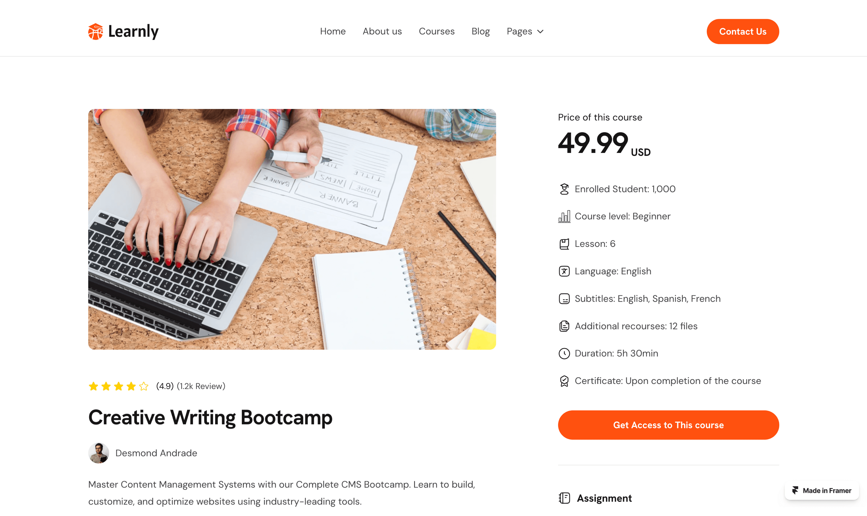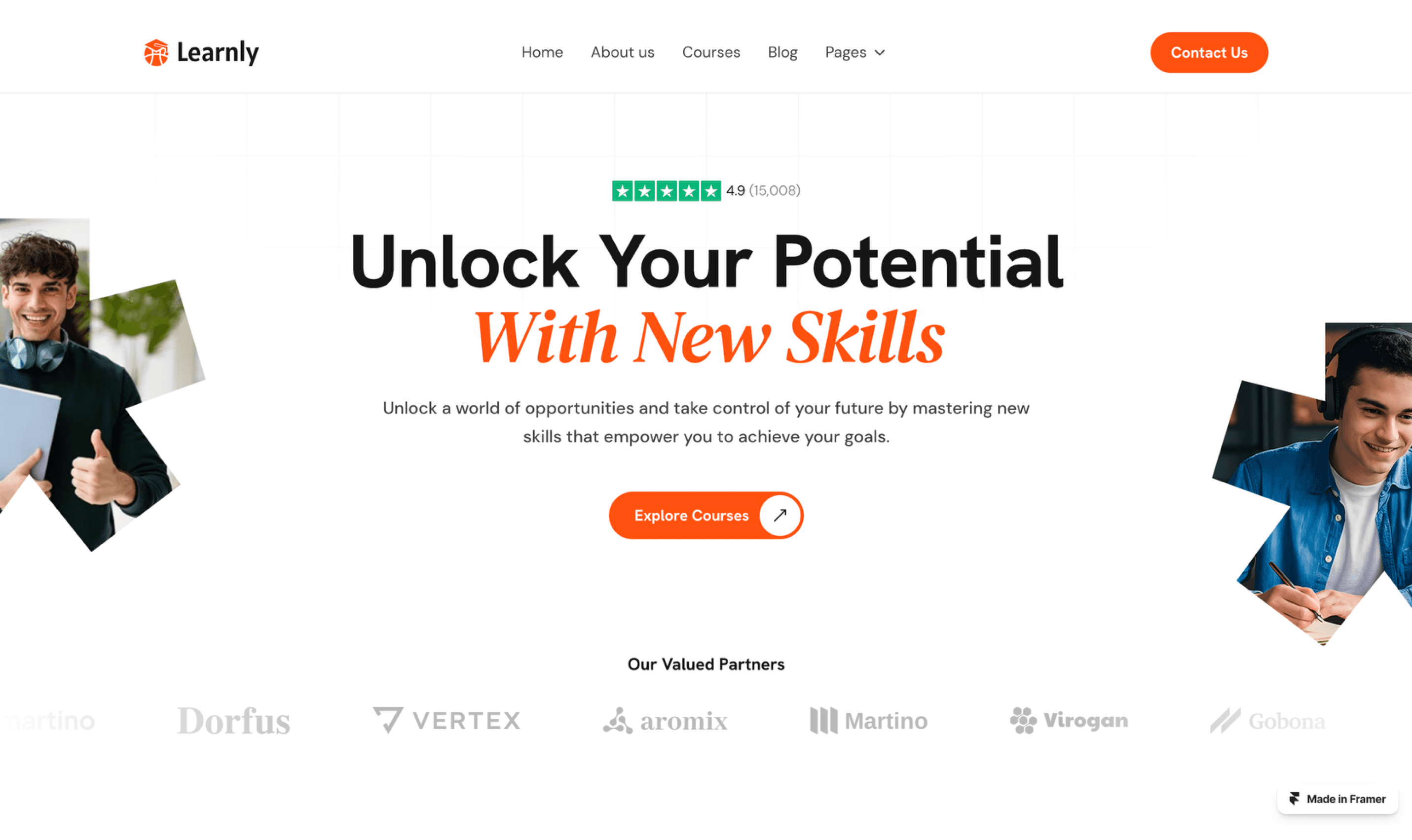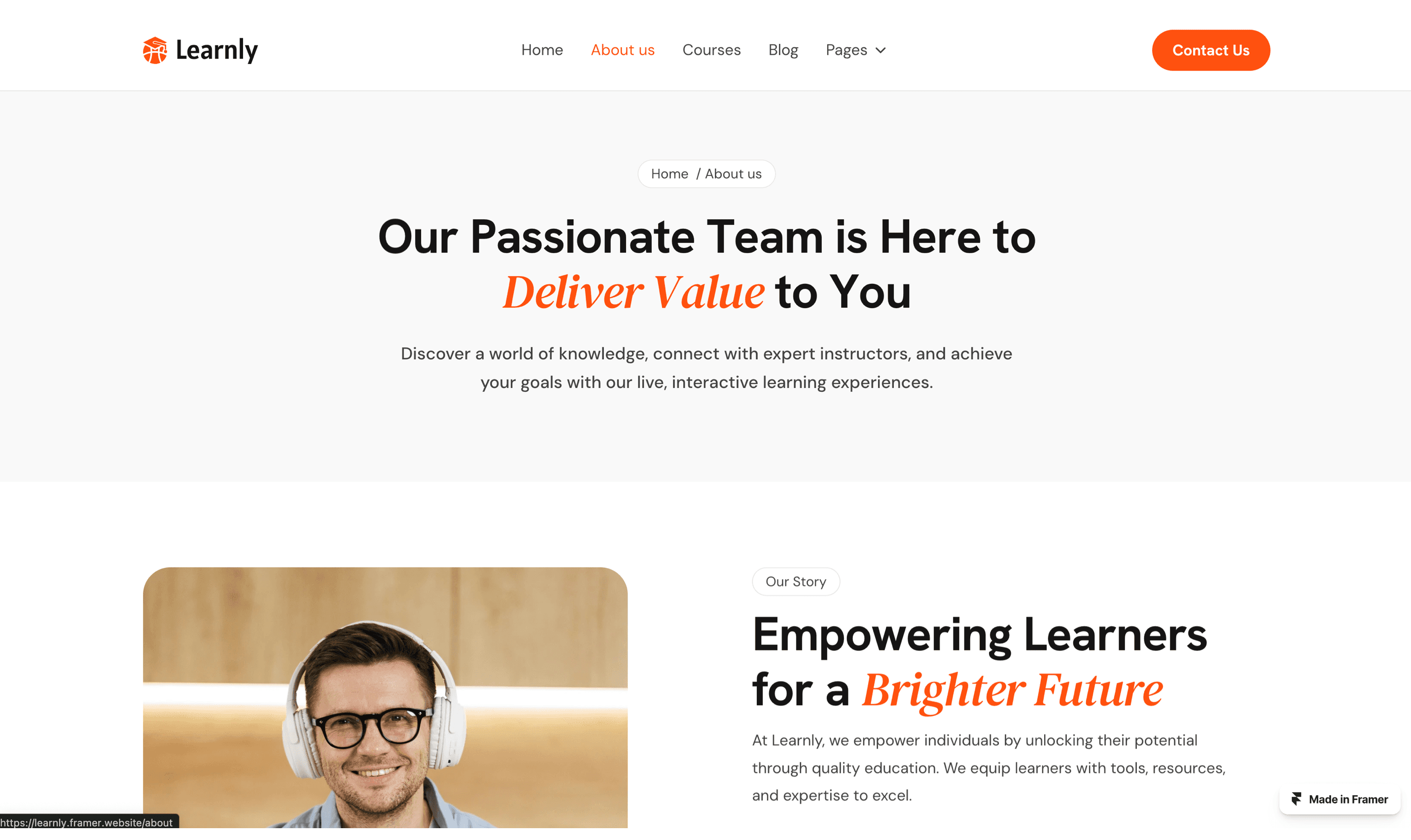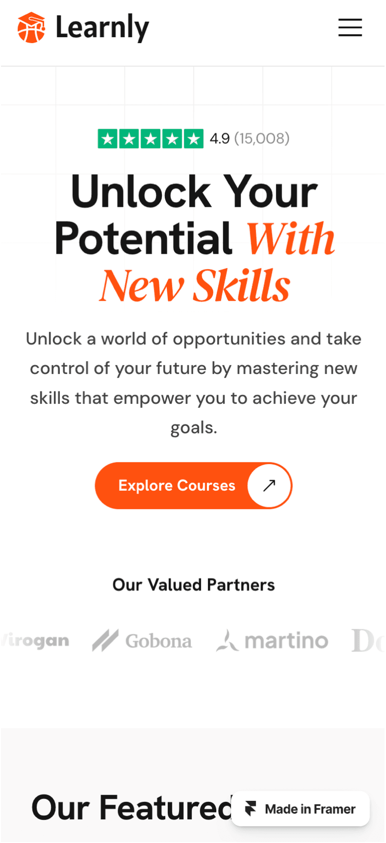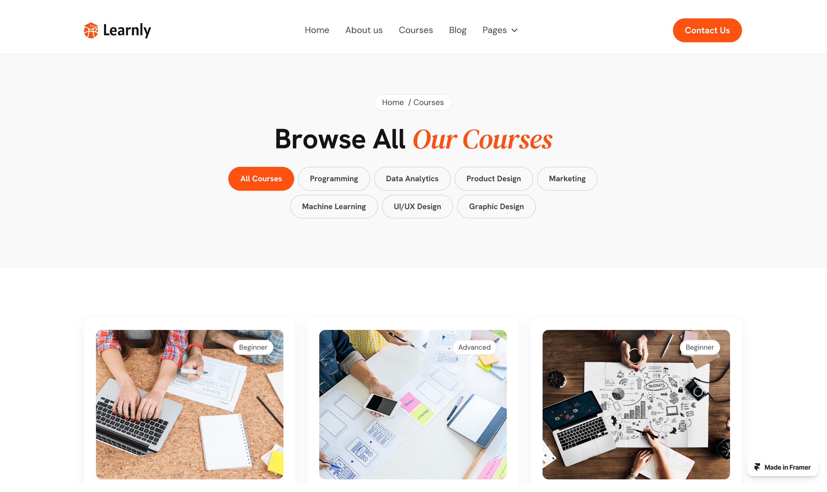 Learnly is a modern and responsive Framer template built for online courses, educators, and e-learning platforms.