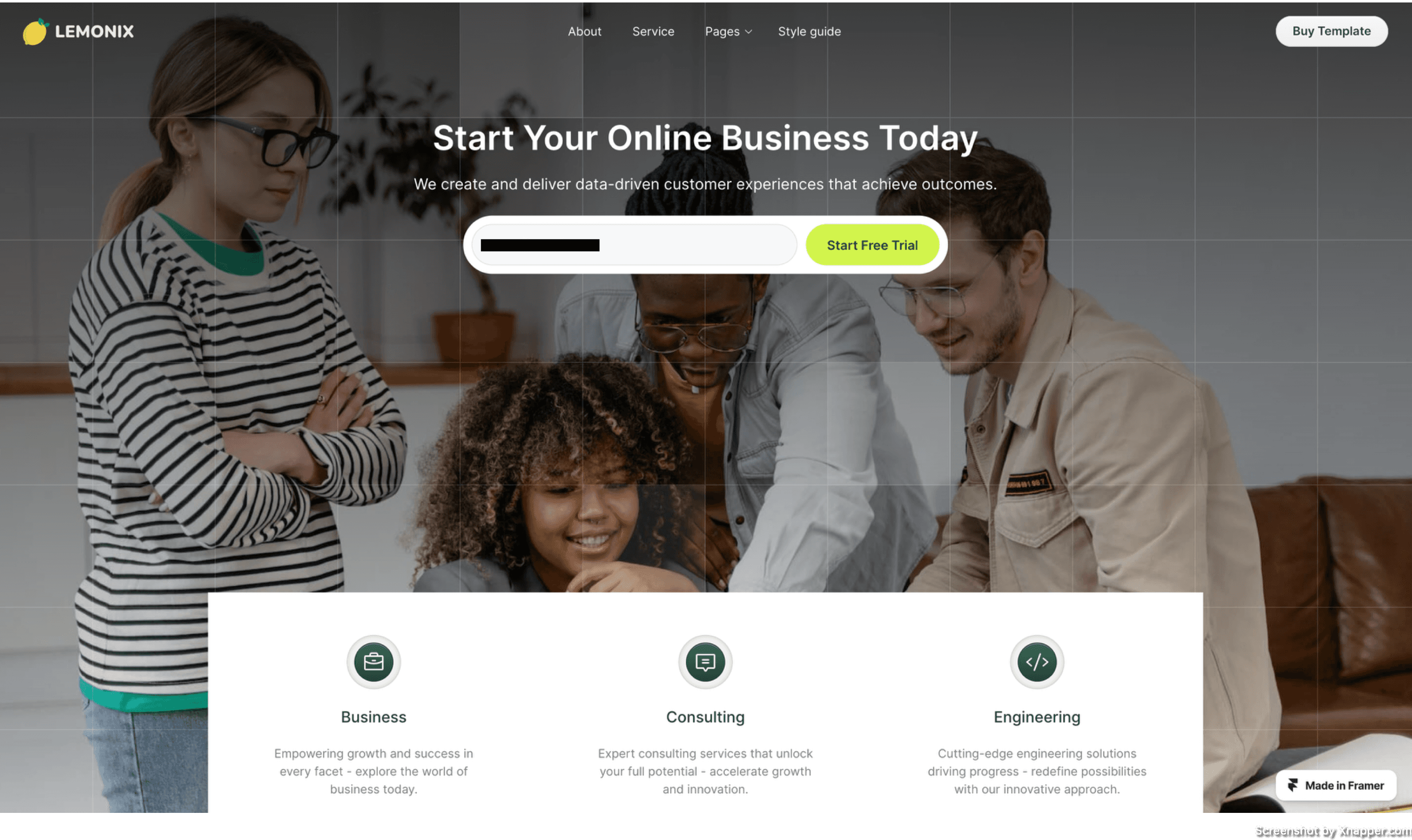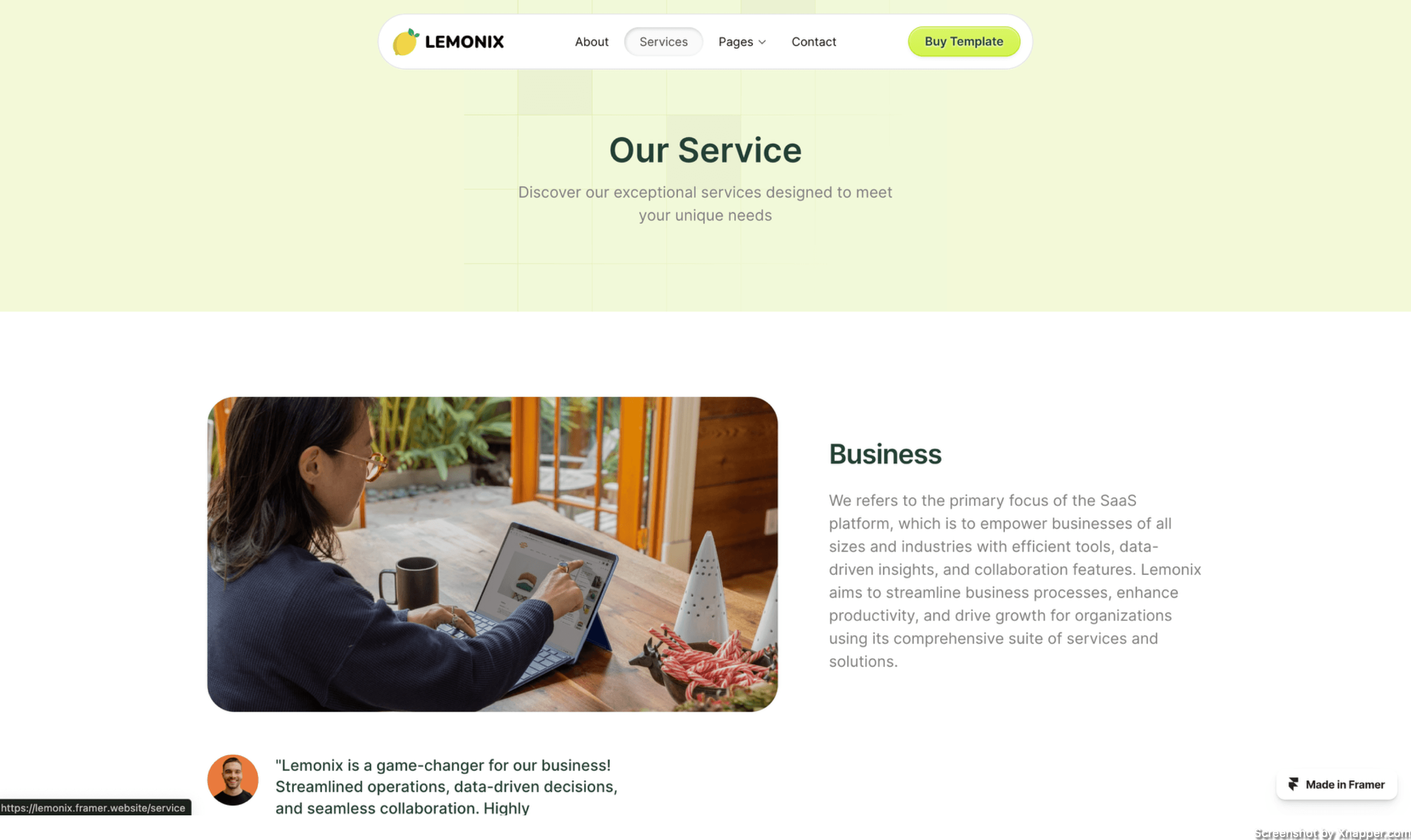 Squeeze the most out of your SaaS or startup website with Lemonix, a refreshing Framer template.