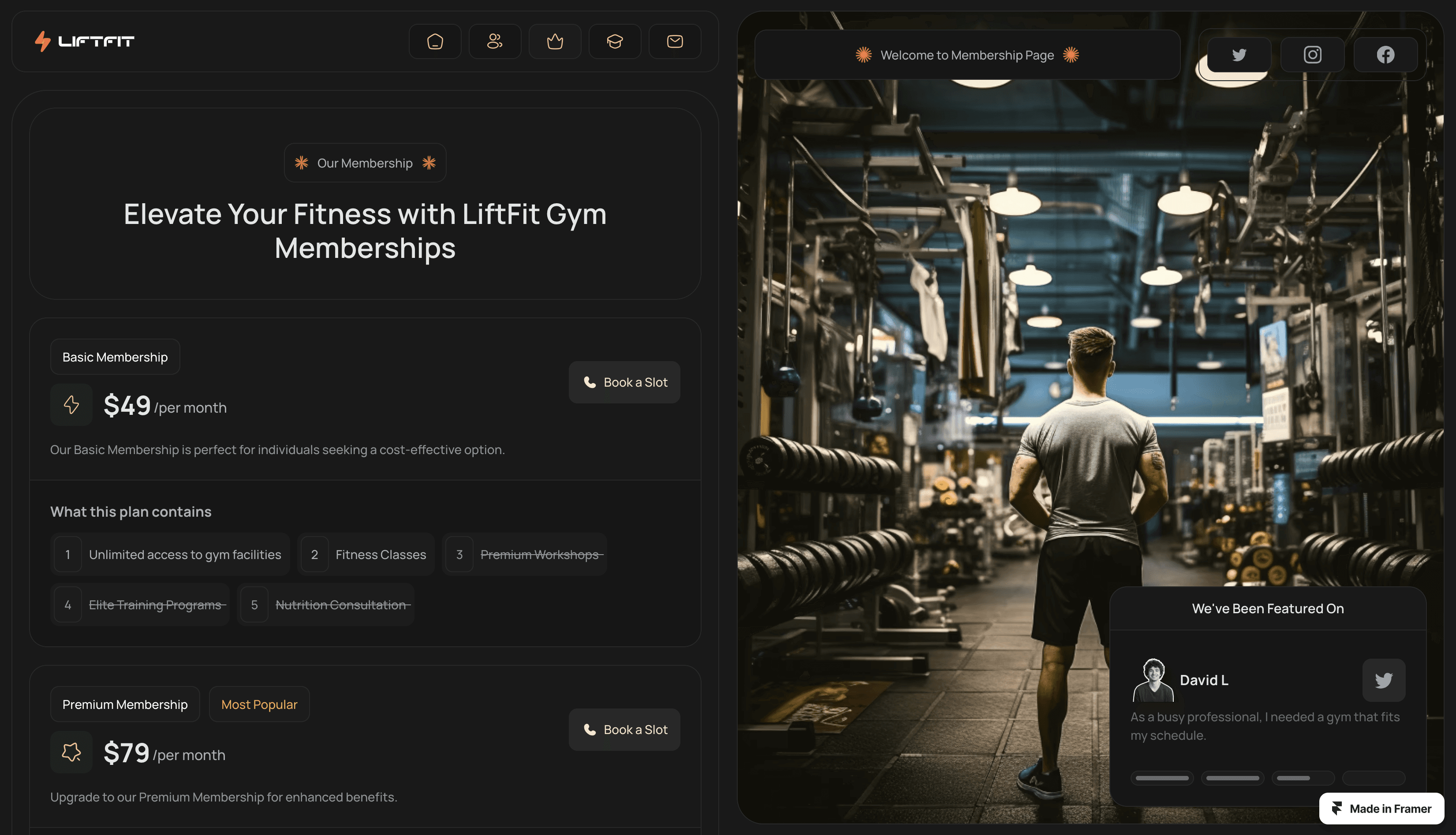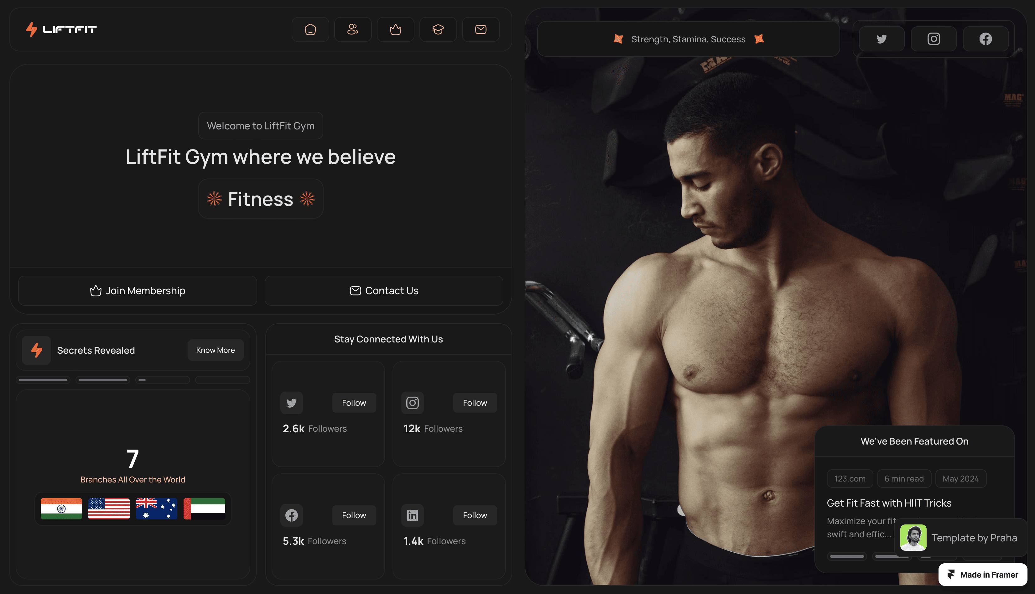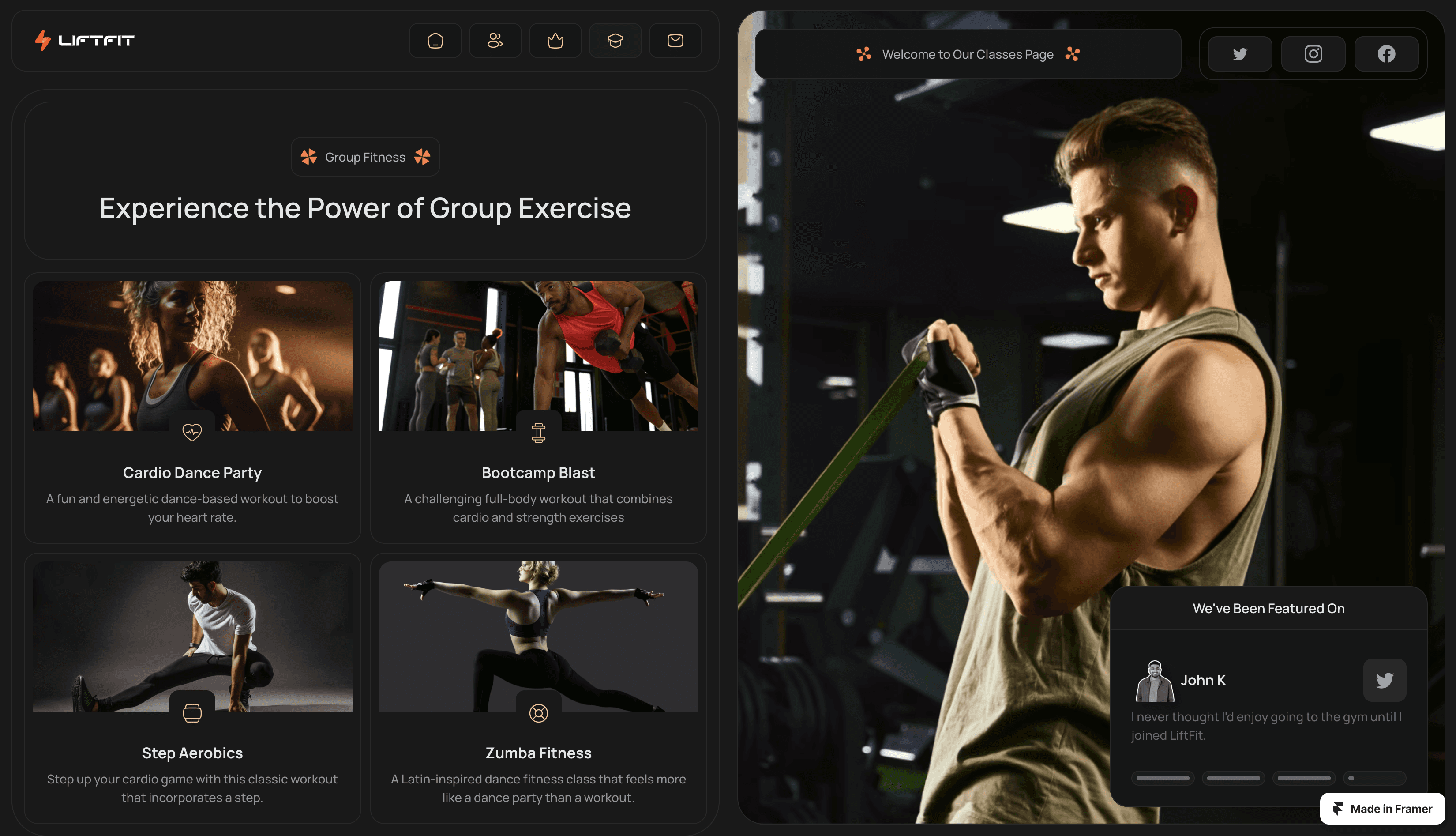Introducing LiftFit: the ultimate GYM and portfolio website template. Showcase facilities, classes, and memberships effortlessly.