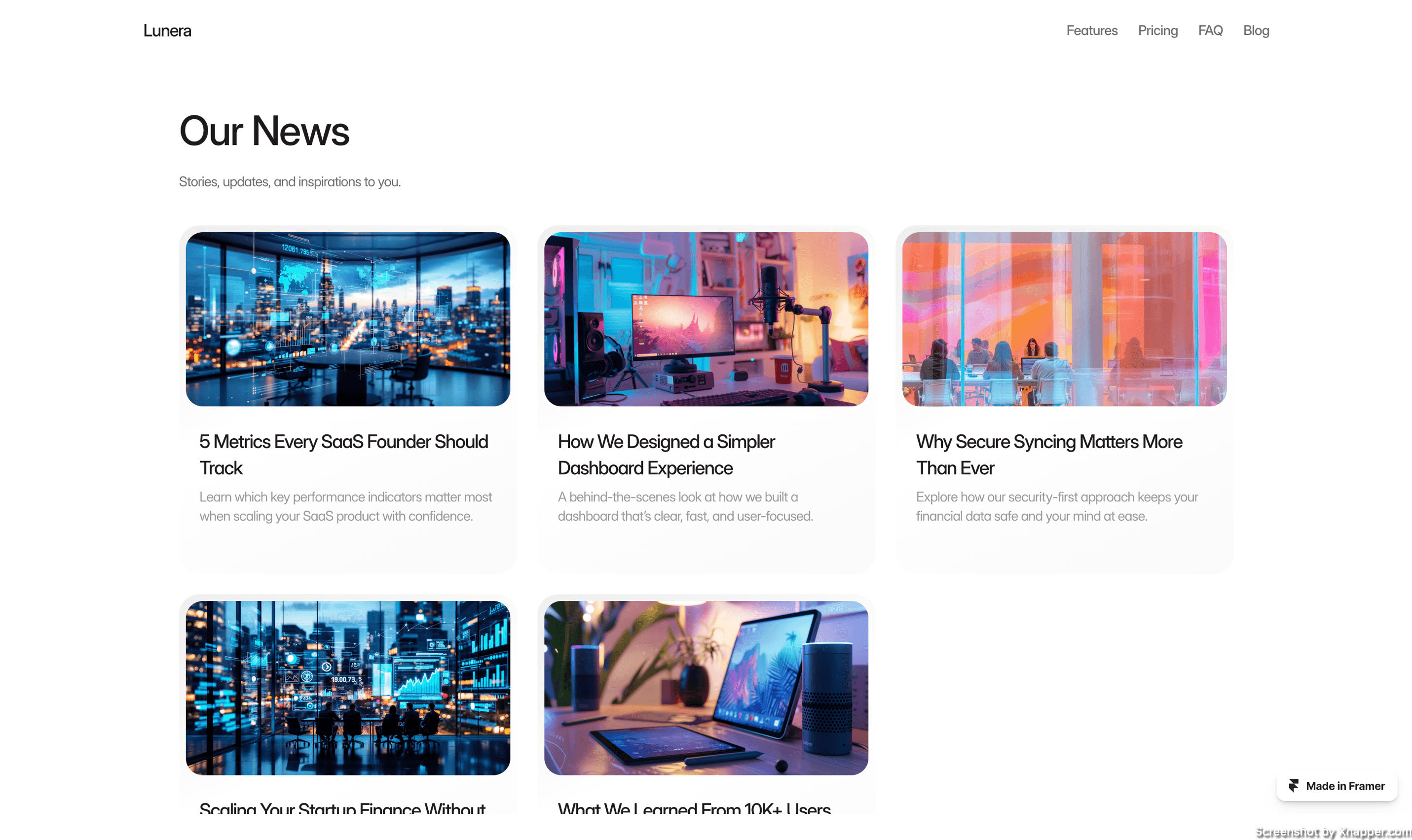 Lunera is a modern SaaS landing page template designed for startups ready to scale.
