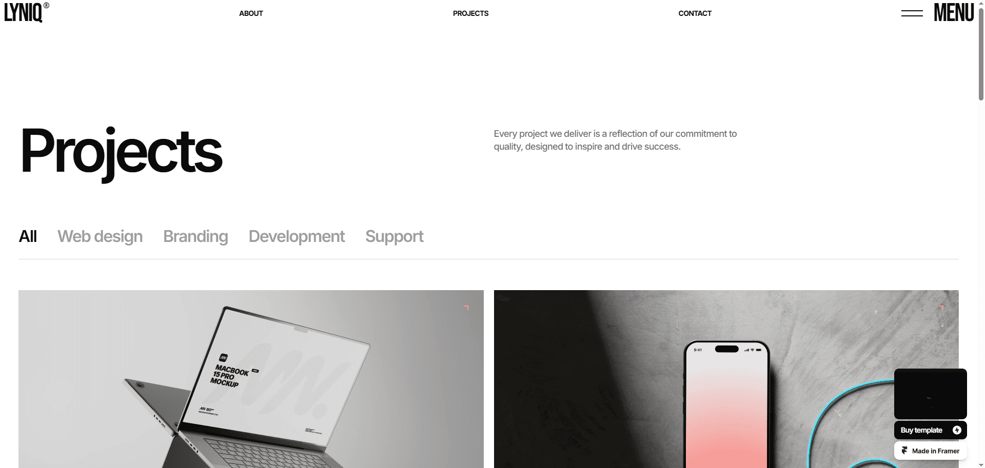 LYNIQ© is a professional website Framer template for design studios looking to showcase their expertise, attract clients, and scale effortlessly.