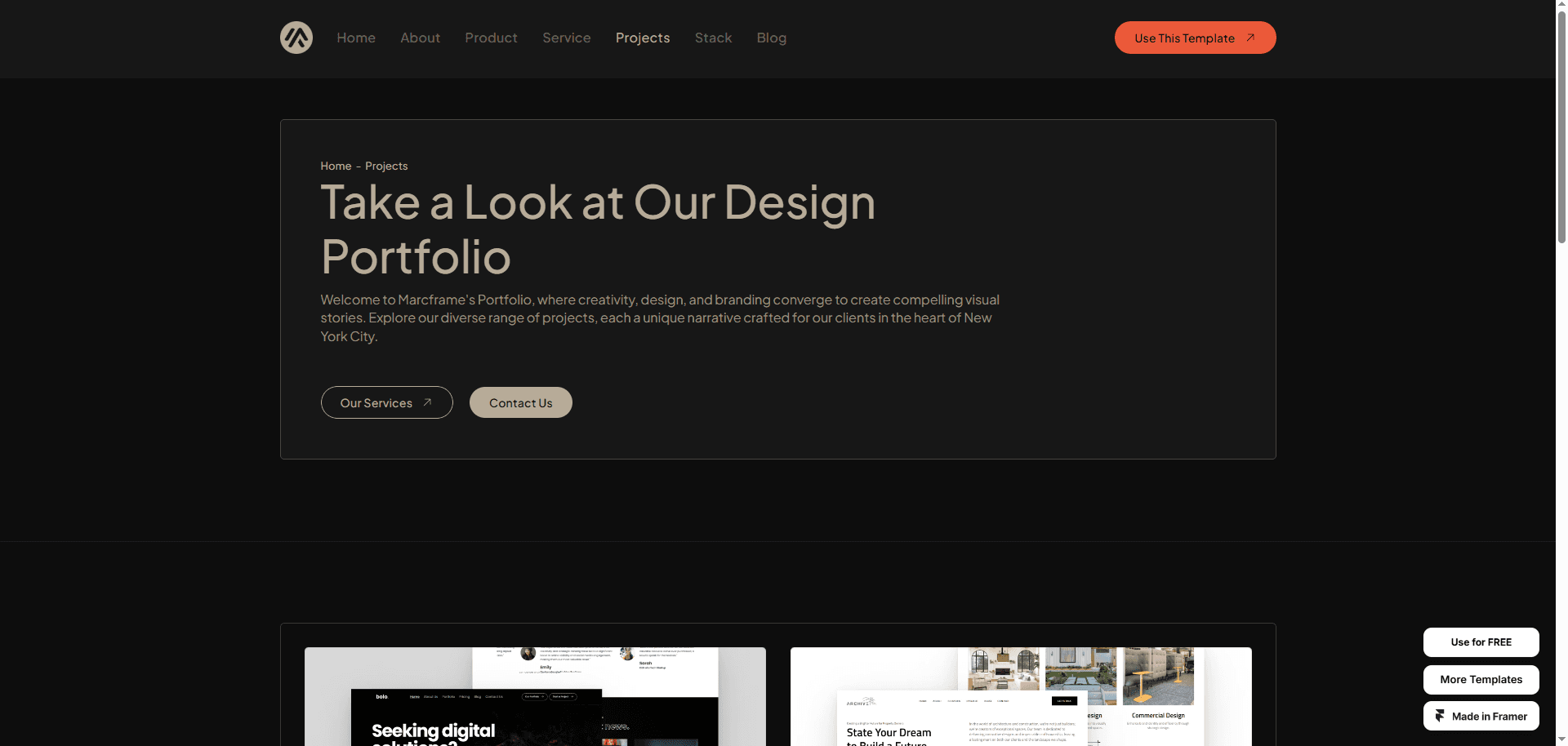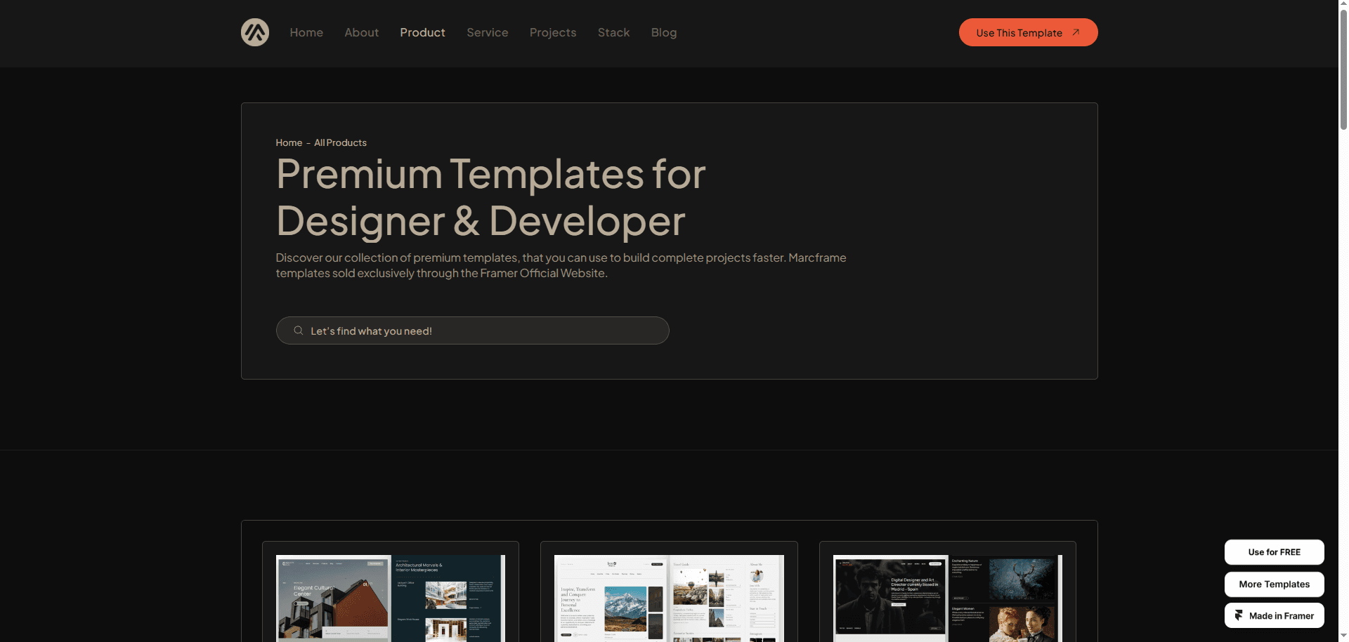 Marcframe is designed to effortlessly showcase your projects, templates, and digital projects you want to sell.