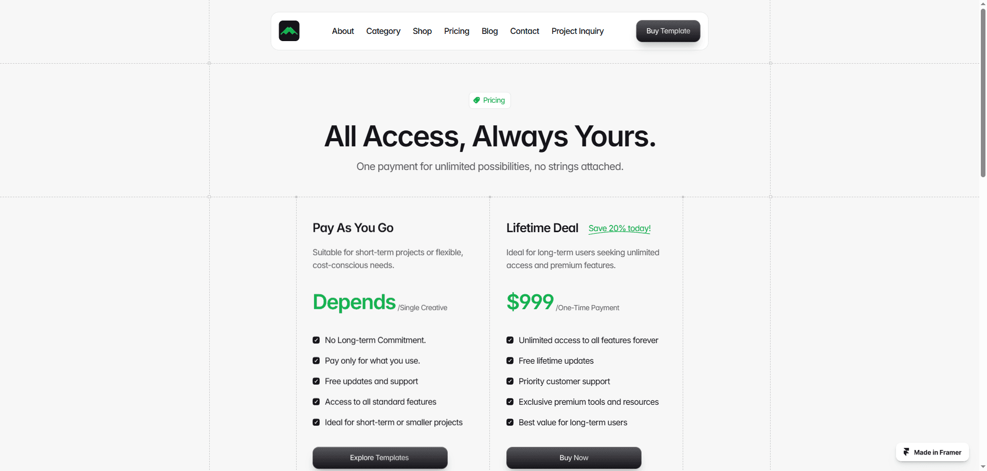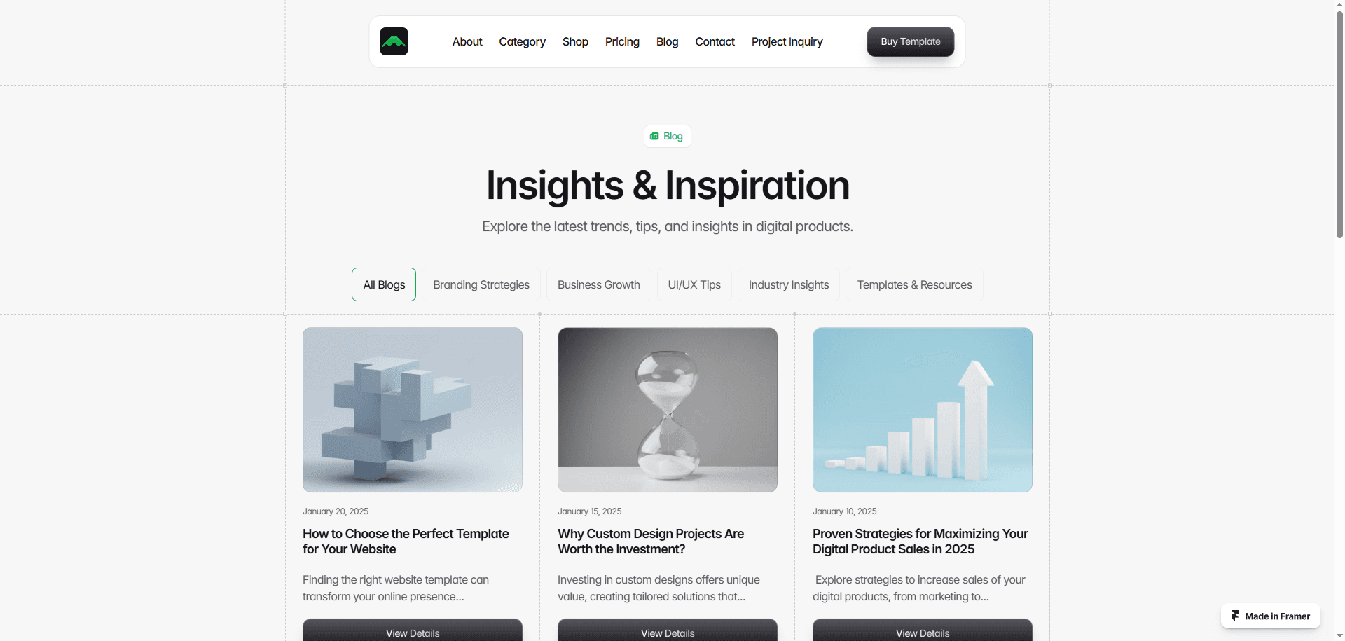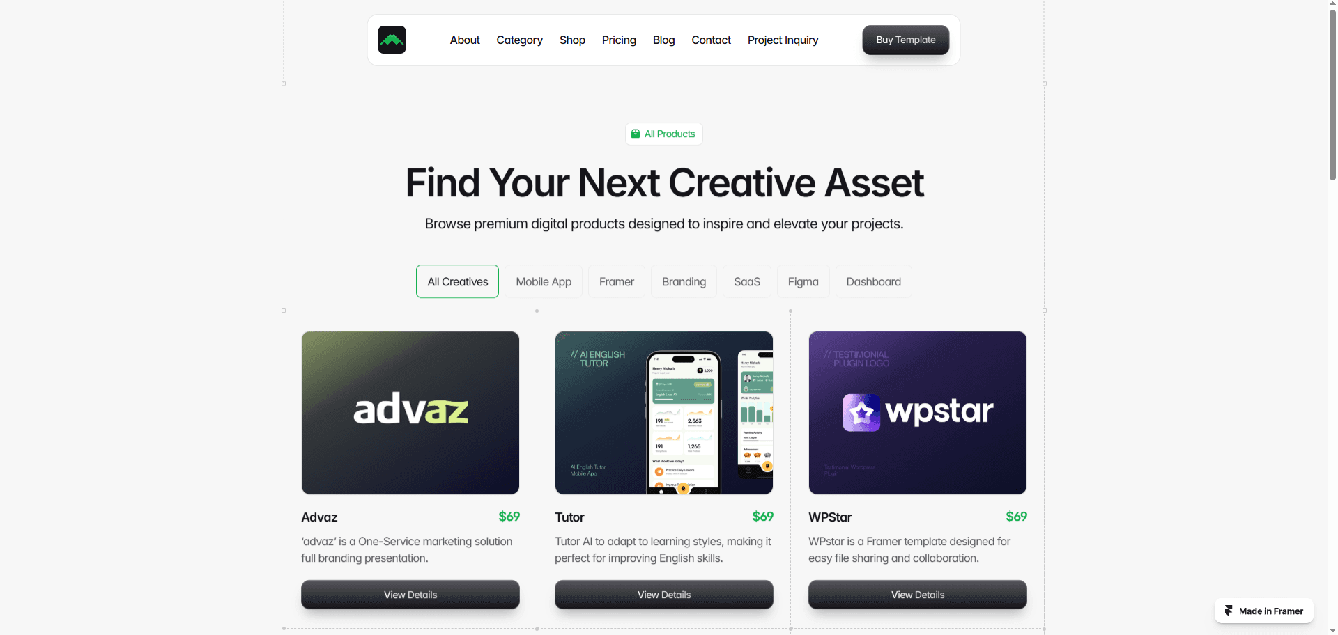 Markify is a sleek and powerful Framer template built for digital marketplaces. With a modern design, smooth navigation, and essential pages like pricing, category, shop, blog, and project inquiry, it’s perfect for selling digital products with ease.