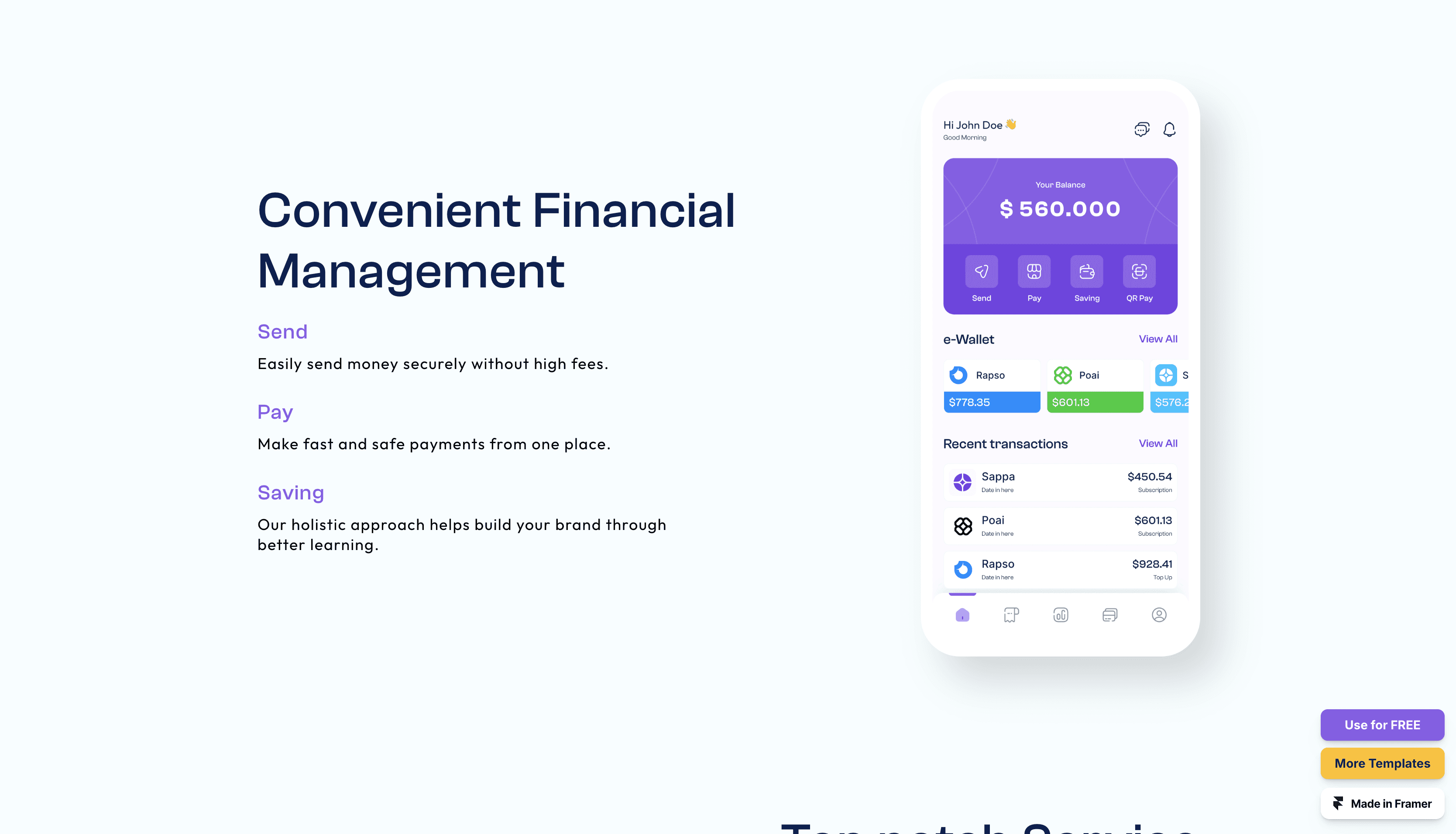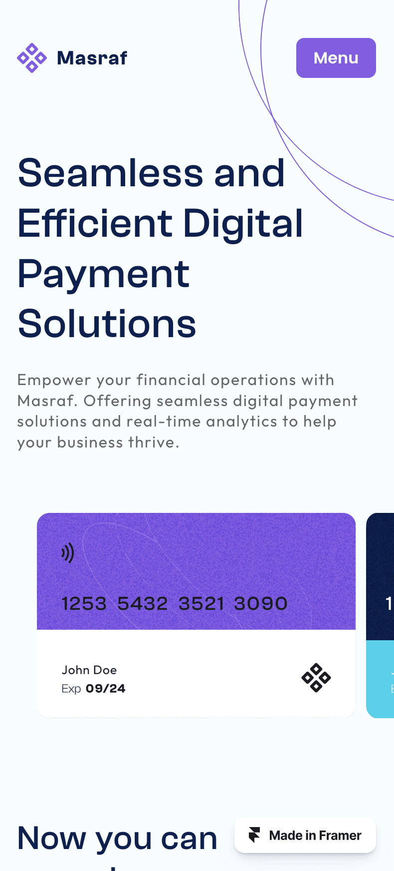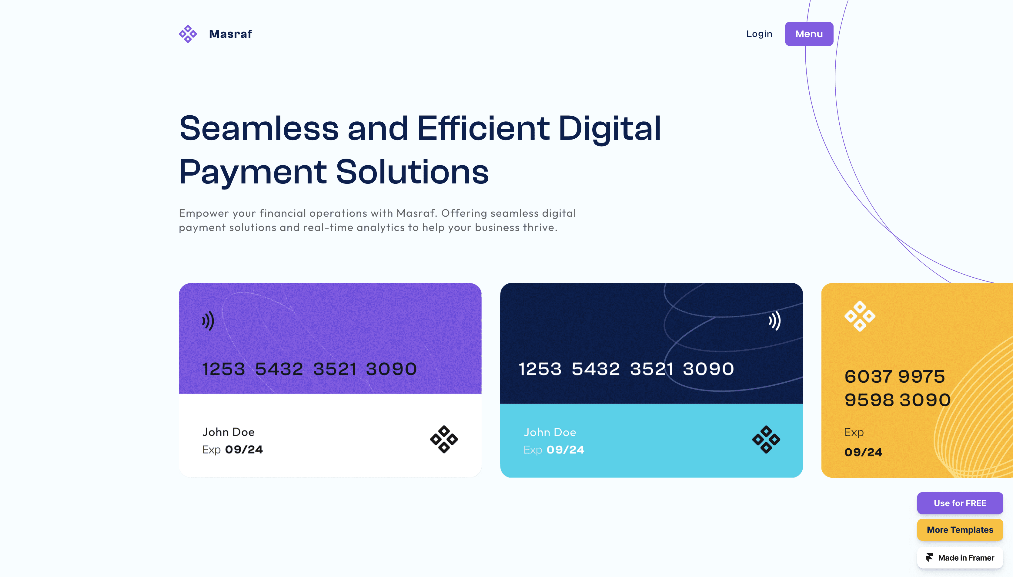 Masraf - A sleek and modern Framer template designed for SaaS solutions, offering a stylish and user-friendly layout that helps your platform stand out and engage users effectively.