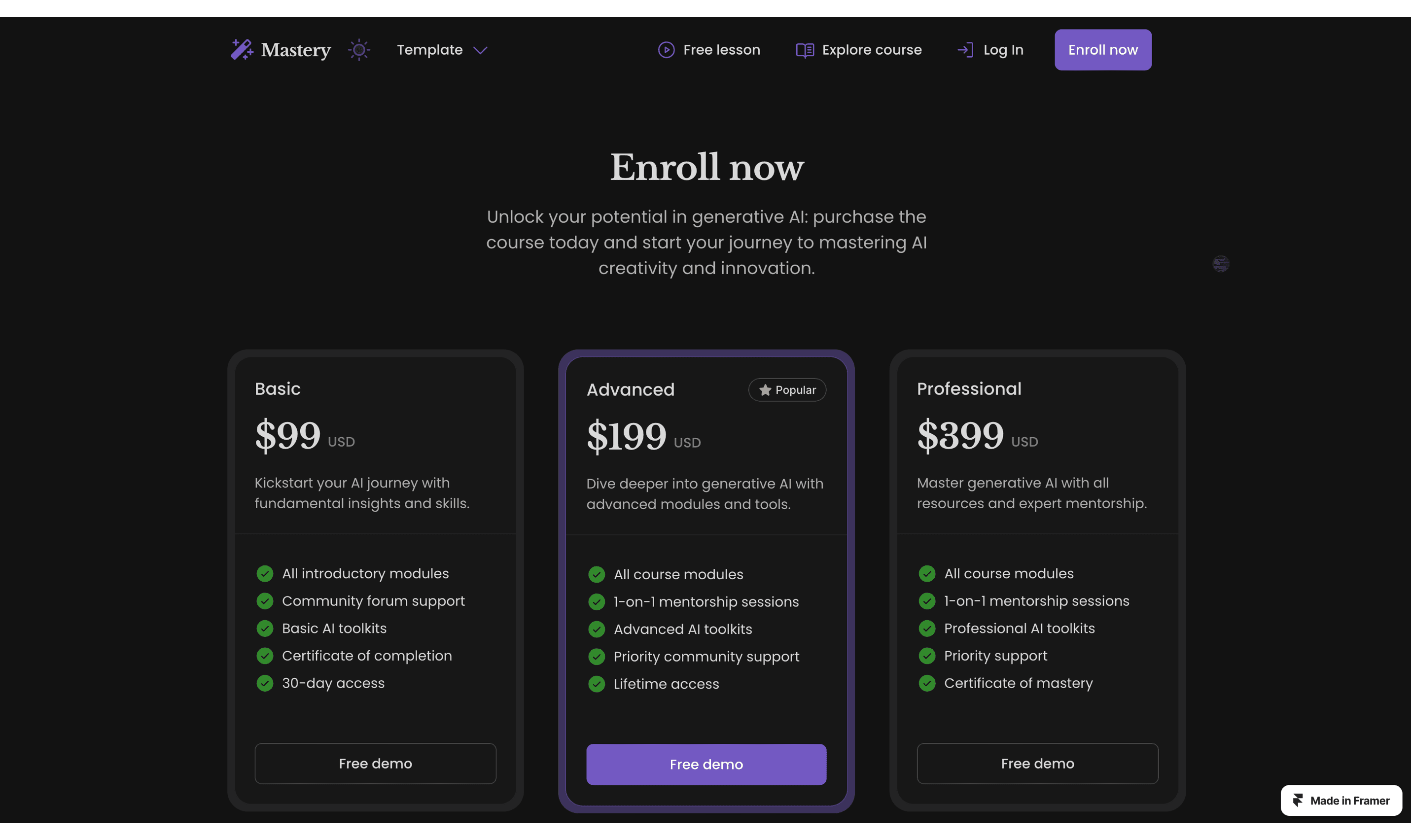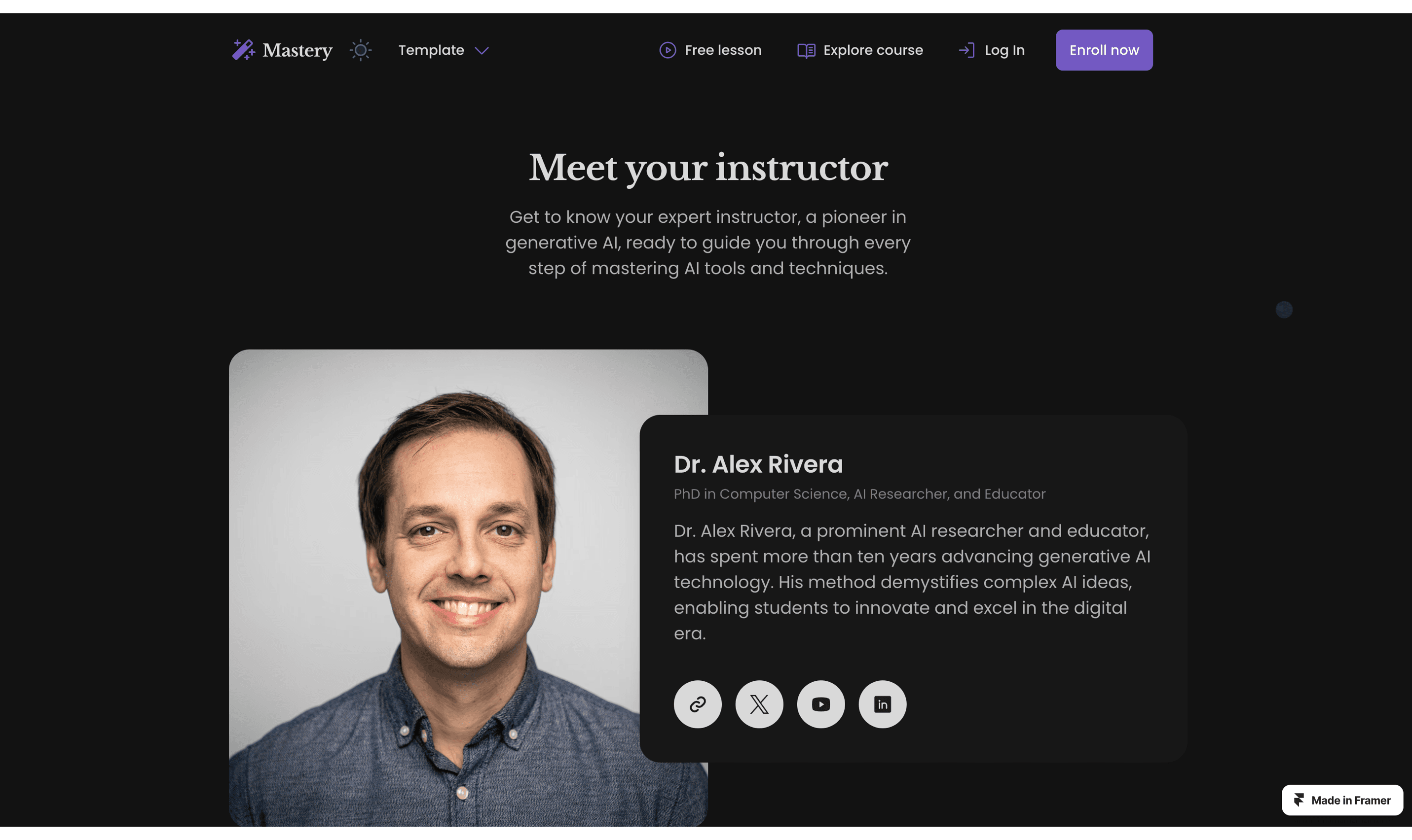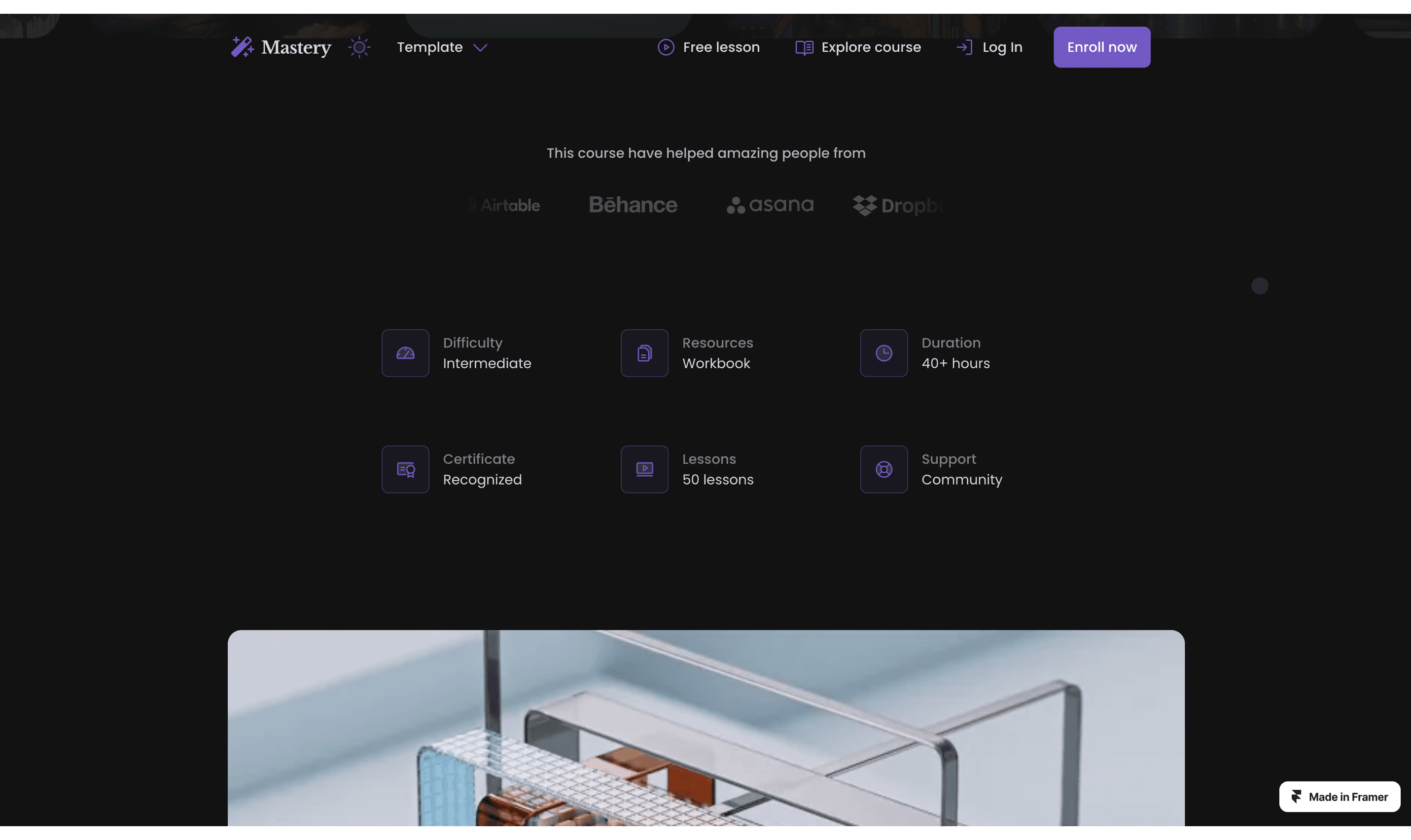 Promote and host your online course with the Mastery template for Framer. Collect payments with Lemon Squeezy and protect course content with FramerAuth.