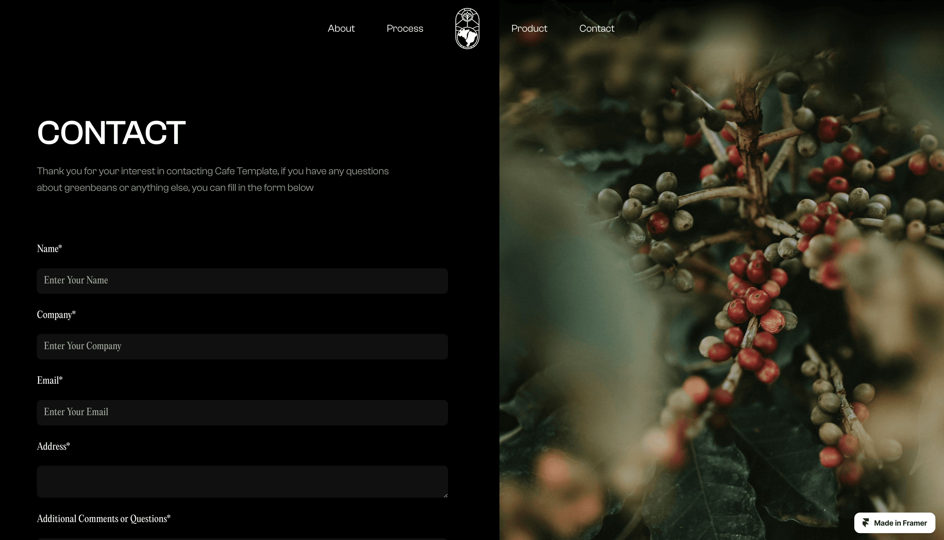 Capture your coffee farm's essence with our Framer template—featuring seamless CMS integration for managing items and responsive design for a flawless experience on any device