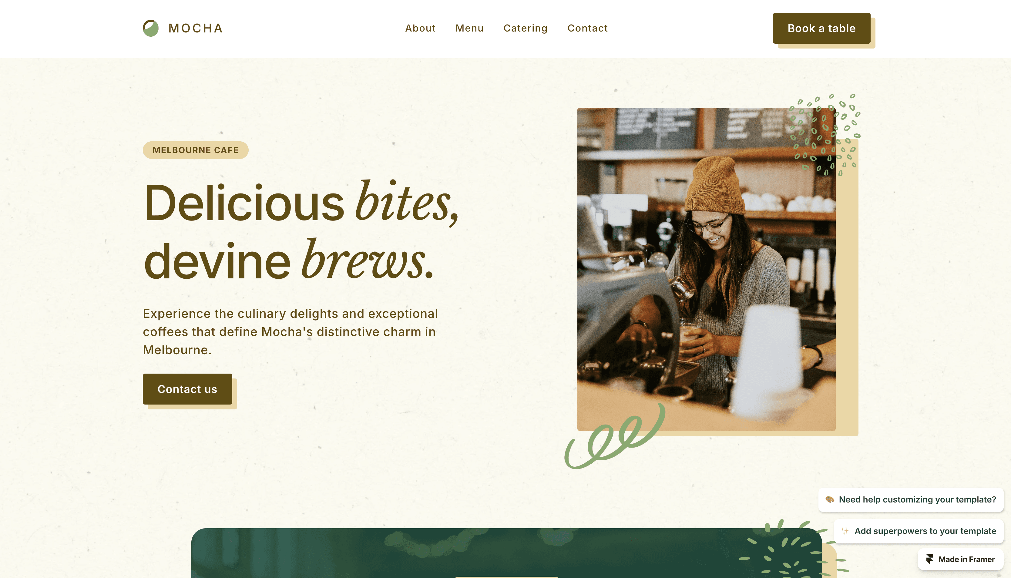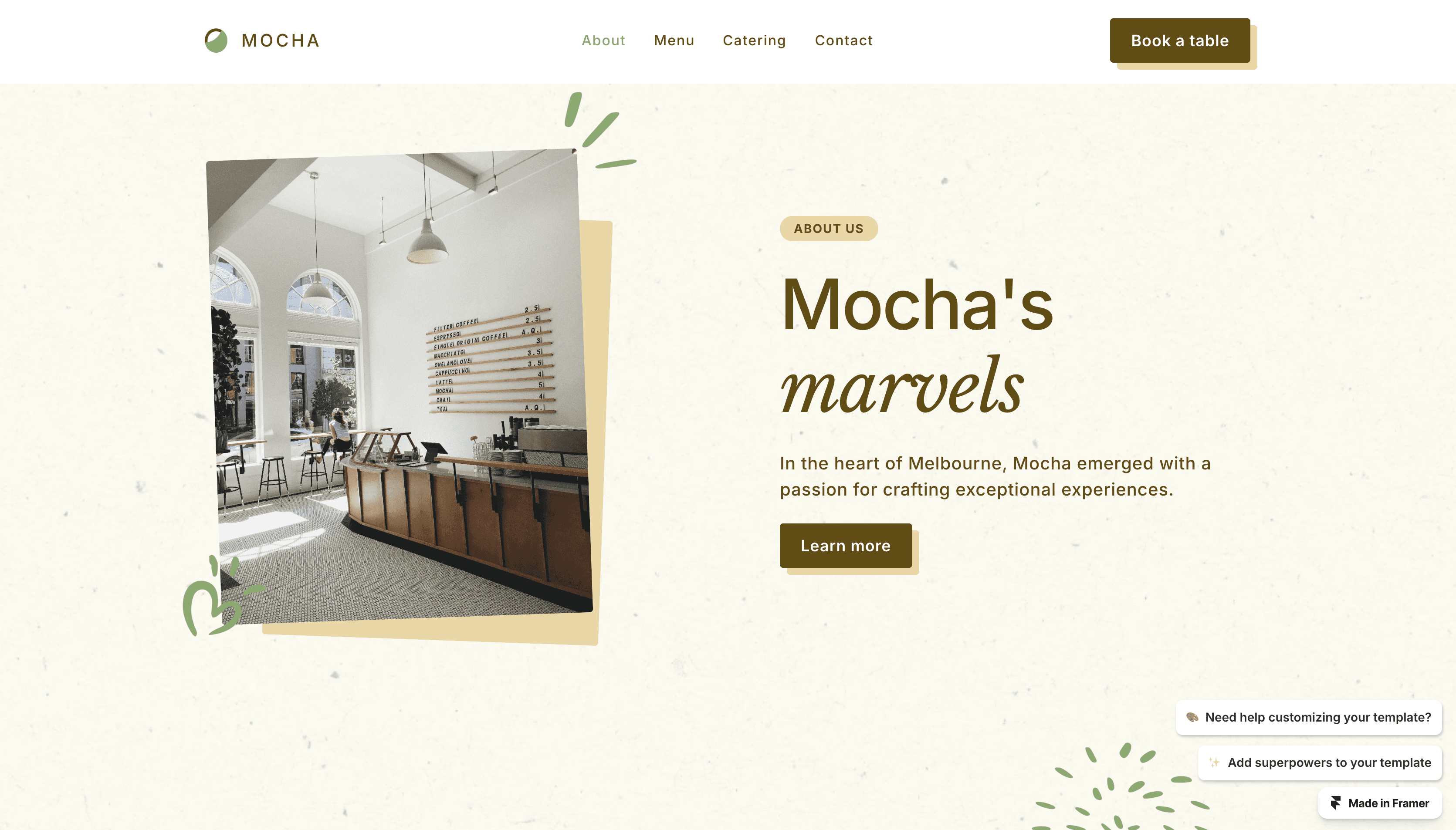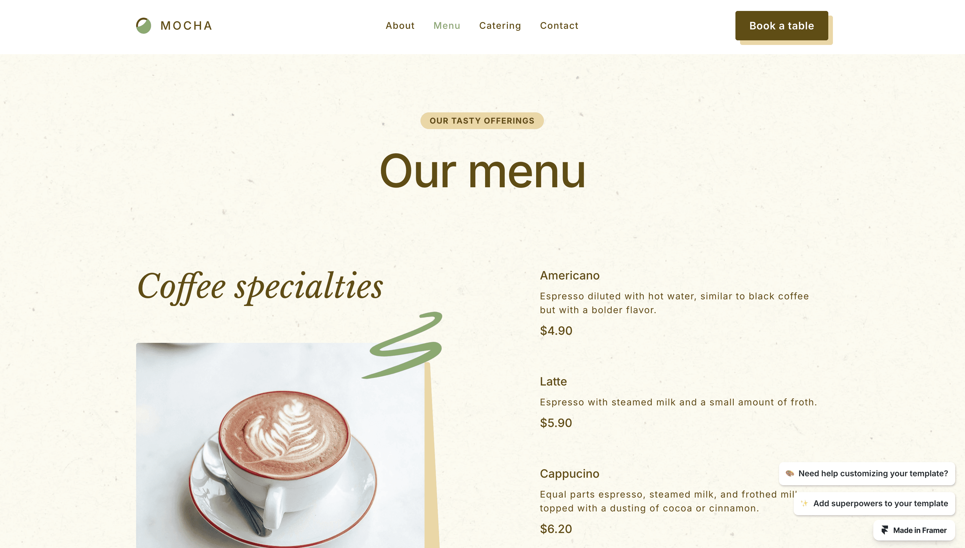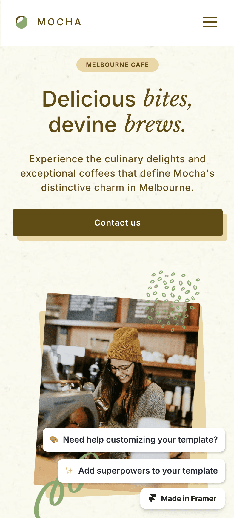 Mocha is a delightful and user-friendly Framer template for cafes.