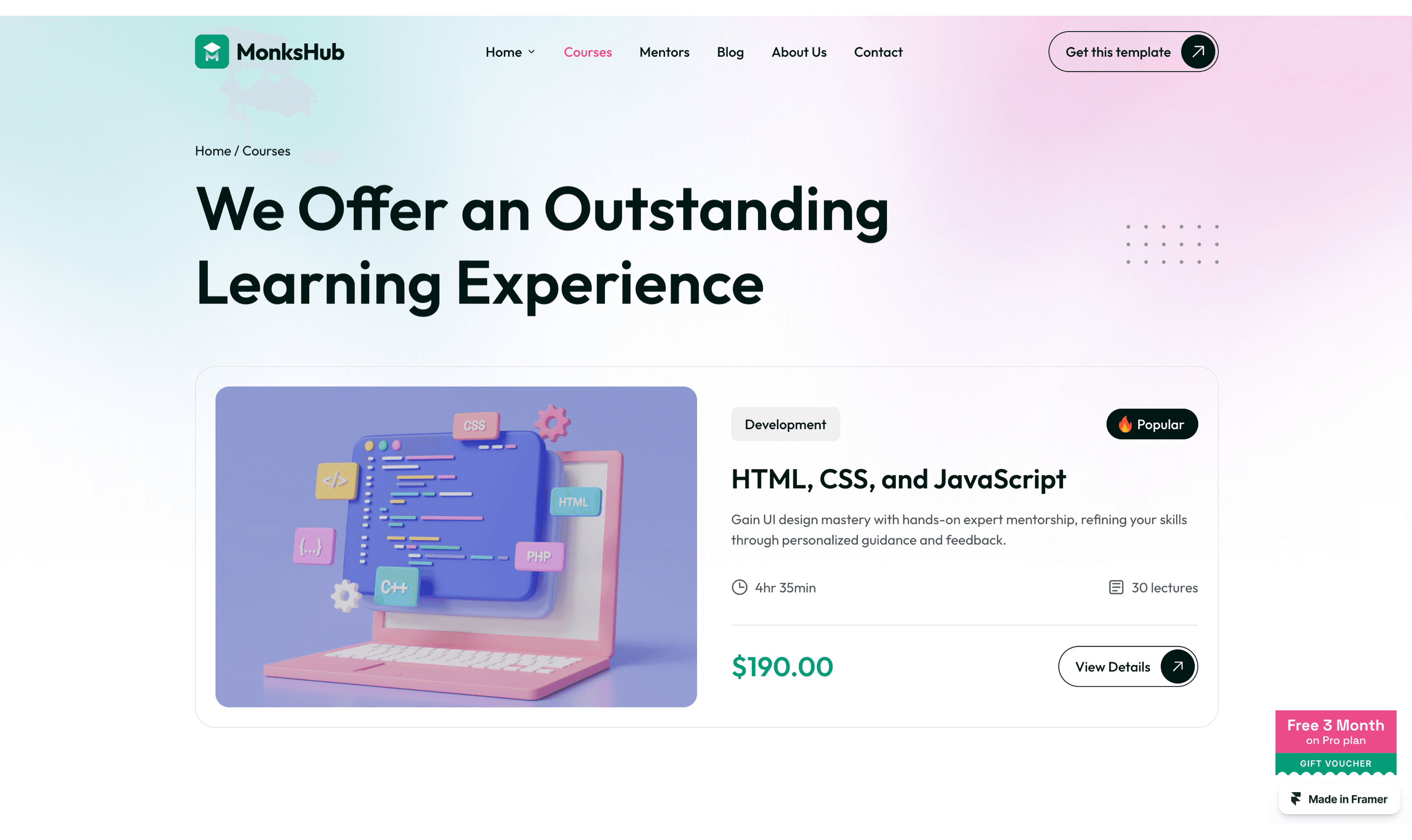 MonkHub Pro is a purpose-built template for online education platforms that want to deliver engaging and high-quality learning experiences.