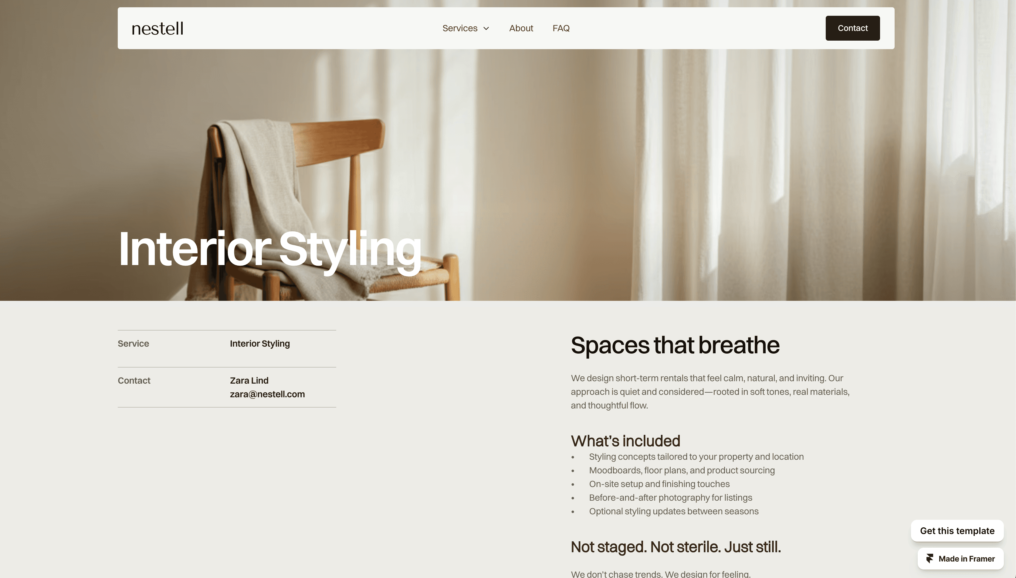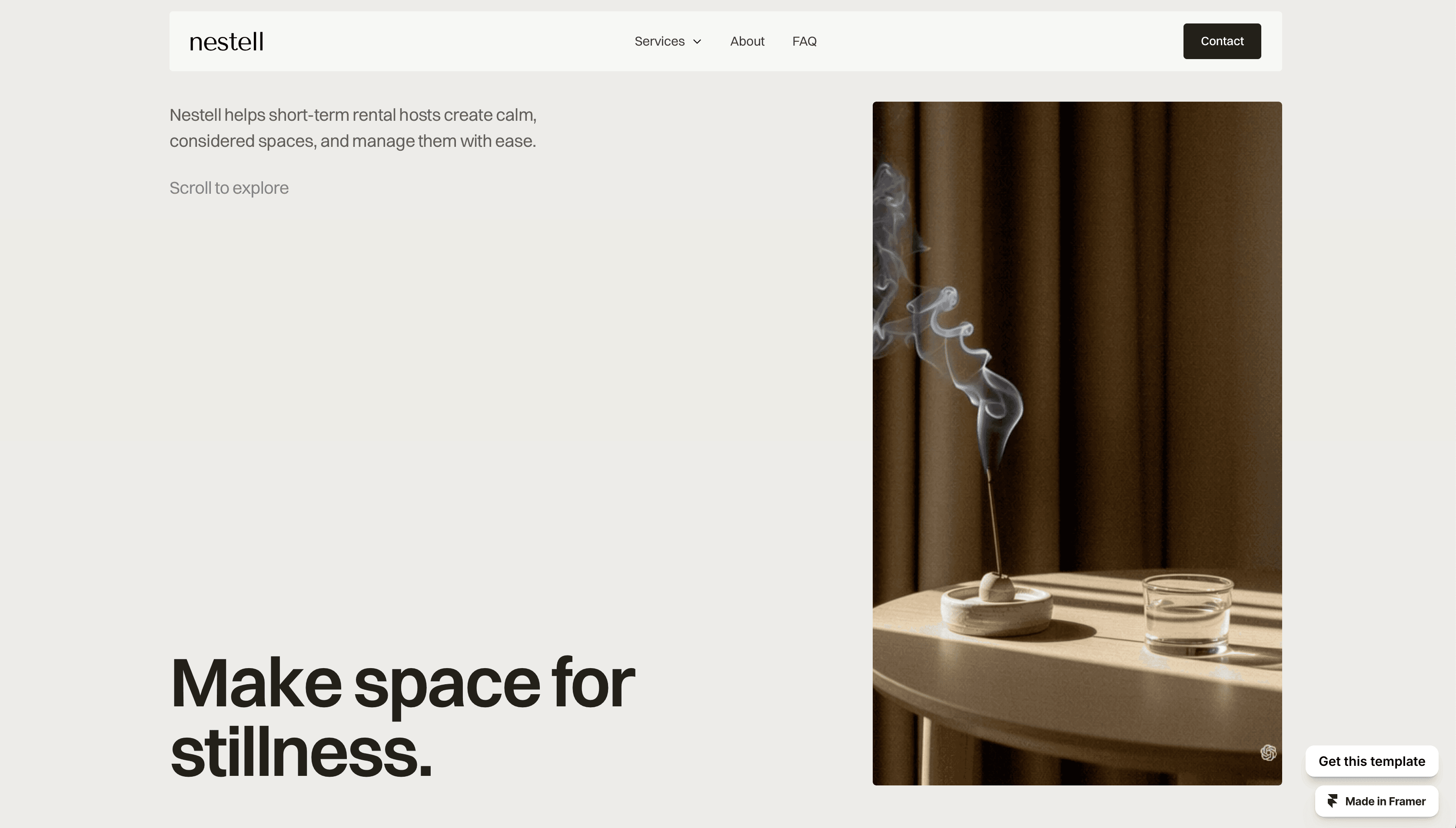 Nestell is a clean, flexible template with plenty of whitespace and a calm layout.