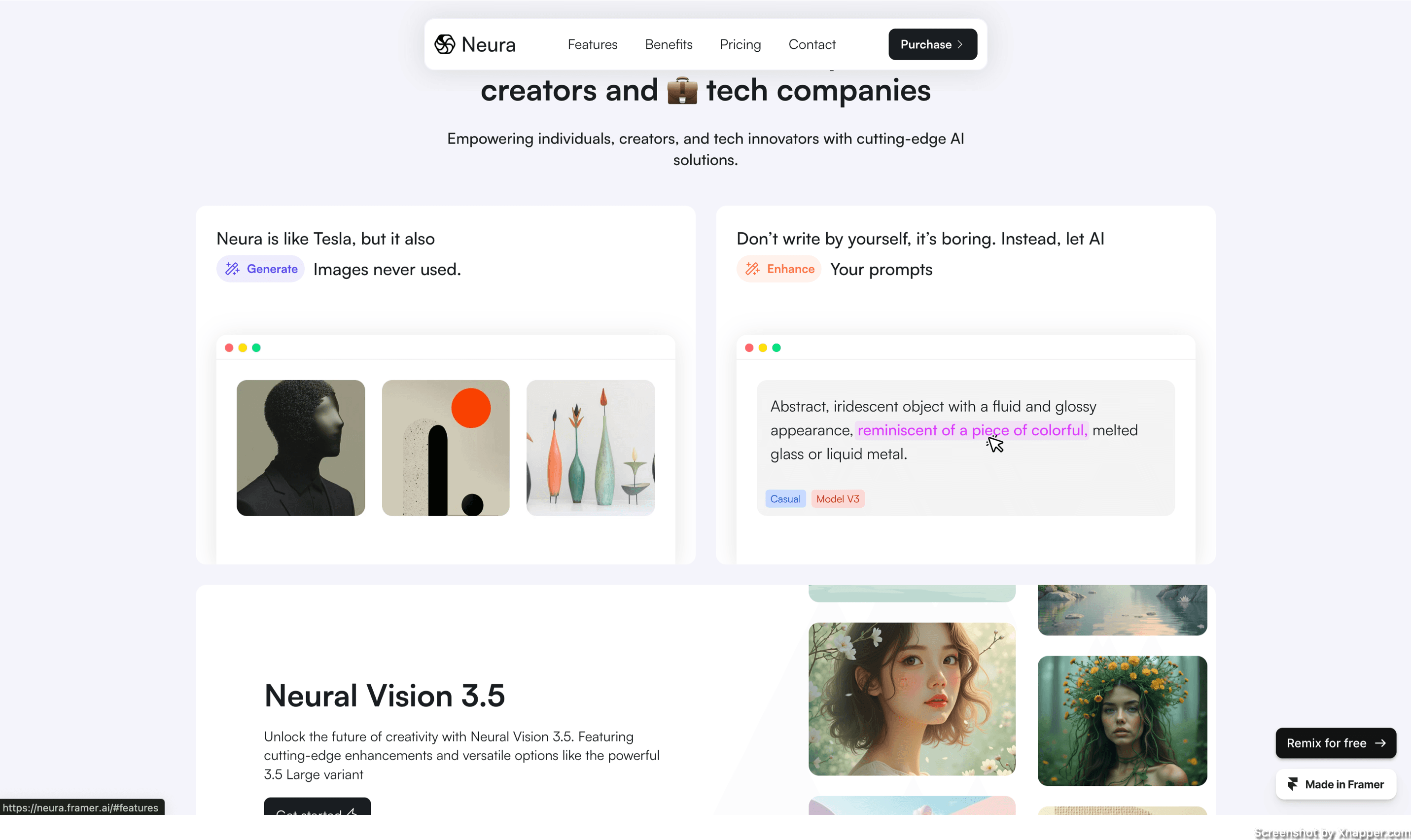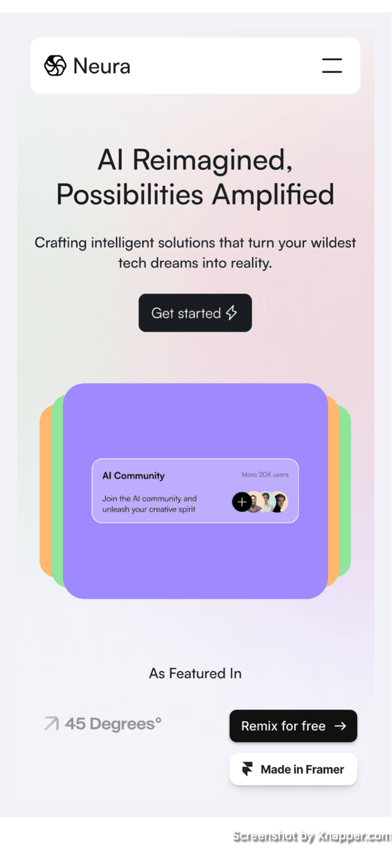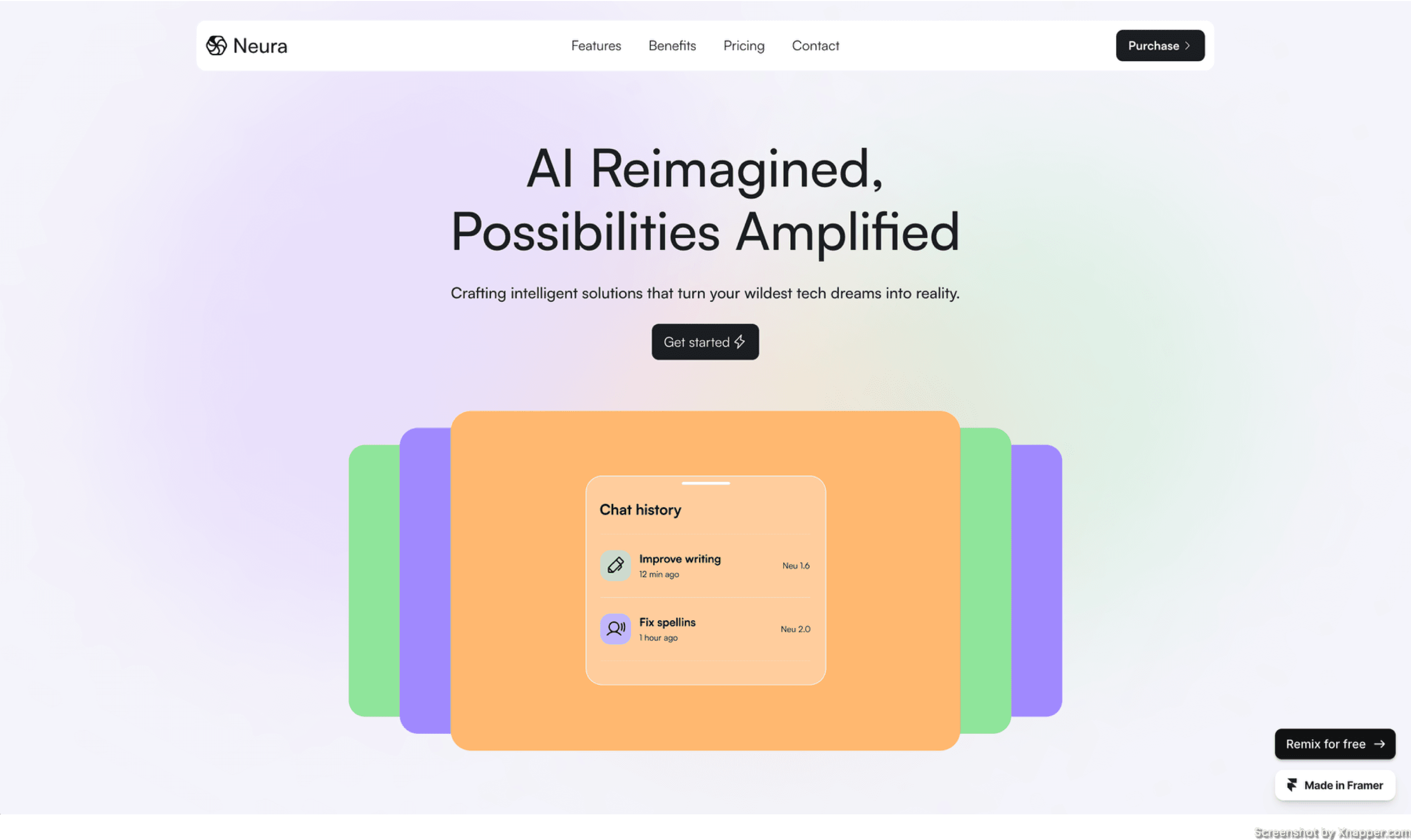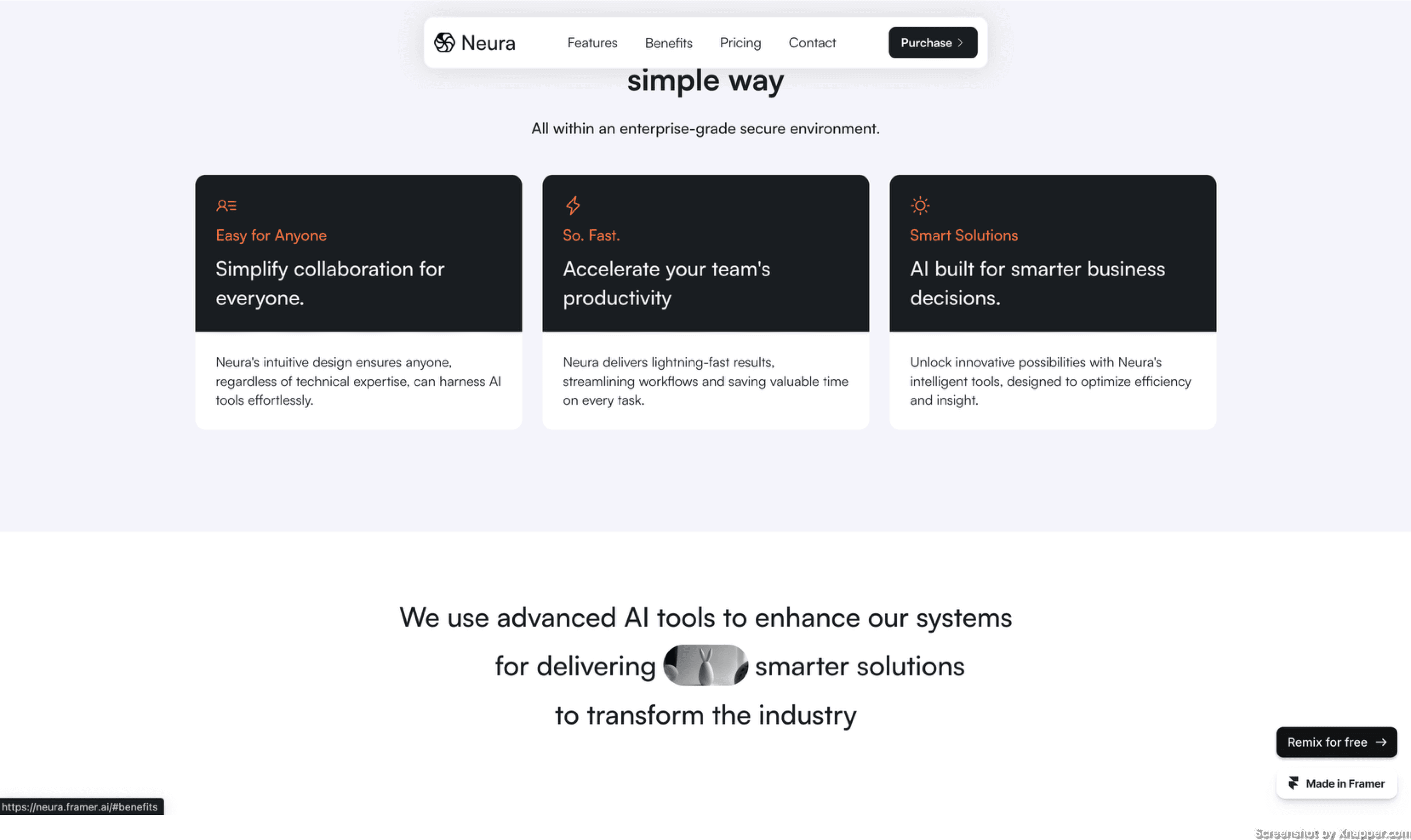Neura is a beautifully crafted Framer website template, designed for AI SaaS businesses to showcase innovative AI tools, image generation solutions, and chatbots with style and ease.