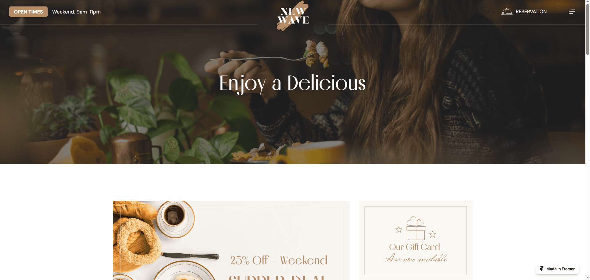 Ultimate Solution for Restaurants on Framer. Suitable for any type of restaurant like Seafood, cafe, bar, fine dining, traditional, Italian, Asian fusion, Family style, Indian, Steak, Bakery and more.
