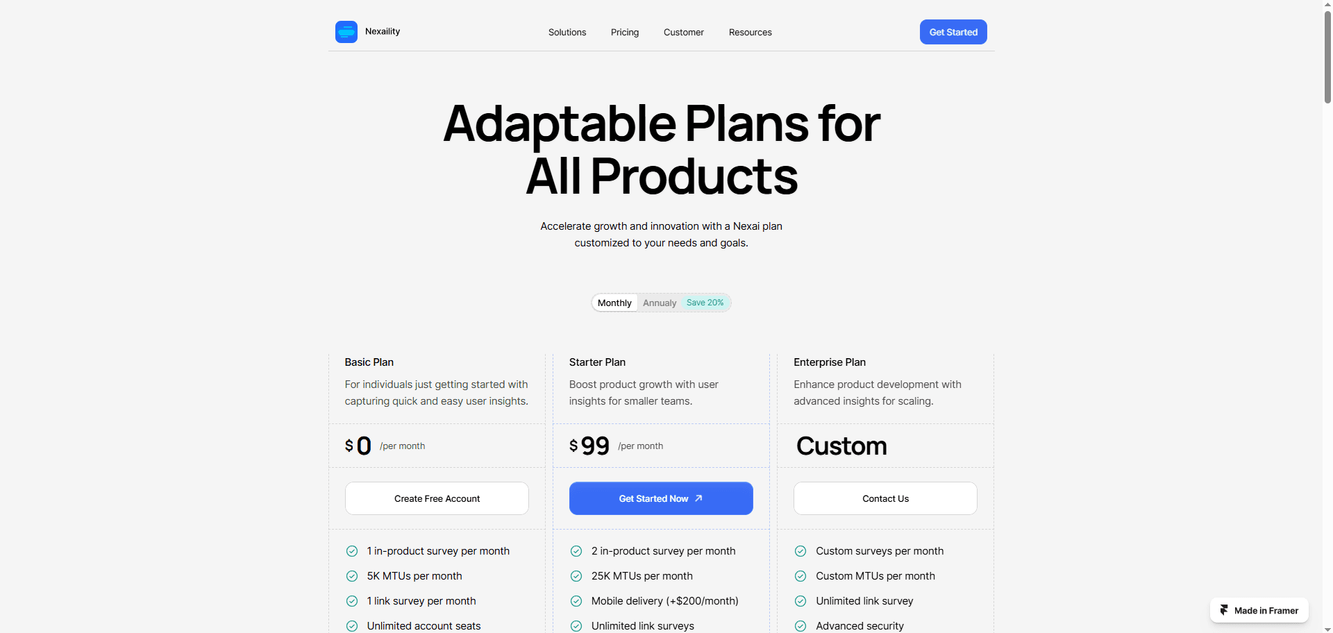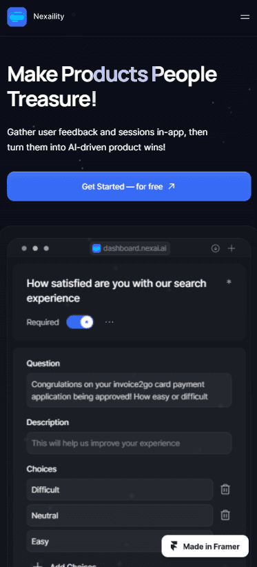 Nexaility is 100% made with Framer. This way all the UI elements you see are customizable.