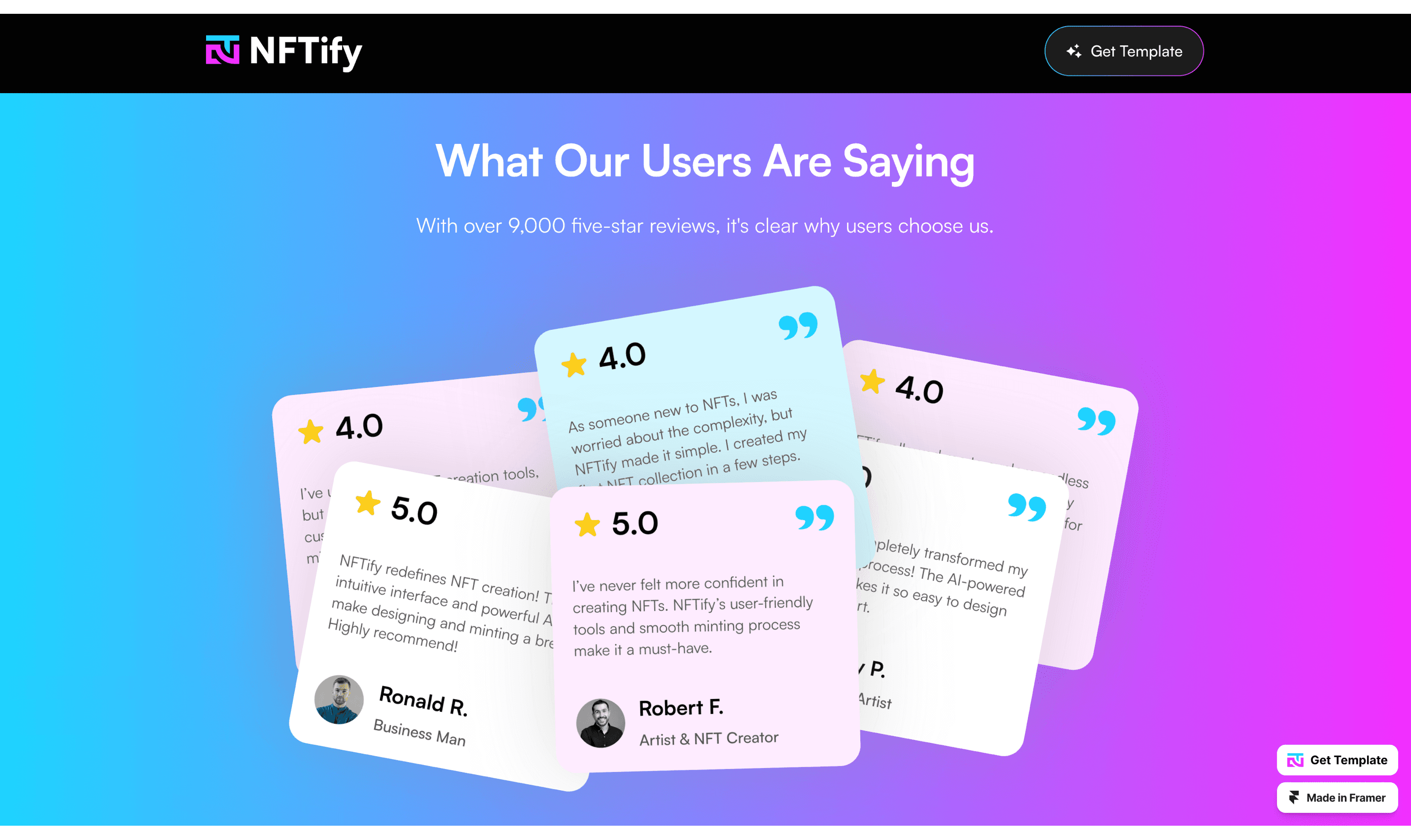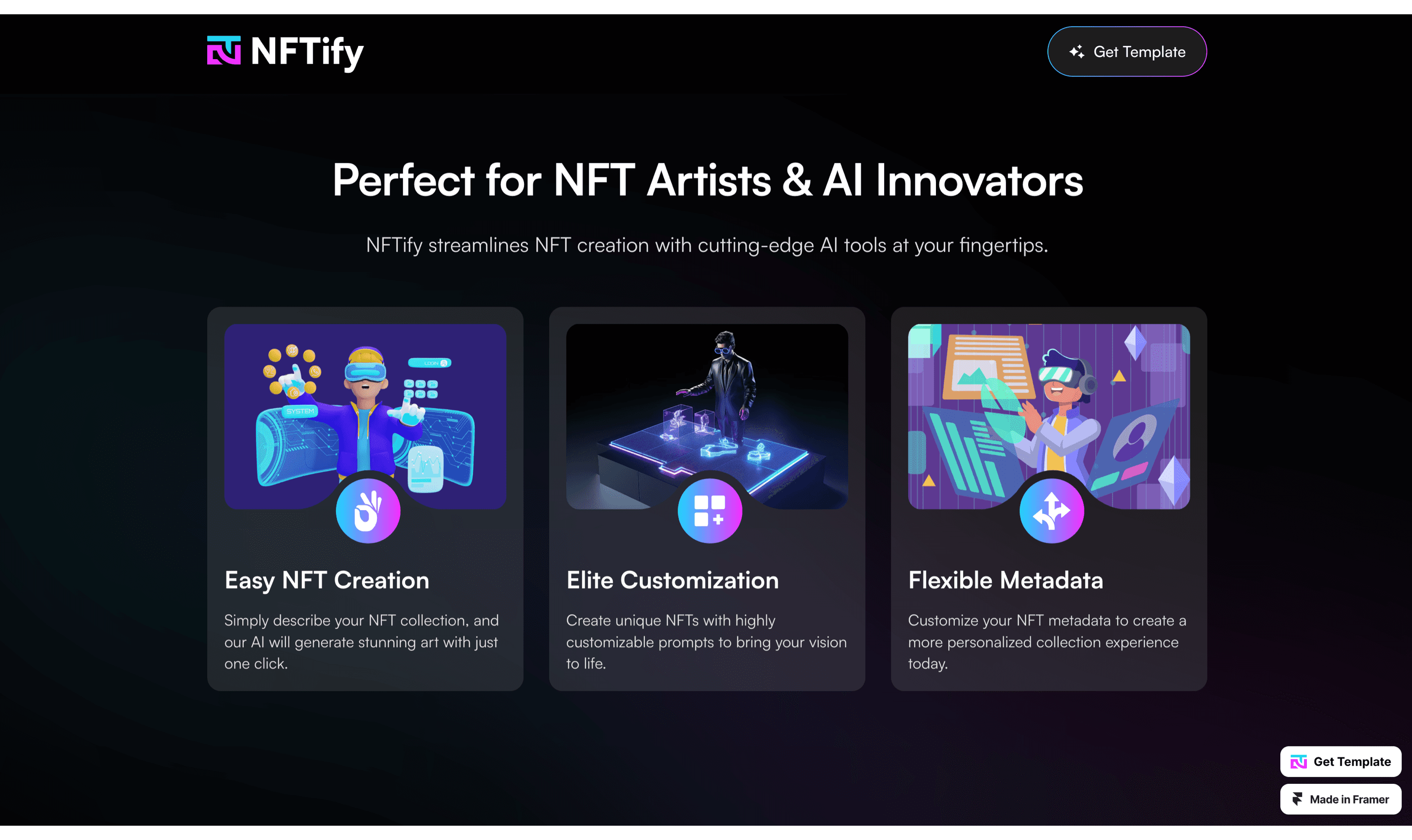 Take your AI NFT platform to the next level with NFTify, the ultimate landing page designed for high-impact conversions.