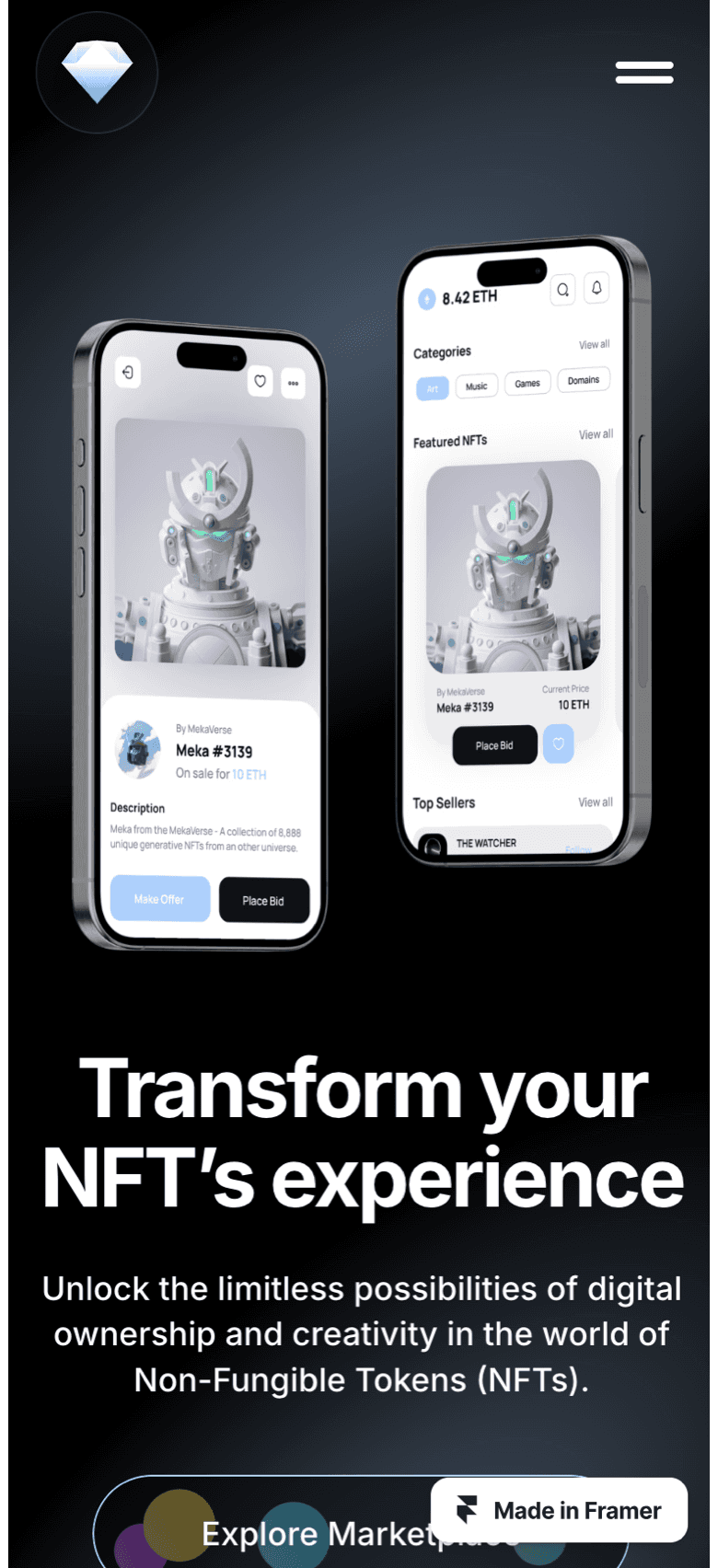 NFTity is the ultimate NFT Marketplace template, perfect for building a sleek NFT Portfolio.