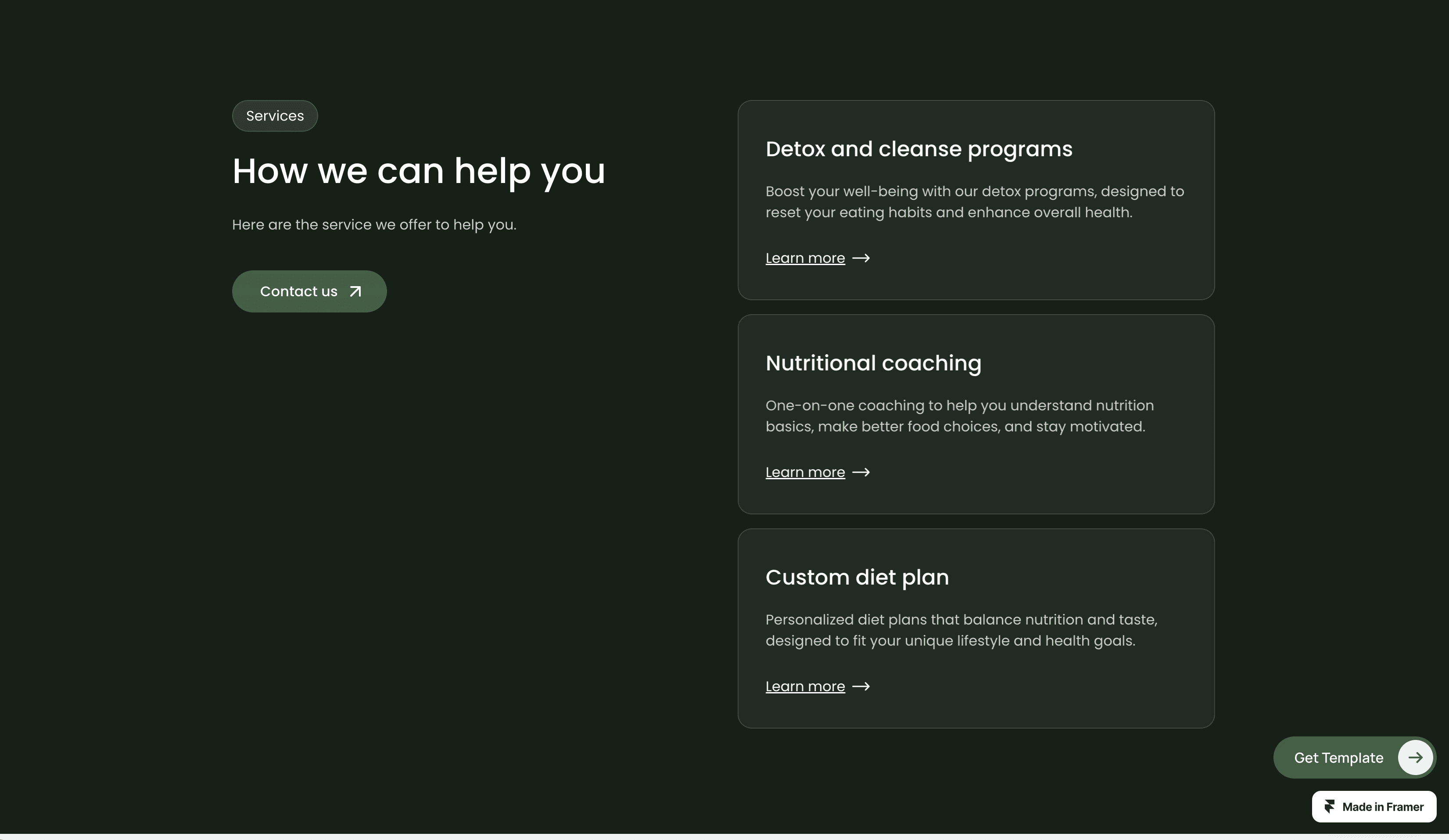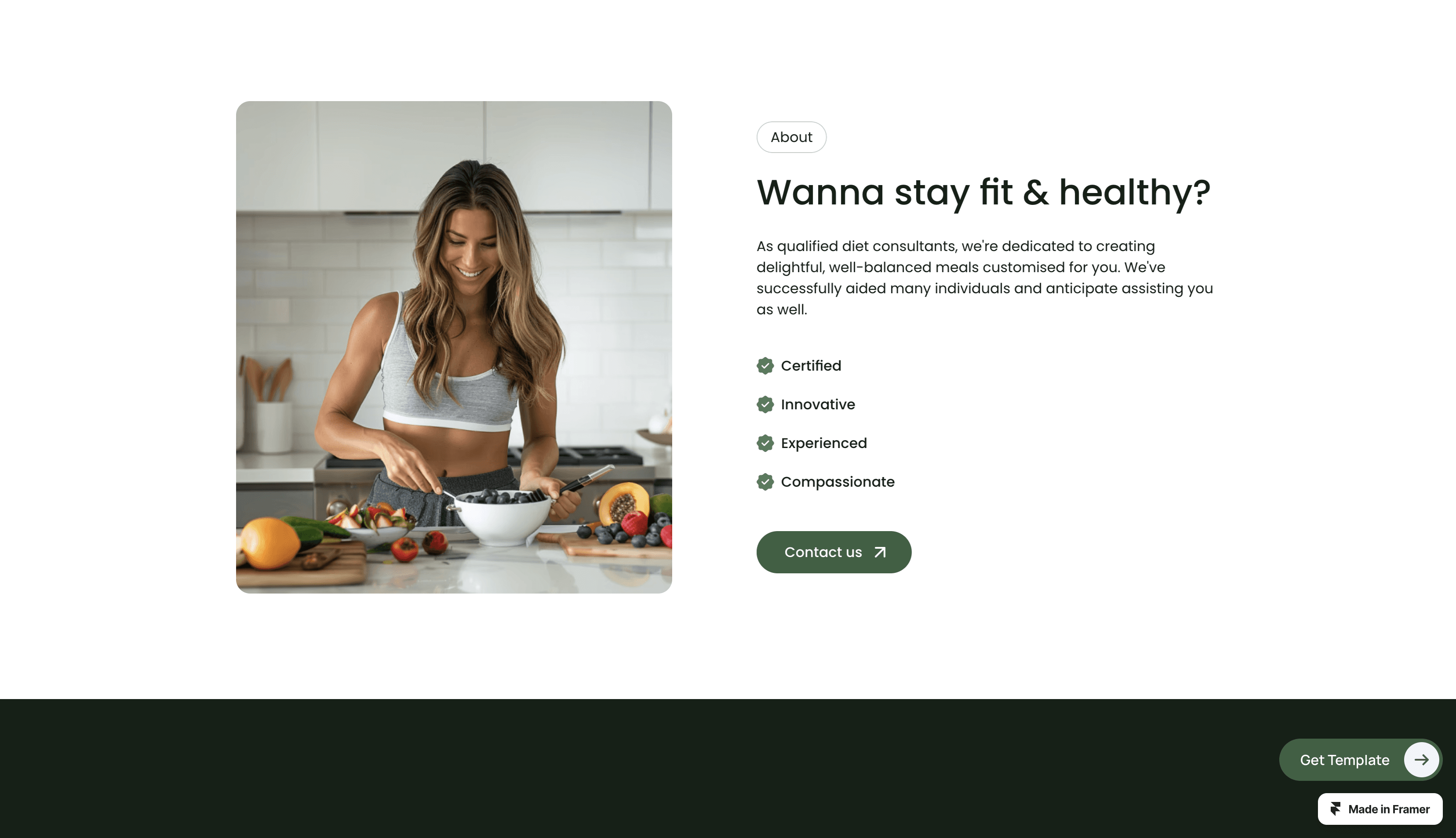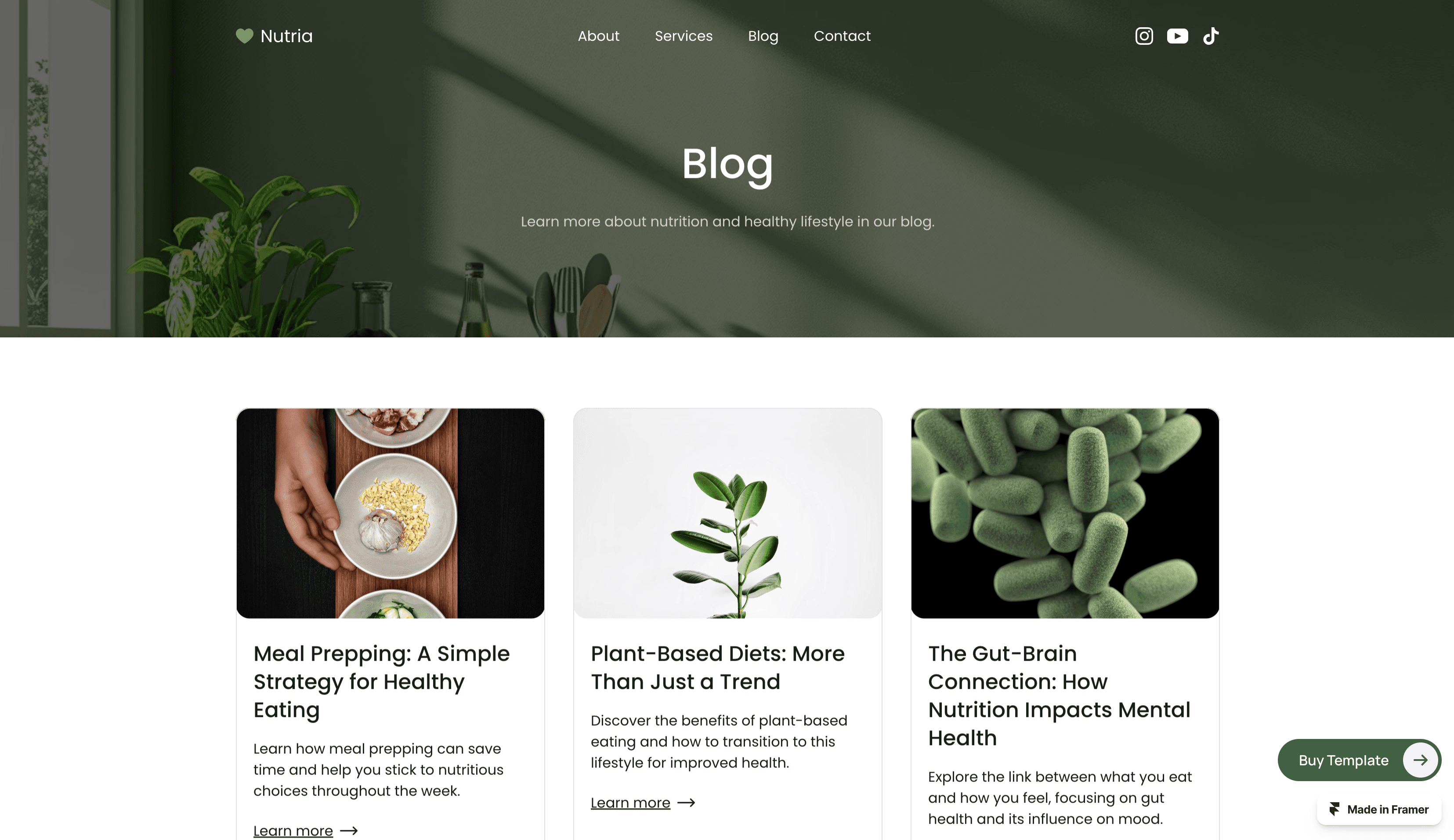 Nutria is a sleek, modern Framer template for nutritionists, featuring a high-converting landing page and blog to effectively attract and engage more clients online.