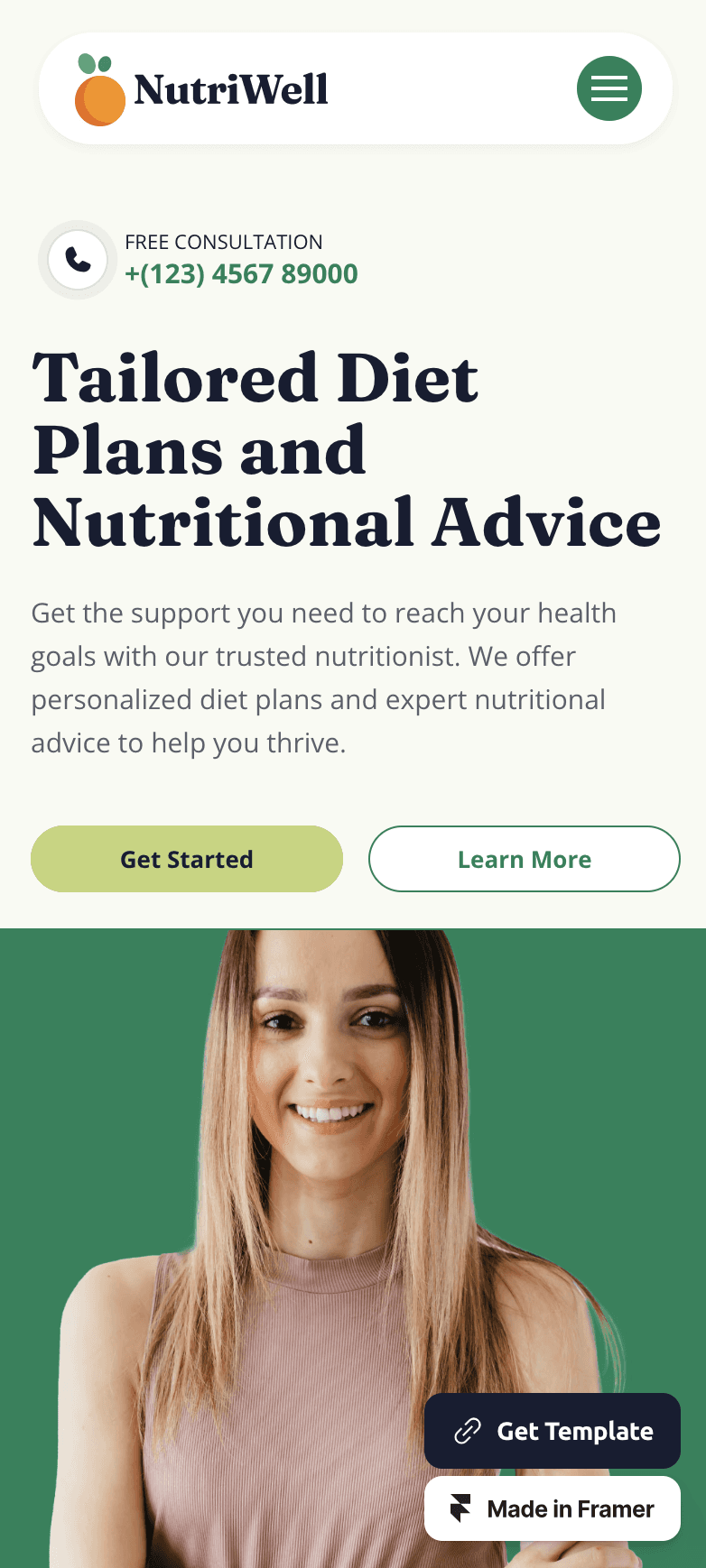 Healthy habits start with a healthy website - get Nutriwell, a wellness coach Framer template.