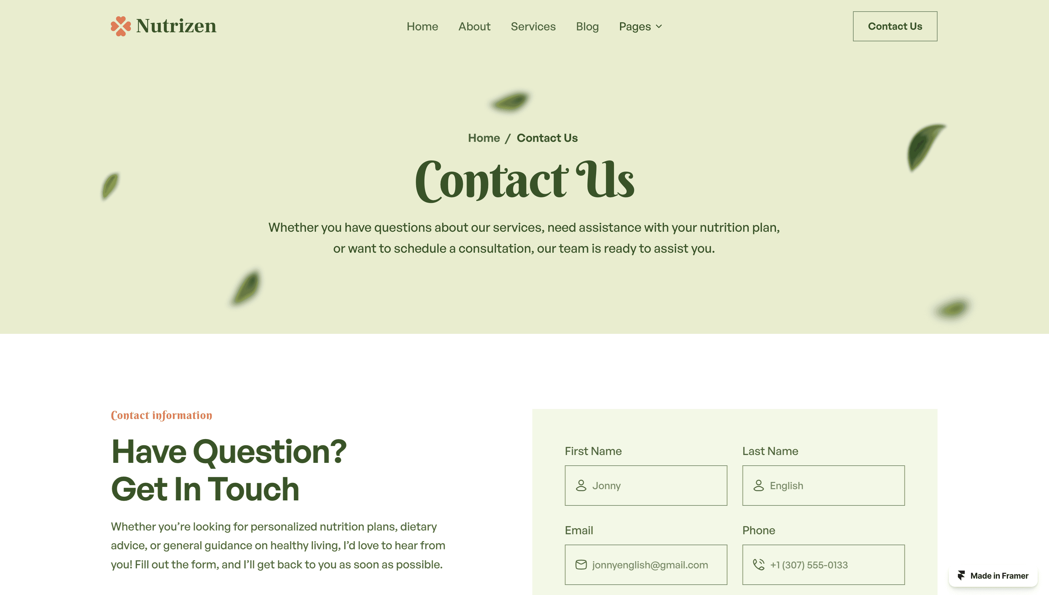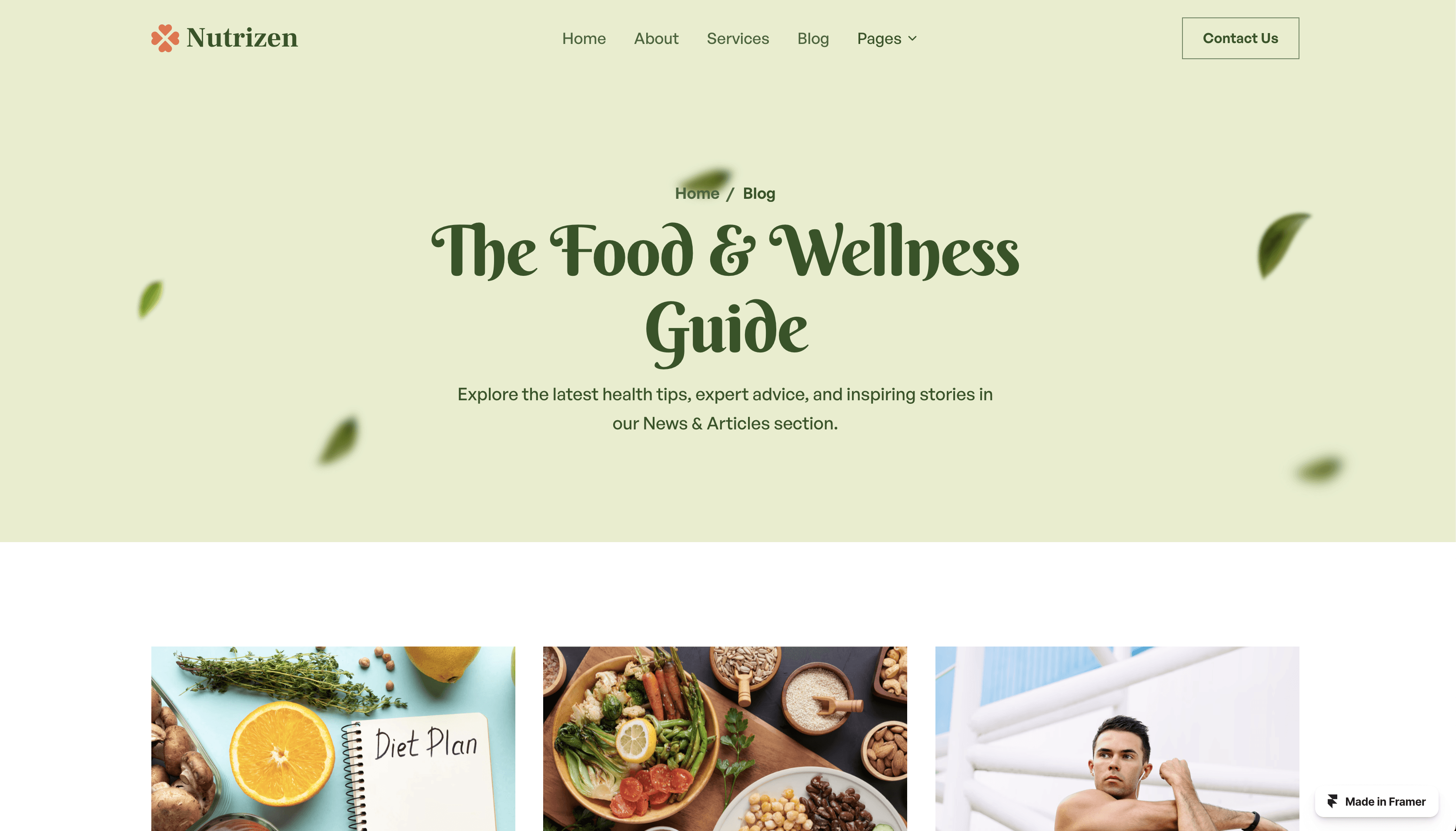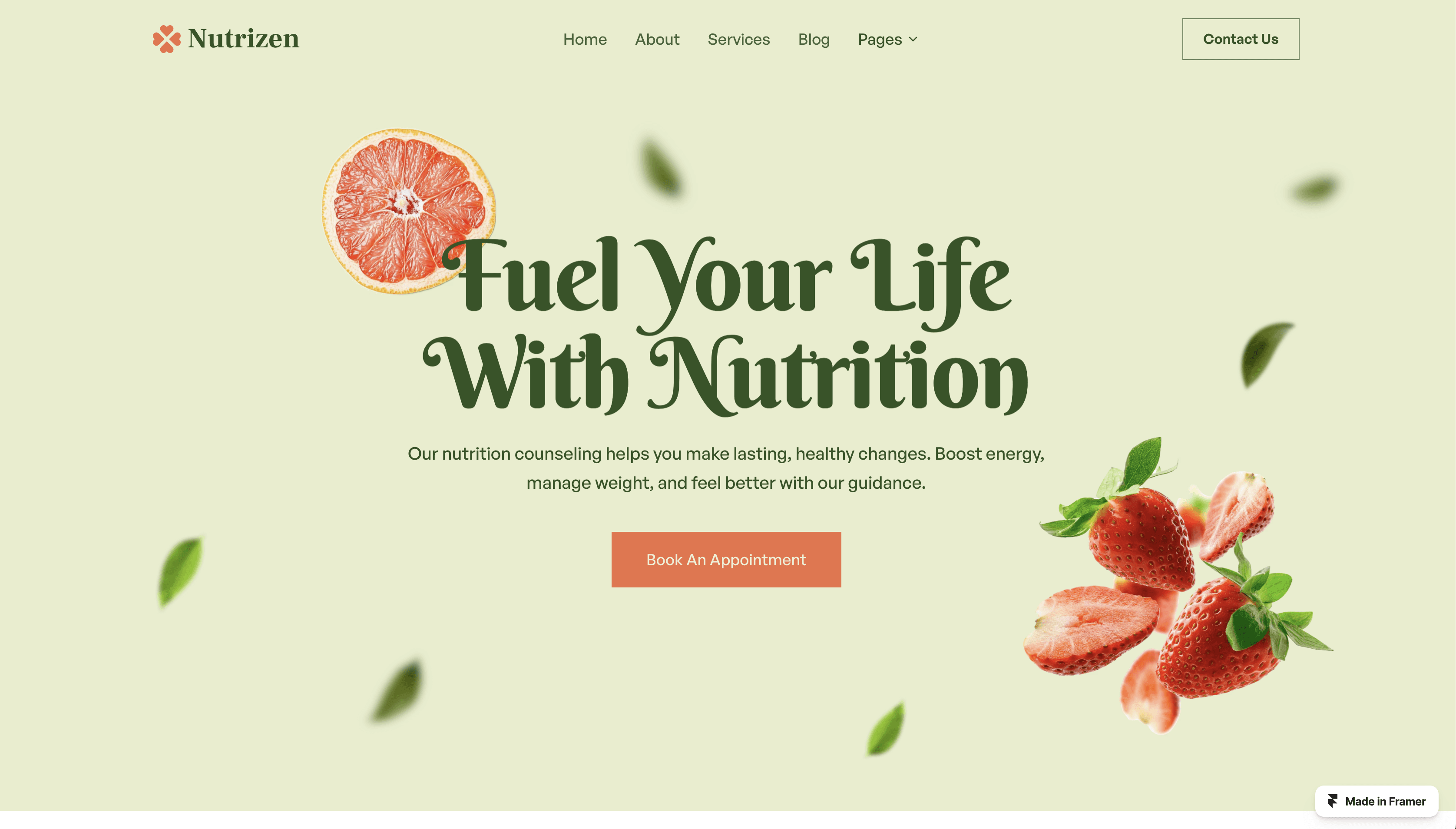 Nutrizen framer template is designed for nutritionists aiming to enhance their online presence and effectively engage clients.
