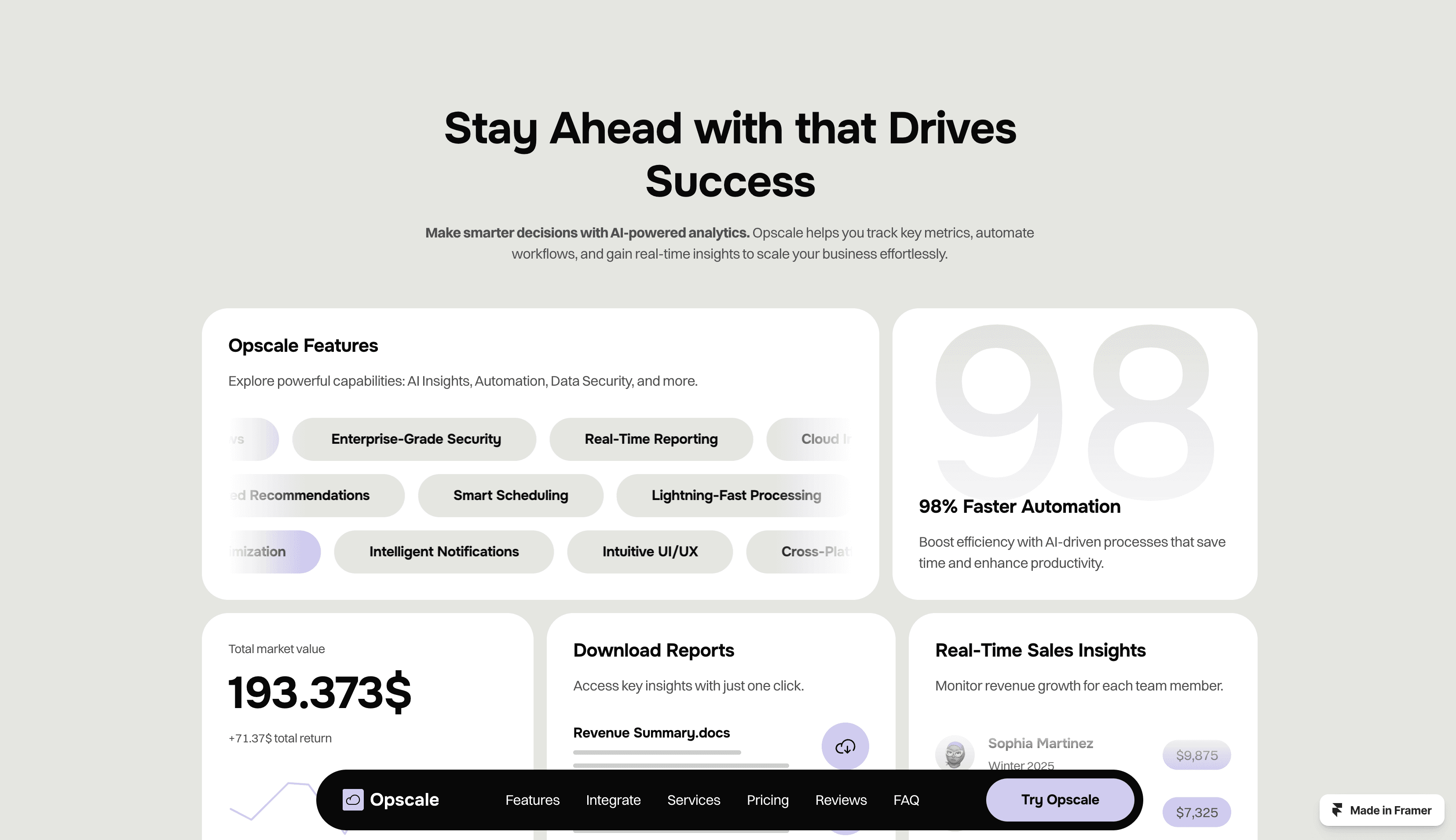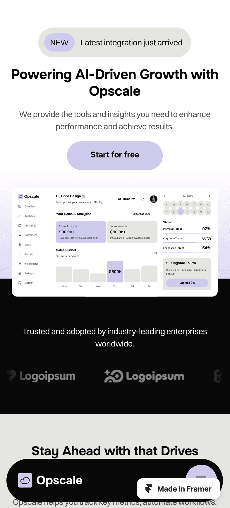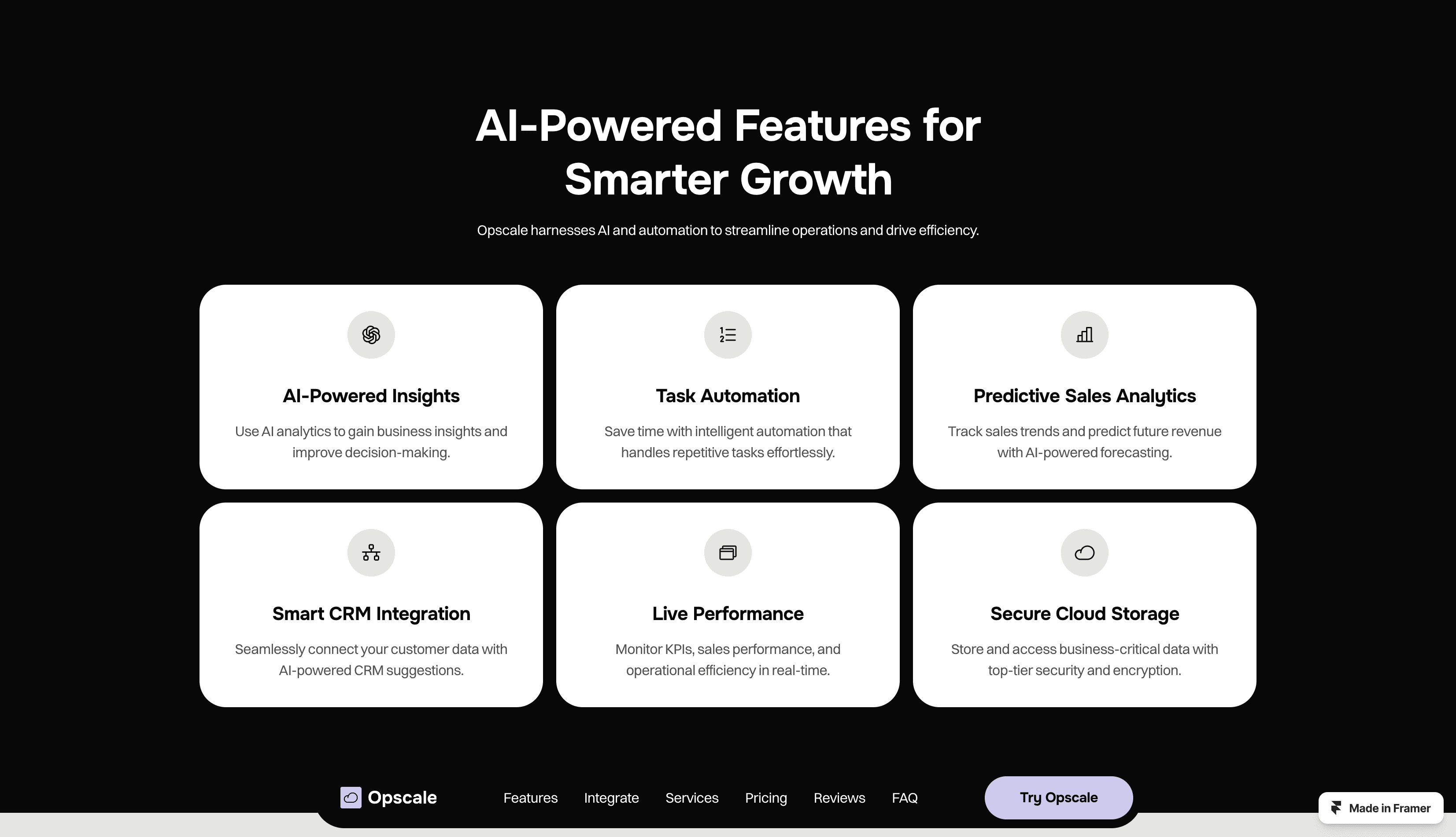 Opscale is a sleek and responsive Framer template designed for SaaS and AI startups.