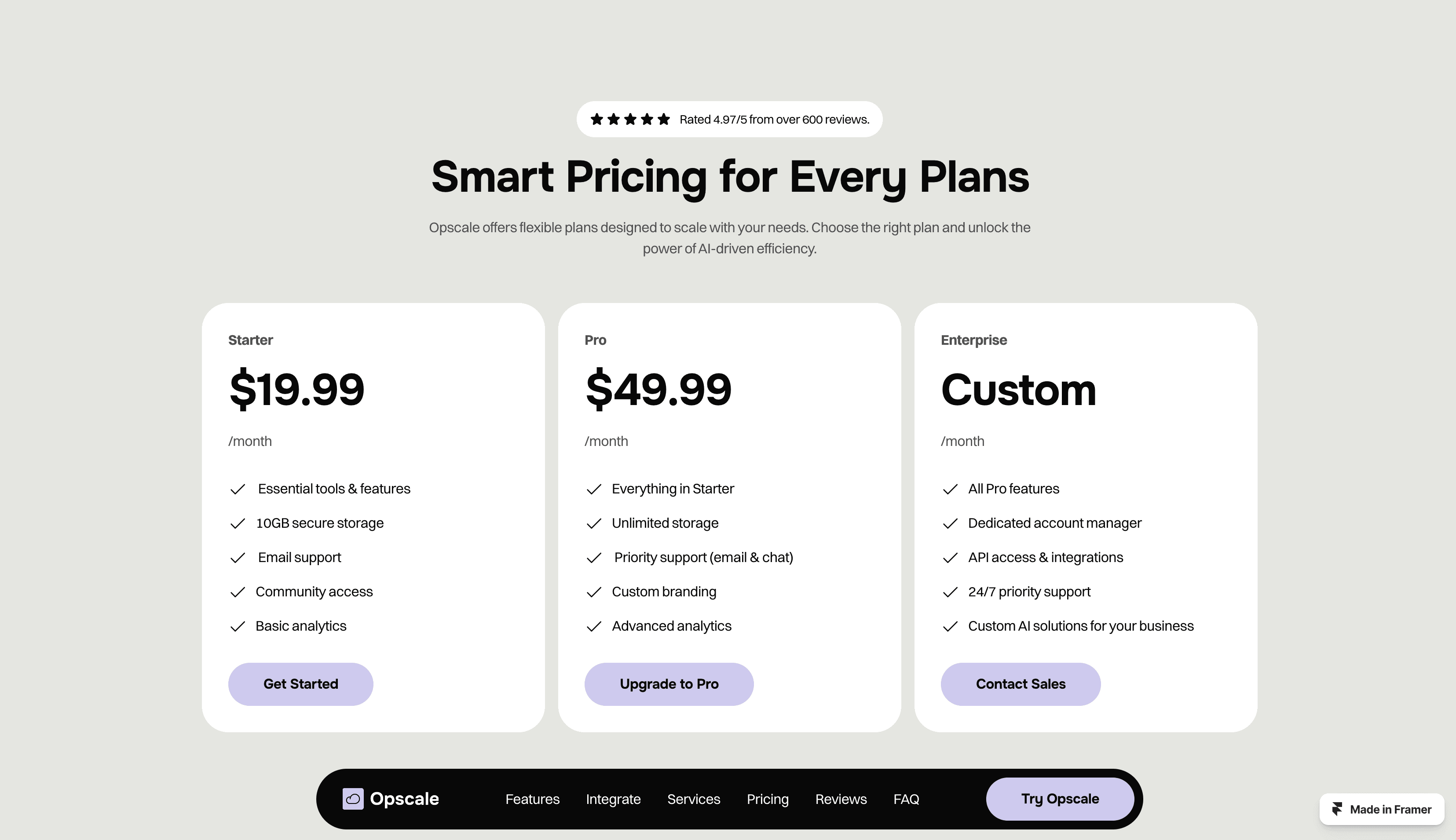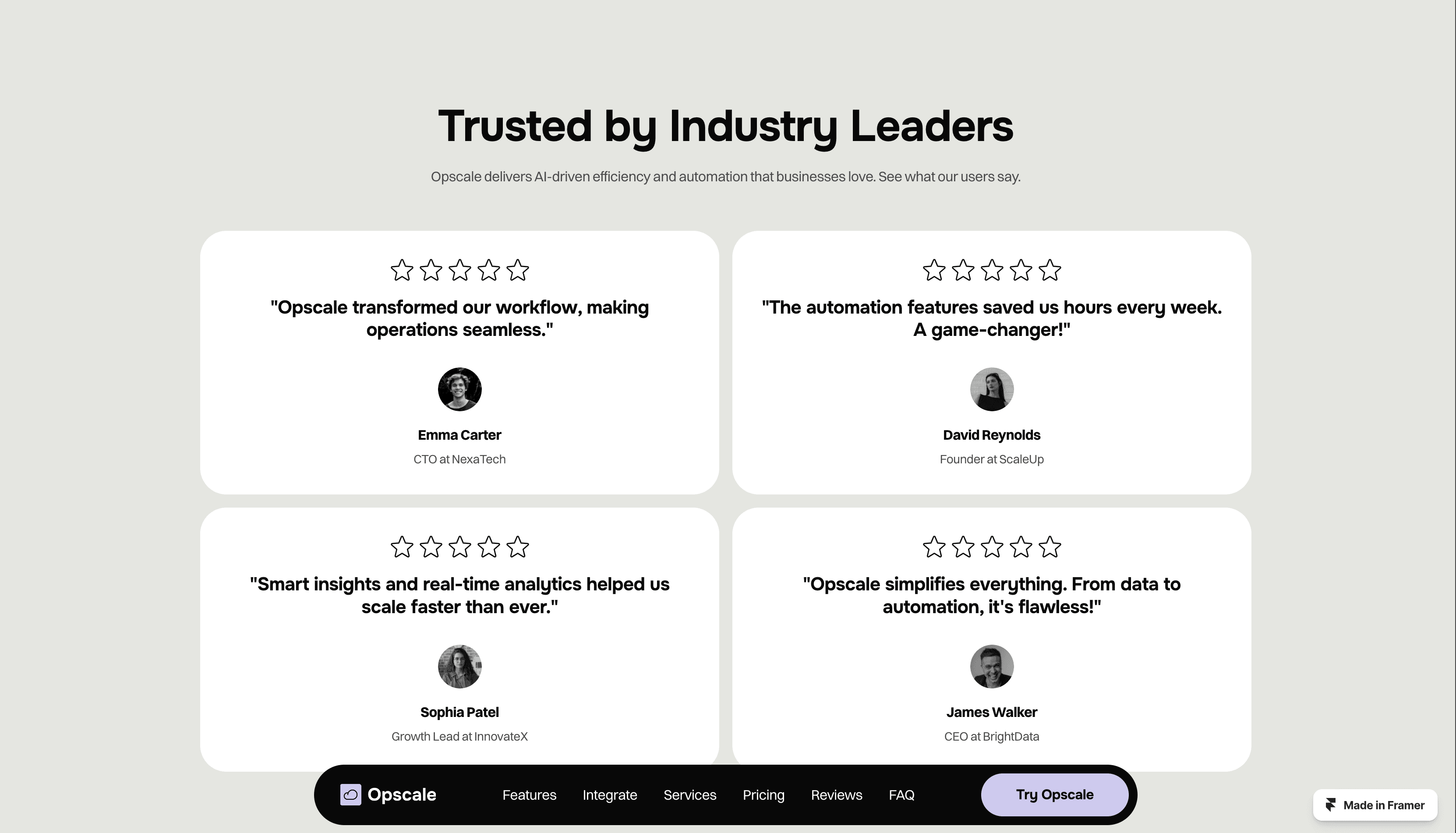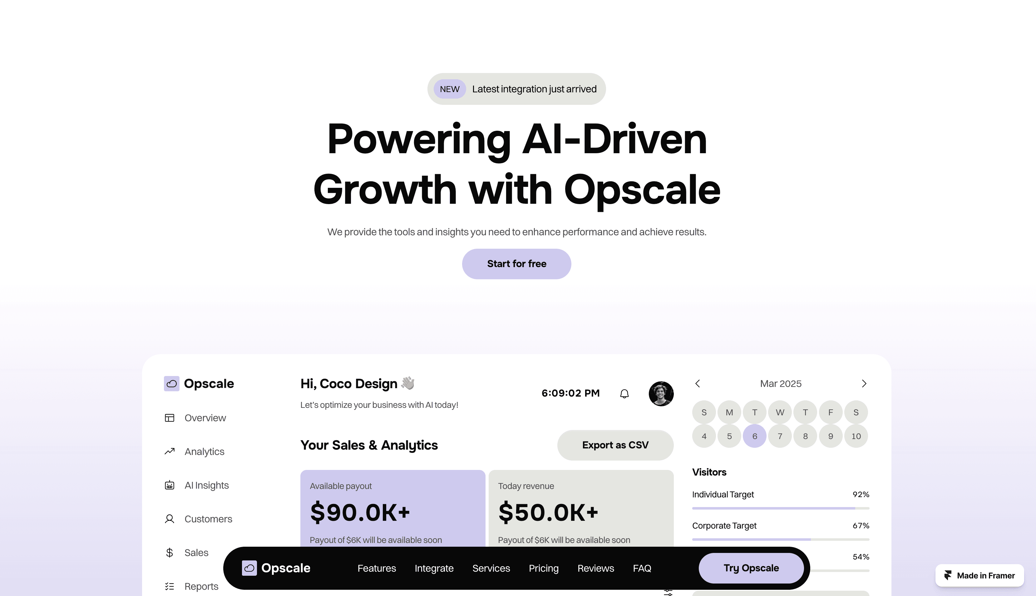 Opscale is a sleek and responsive Framer template designed for SaaS and AI startups.