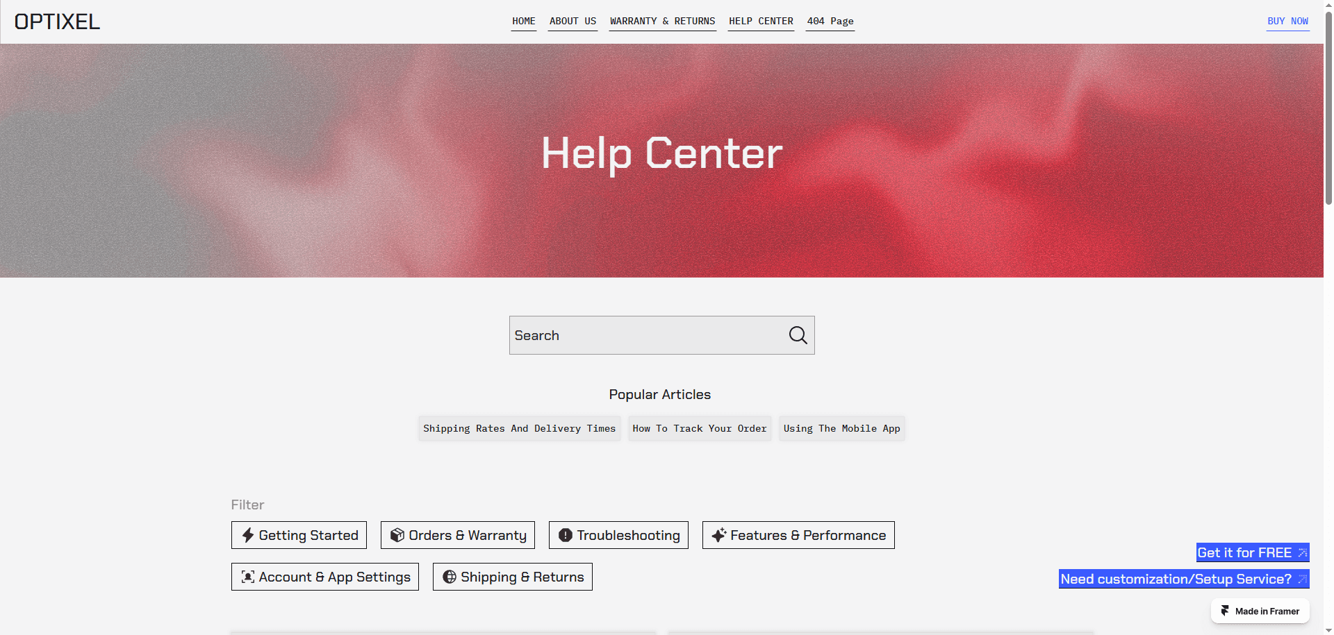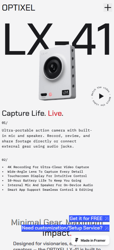 A sleek, cinematic template built to showcase standout products. Perfect for launches, DTC brands, or single-product companies. Includes landing, about, help center, 404, warranty, and more — fully responsive and customizable in Framer.