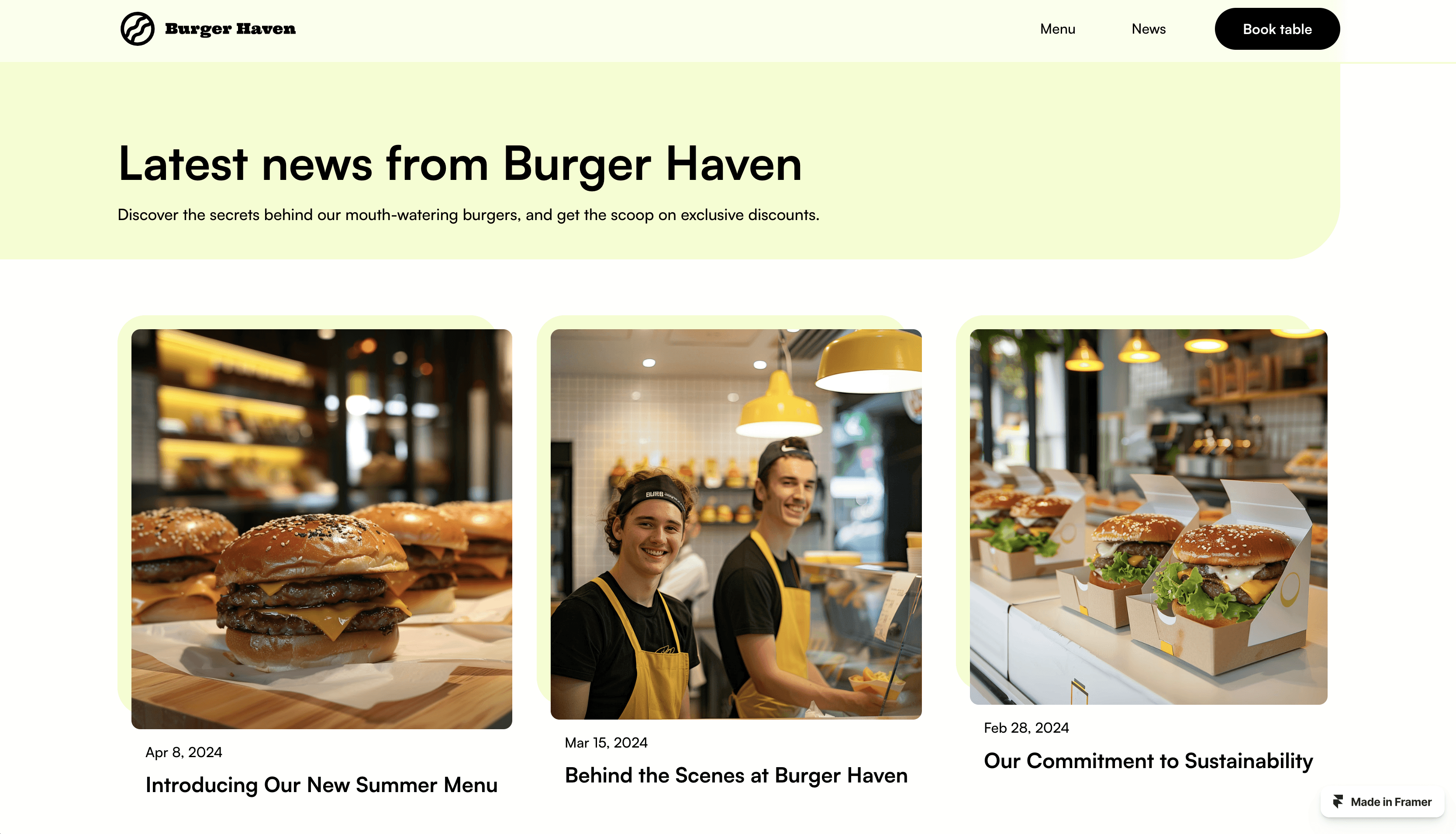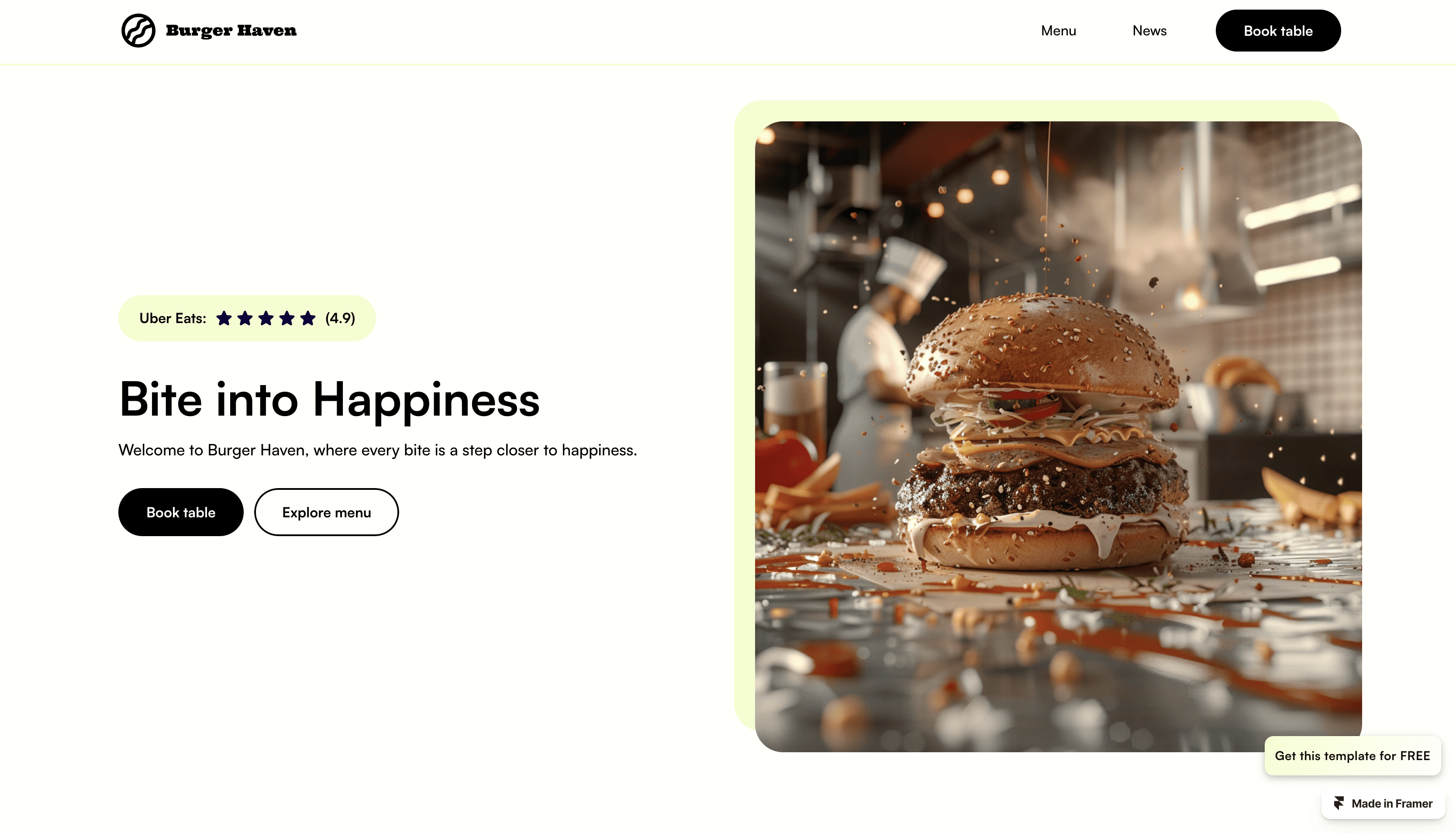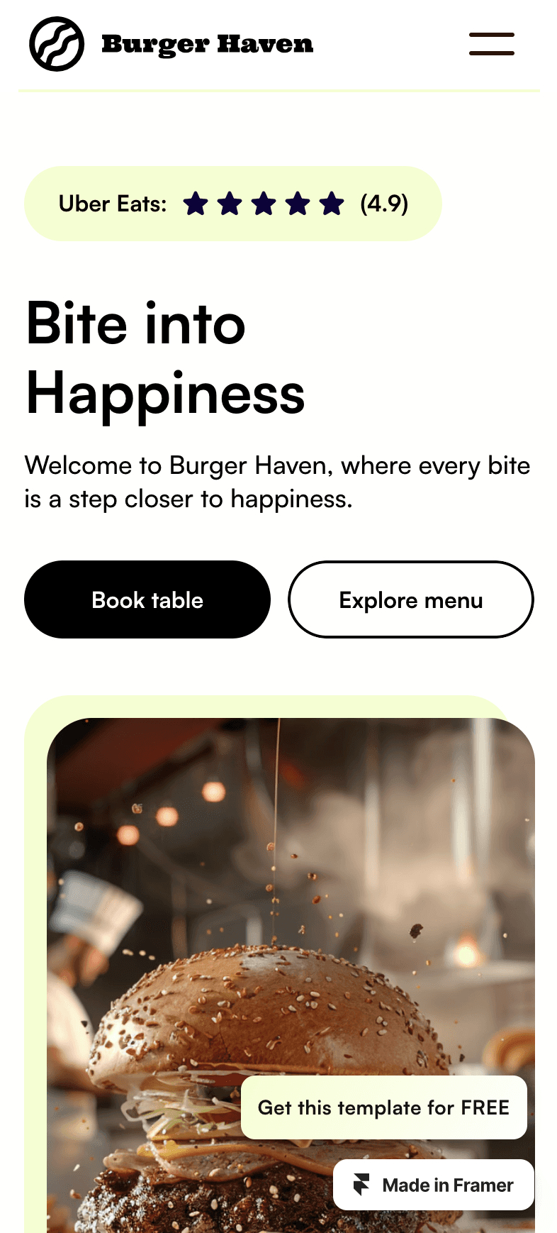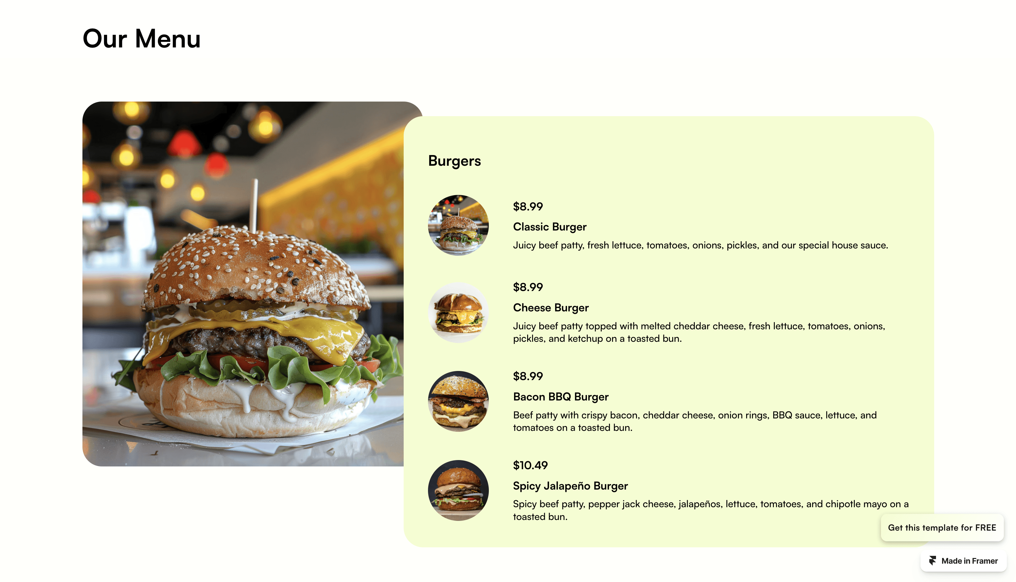 Patty is a modern, sleek, and user-friendly Framer template designed specifically for restaurants looking to showcase their menu online.